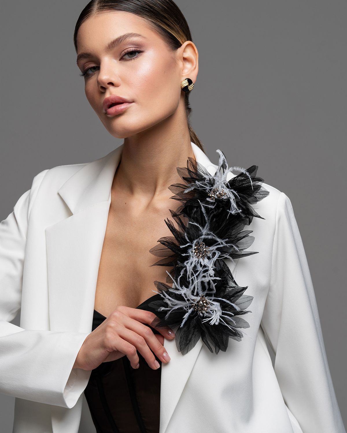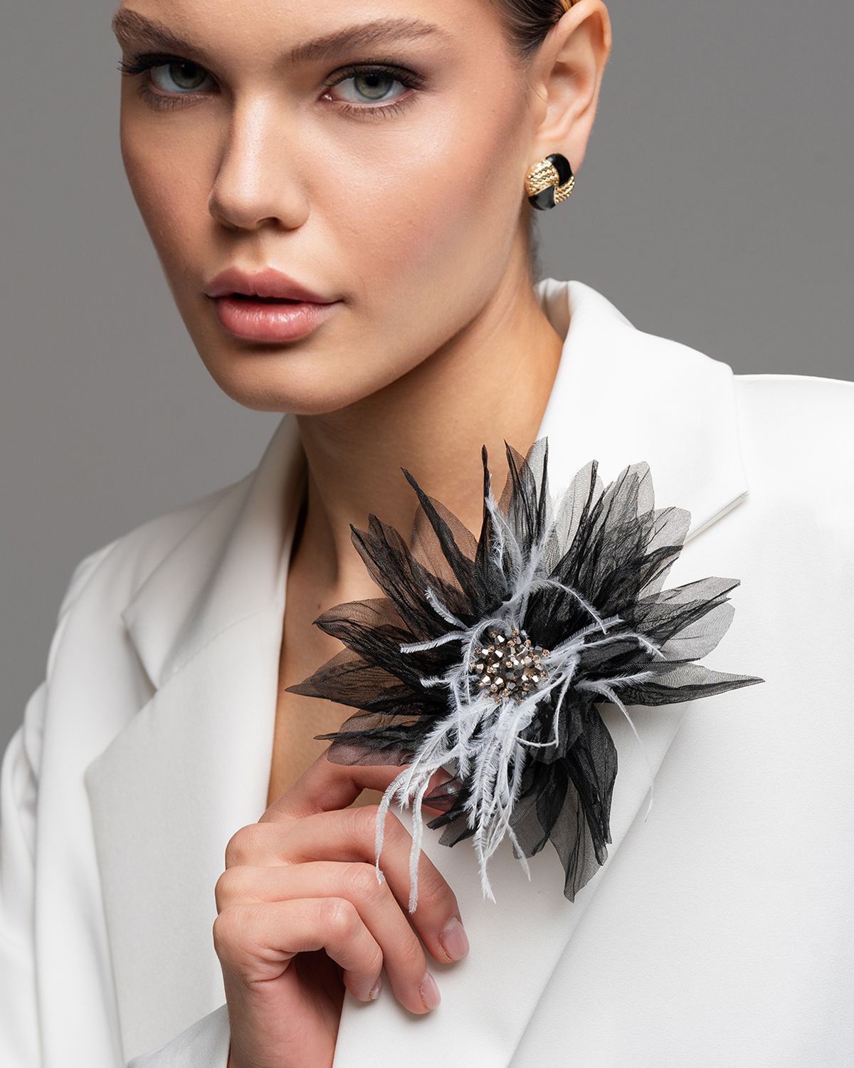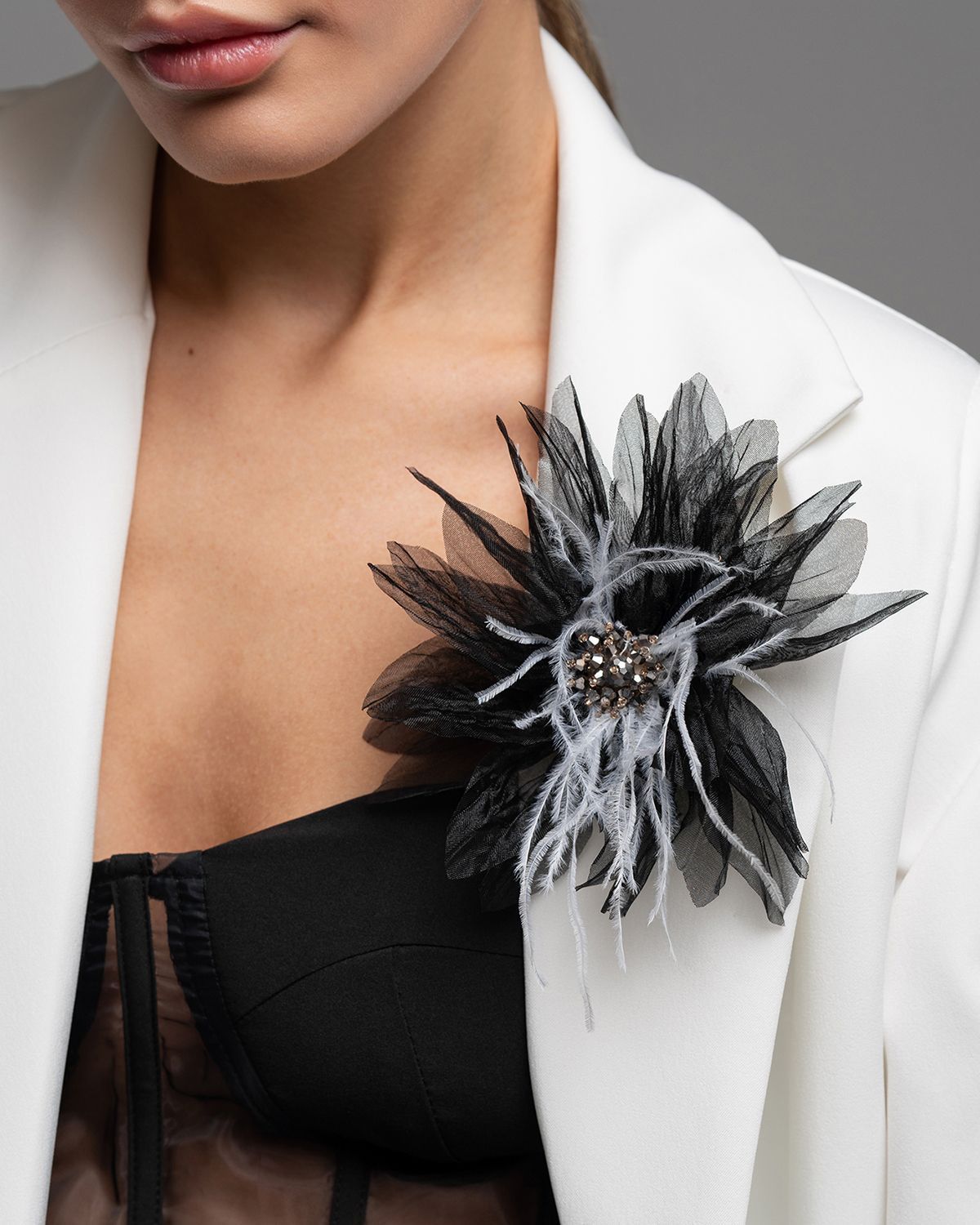 Цветок смотрится эффектно сам по себе, но при желании можно использовать несколько брошей сразу. Чем их больше, тем более модный и экстравагантный образ получится.