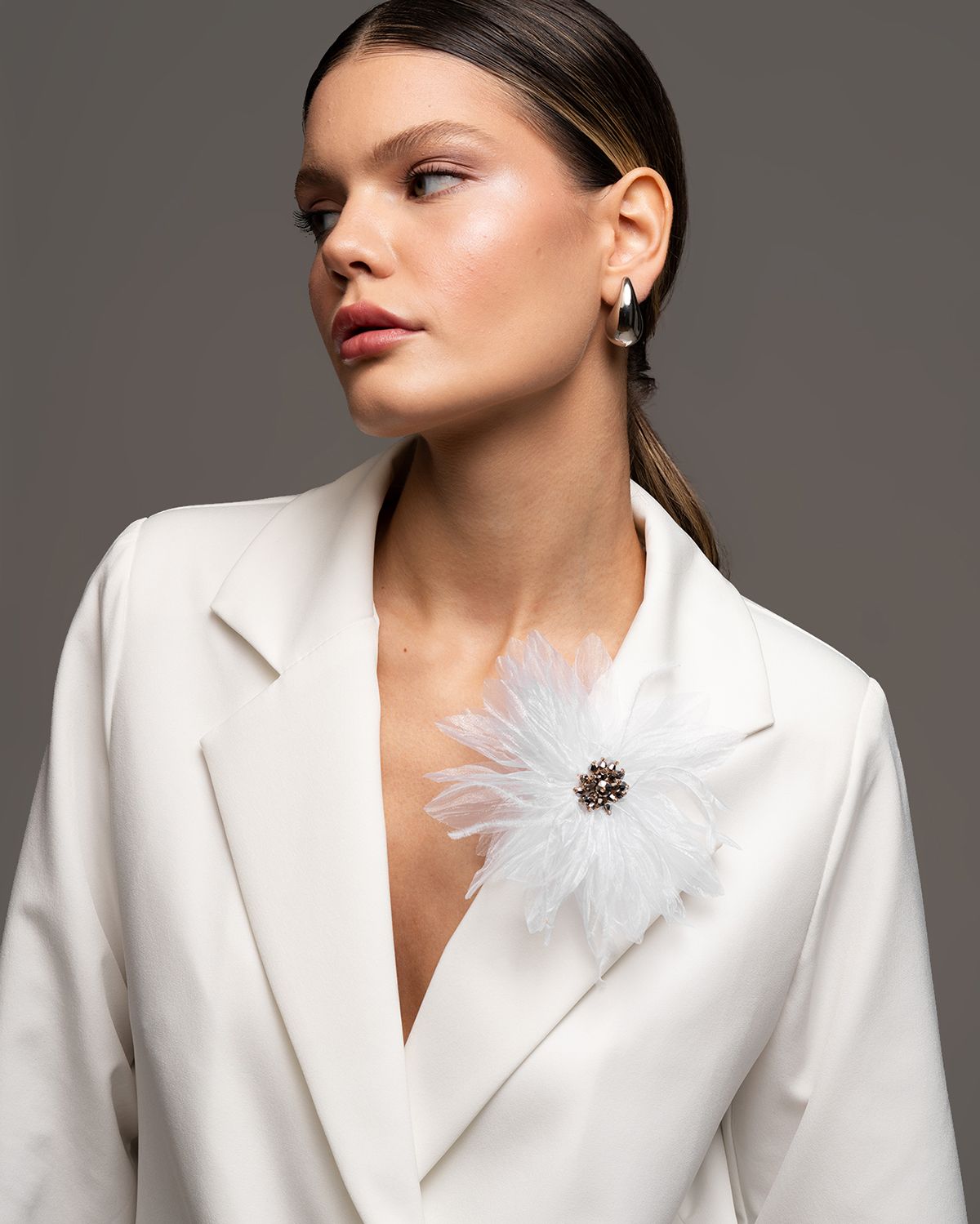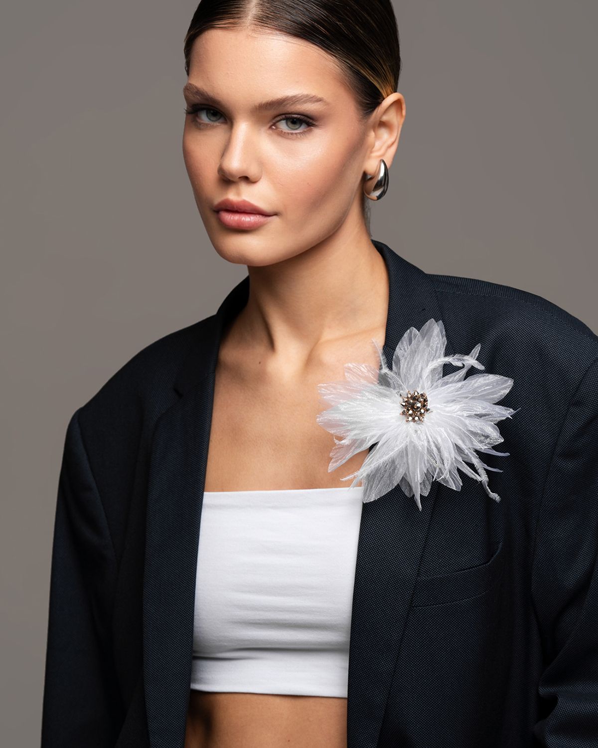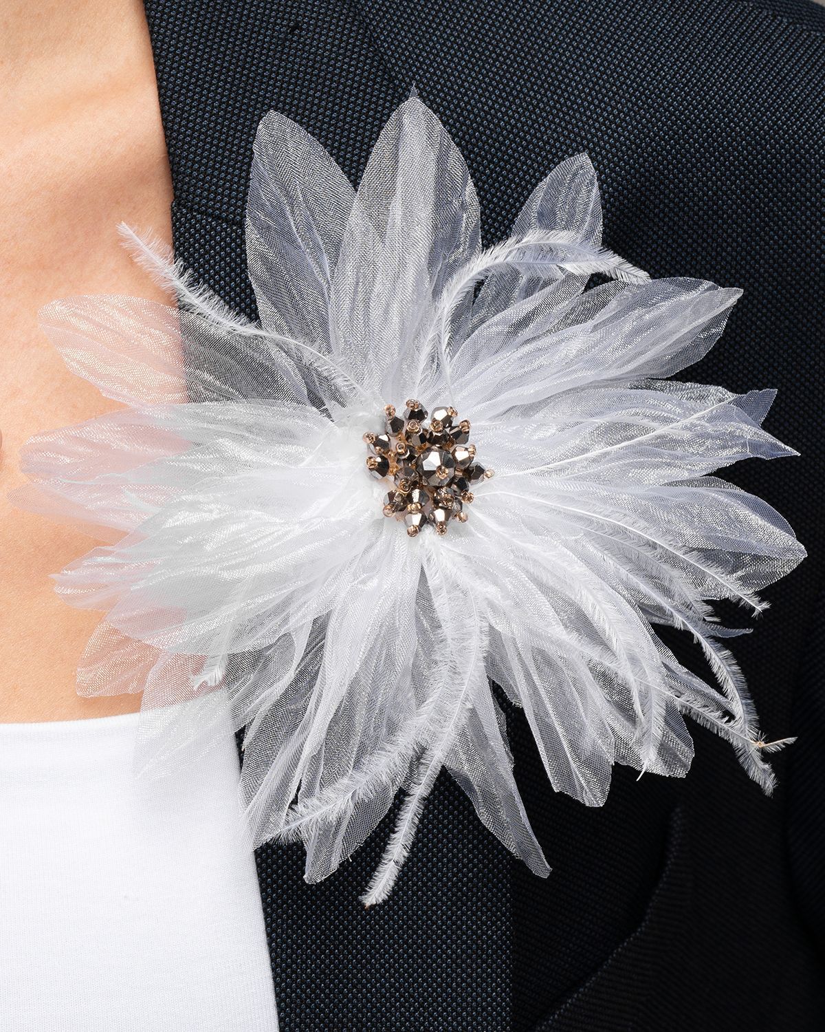 Цветок смотрится эффектно сам по себе, но при желании можно использовать несколько брошей сразу. Чем их больше, тем более модный и экстравагантный образ получится.