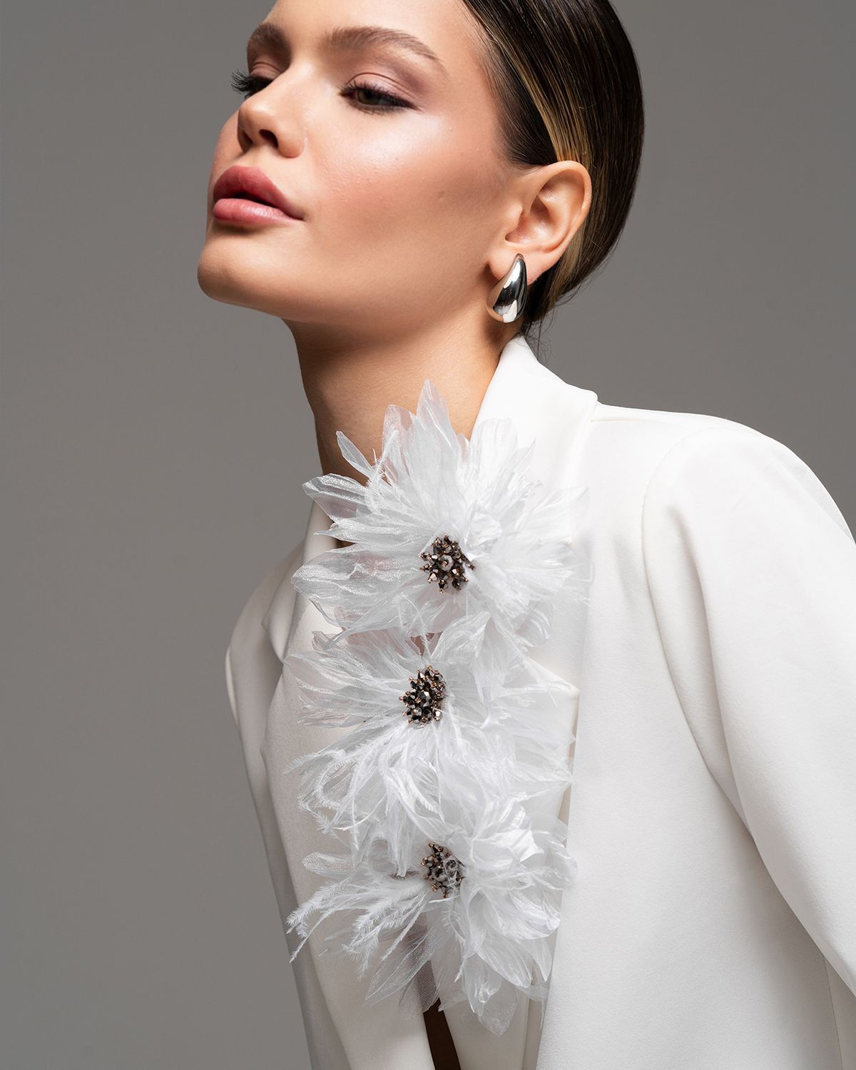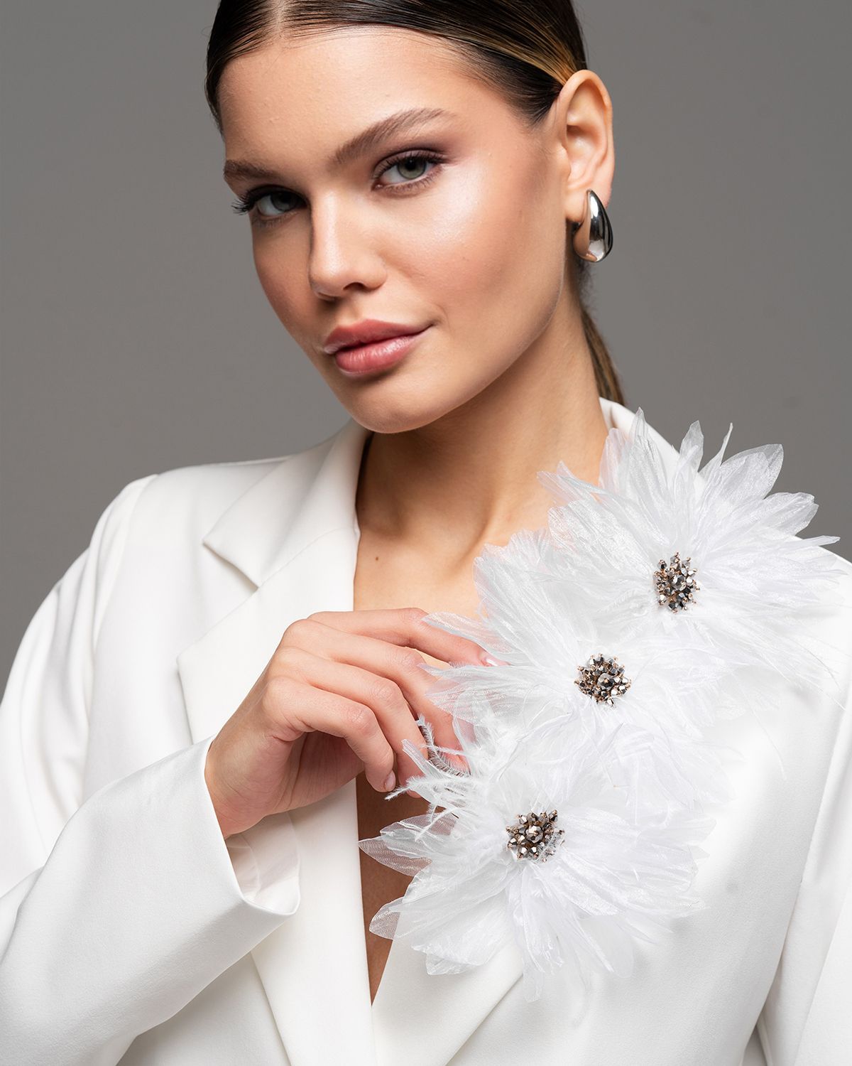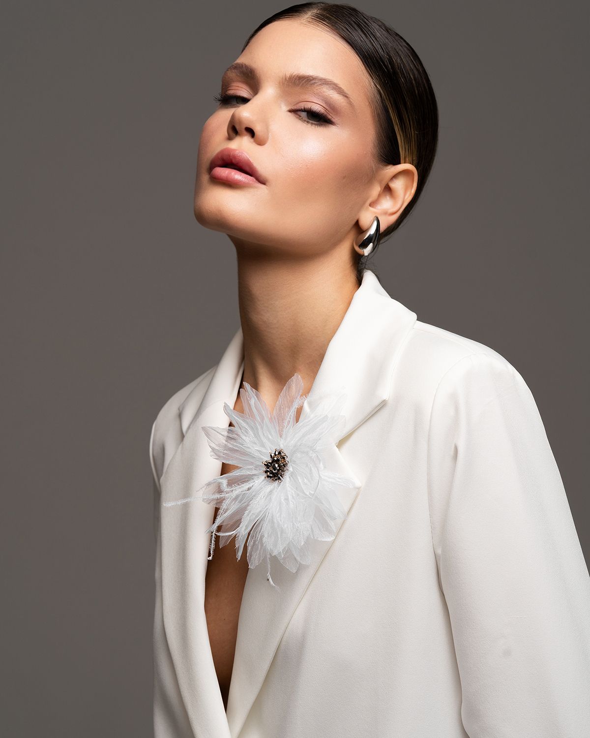 Цветок смотрится эффектно сам по себе, но при желании можно использовать несколько брошей сразу. Чем их больше, тем более модный и экстравагантный образ получится.