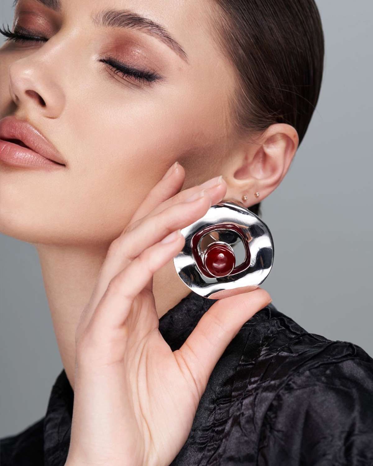 Круглая брошь-булавка, воплощение современной элегантности. В основе дизайна – окружность из полированной нержавеющей стали, сияющей холодным блеском. Акцент круглой броши – изящный шар, словно парящий в центре. Сердцем композиции выступает крупная бусина, притягивающая взгляд своим глубоким бордовым цветом и безупречной формой.