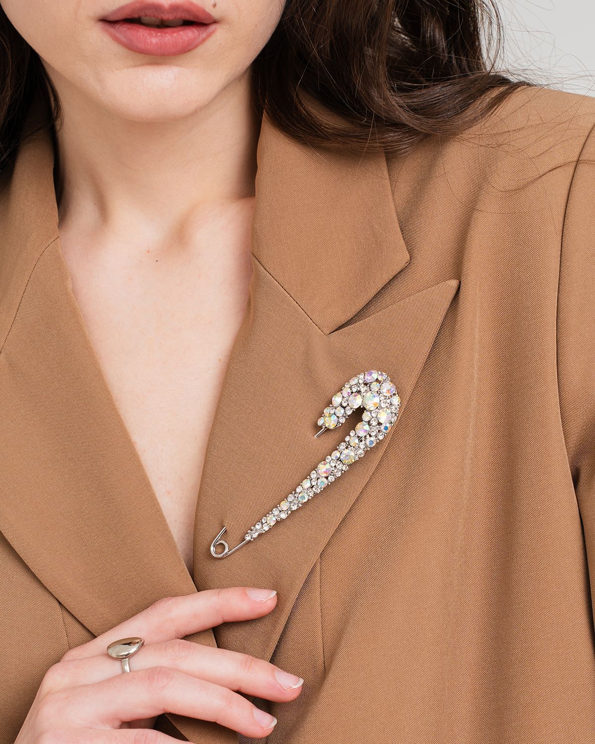 Брошь в форме булавки добавит образу статуса и неповторимости. Такая брошь-булавка создаст уникальный акцент на воротнике, пиджаке, кардигане, став прекрасной частью выбранного вами стиля одежды. Уникальность украшения заключается в его универсальности. Брошь для женщин можно носить на шапке, рюкзаке, свитере, жакете, а также на любой верхней одежде. Качественный сплав премиальной бижутерии не потемнеет, не облезет и будет годами радовать вас. Такая брошка станет прекрасным подарком любой девушке.