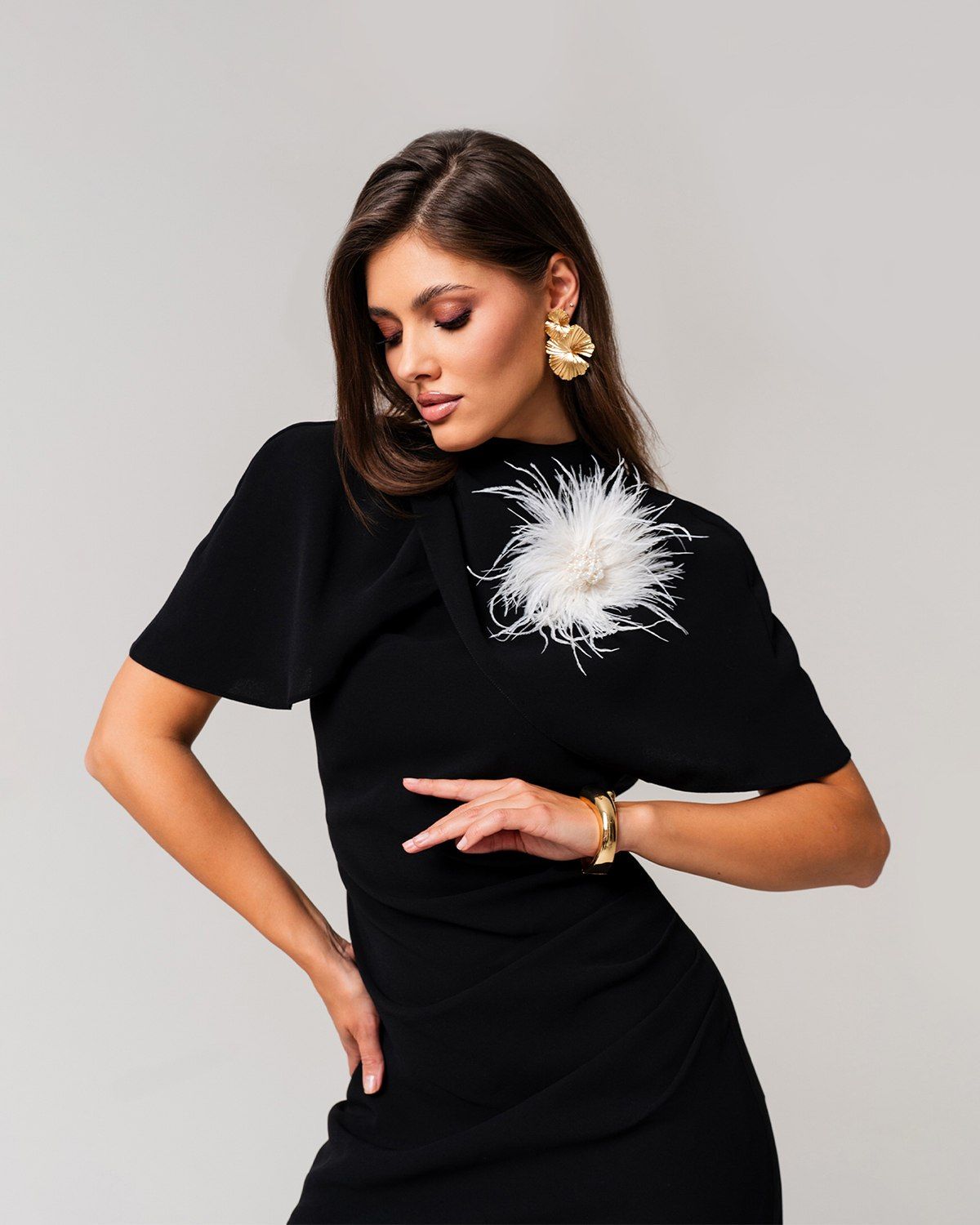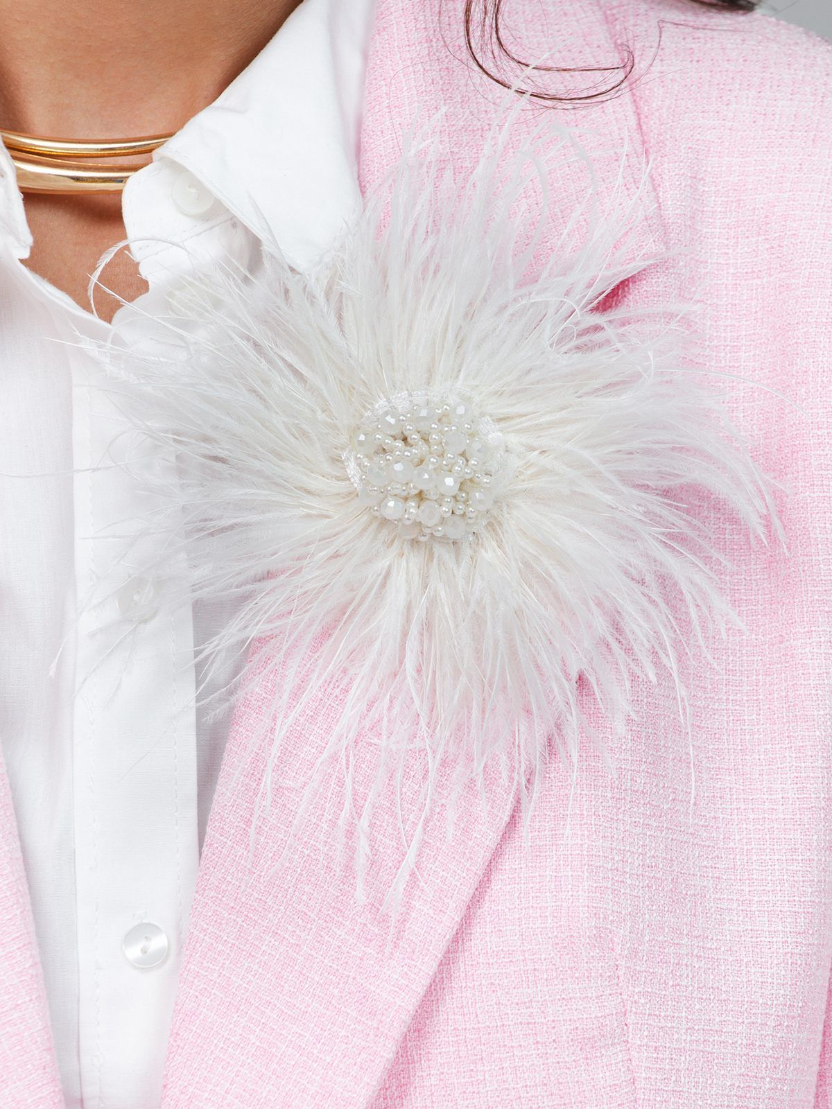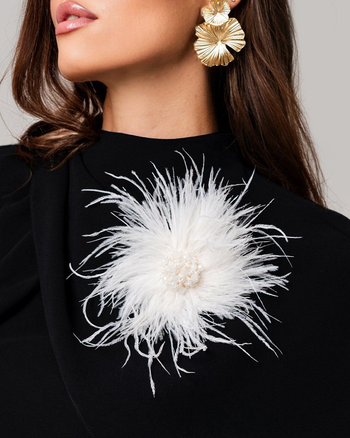 Перьевая брошь с бусинами не только добавляет стиль и шарм, но и делает вас центром внимания благодаря своему утонченному и элегантному исполнению.