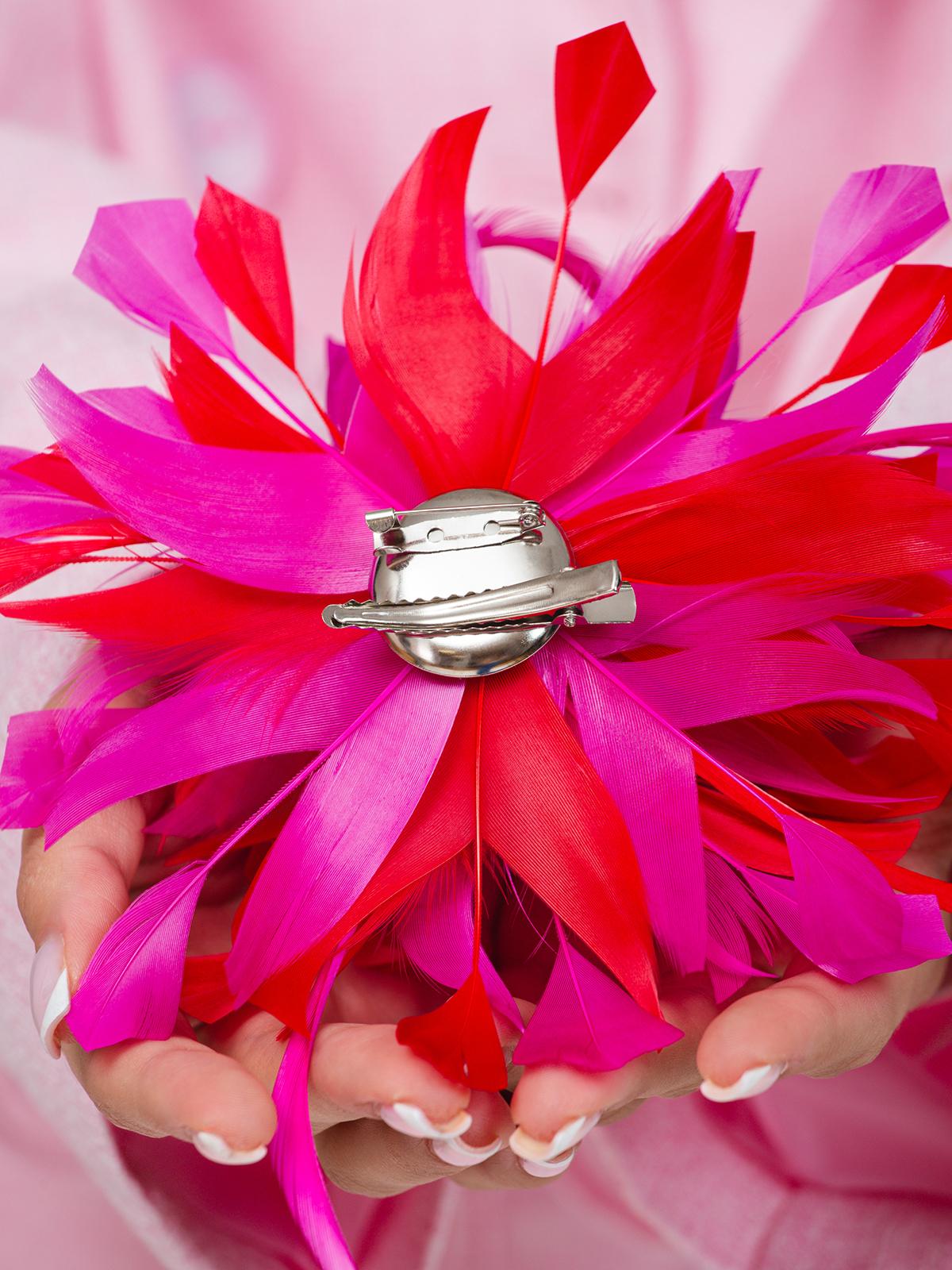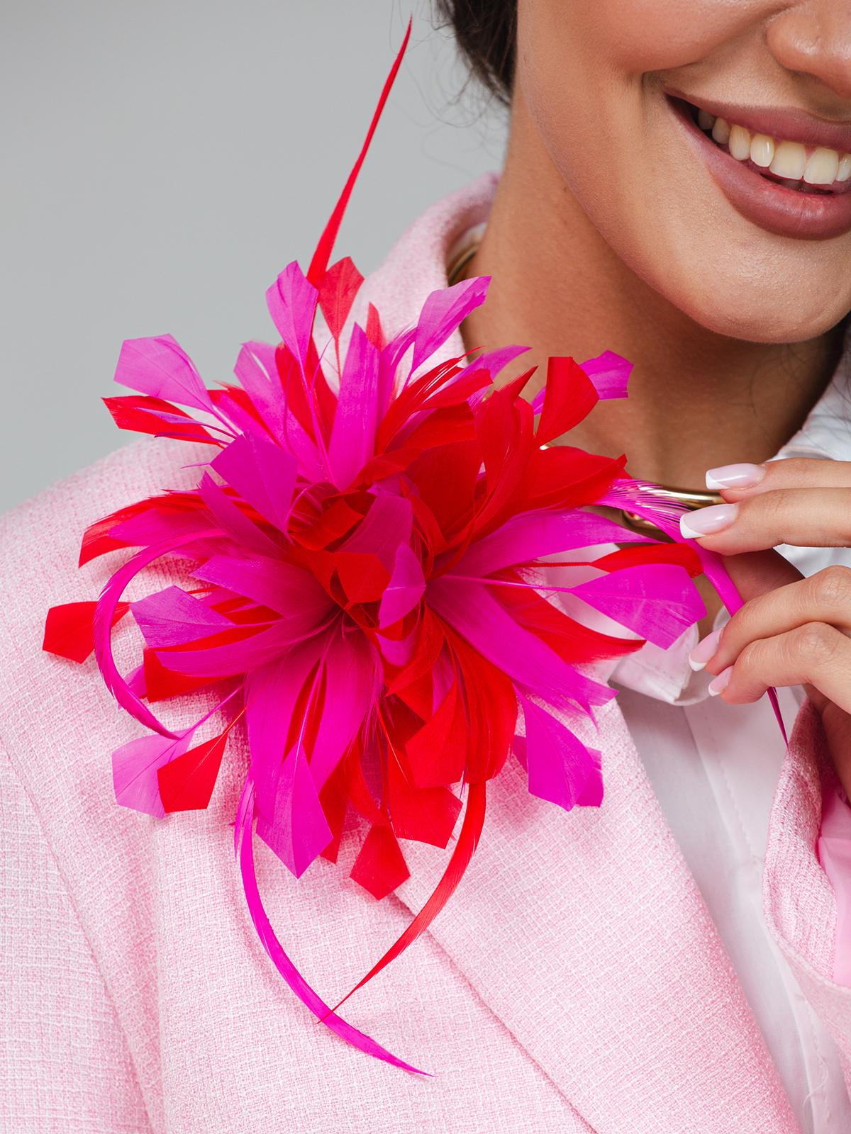Наша необычная брошь из натуральных перьев представляет собой истинное произведение искусства, выполненное вручную с использованием перьев геометрической формы. Благодаря своему уникальному дизайну и сочетанию красного и малинового цветов, брошь станет ярким акцентом вашего образа. Идеально подходит для тех, кто ценит броши ручной работы и стремится выделиться на фоне однообразных украшений. Брошь перо добавляет изысканности и создает эффектный визуальный объем. Это украшение можно использовать как украшение для волос или как самостоятельный аксессуар на одежде, так как оно оснащено креплением в виде булавки и зажима. Разная форма перьев добавляет динамики и оригинальности, что делает каждую перьевую брошь уникальной. Подходит для повседневного ношения или для особых случаев, когда нужно подчеркнуть свой стиль. Выбирая эту яркую брошь, вы приобретаете не просто украшение, а часть истории, которая расскажет о вашем неповторимом вкусе. Эта брошка из перьев станет отличным подарком для близких или друзей.