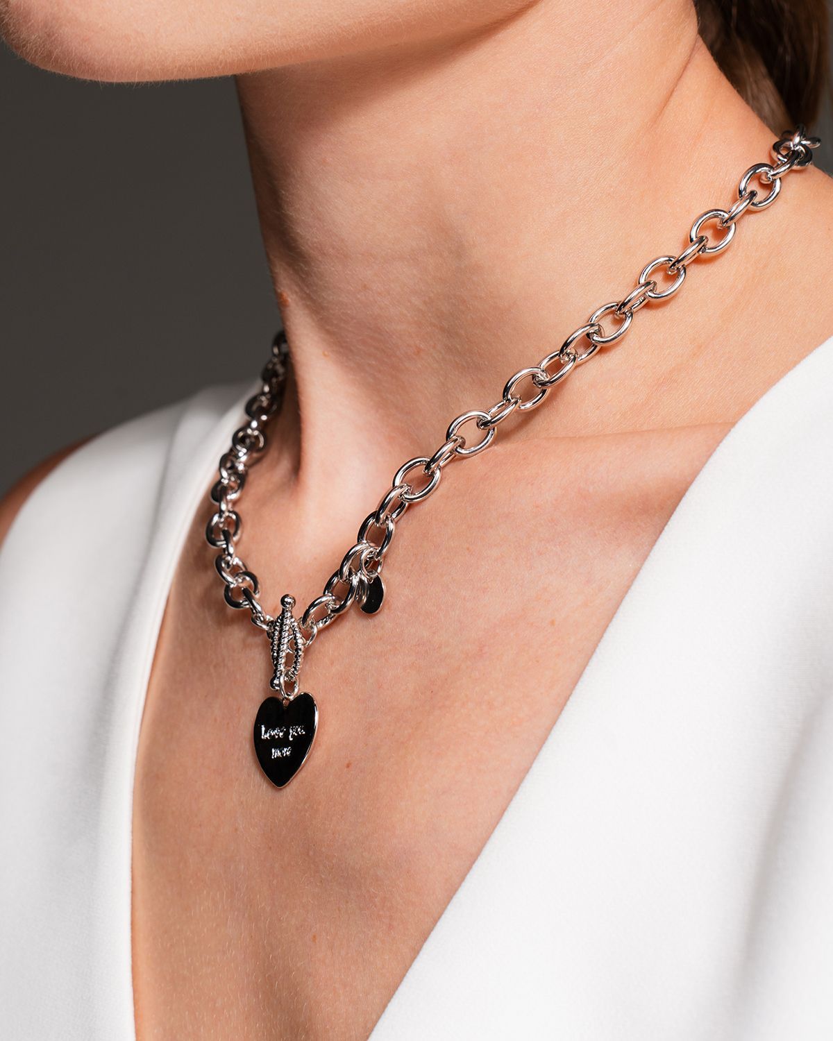 Это колье с крупной цепочкой делает стильным любой образ, подойдет как для вечернего выхода, так и повседневной носки. Ожерелье серебряного цвета соответствует последним трендовым веяниям моды, но при этом не противоречит классике, не темнеет со временем. Наши украшения изготавливаются из премиального бижутерного сплава и будут годами радовать вас своим видом. (Избегайте попадания воды, парфюма и кремов на металл).