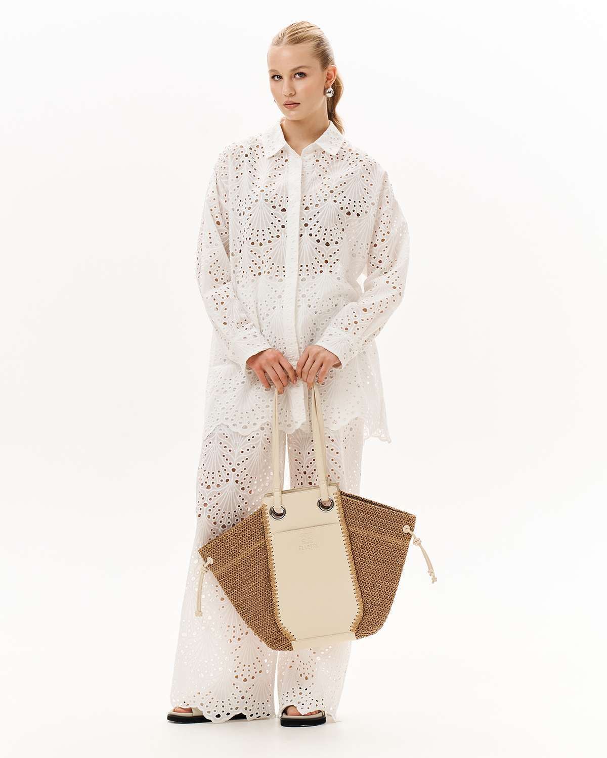 Женская плетёная сумка из рафии и кожи — идеальный выбор на лето. Лёгкая, вместительная, удобная, отлично подойдёт как пляжная сумка, сумка-шоппер или аксессуар для отдыха. Изготовлена из прочного материала, имитирующего солому и ротанг. Натуральная текстура и универсальный бежевый цвет легко сочетаются с летним гардеробом. Эстетичная сумка с удобными ручками длиной 29 см позволяют носить её на плече. Внутри сумки тоут подкладка с удобными карманами, с застежкой на кнопке. Подходит для пляжа, города, отпуска и путешествий. Сочетает в себе стиль и практичность. Приобретая эту летнюю сумку вы подчеркнёт ваш стиль и она станет любимым аксессуаром сезона! Ширина: 37 см. Длина: 33 см. Высота: 33 см.