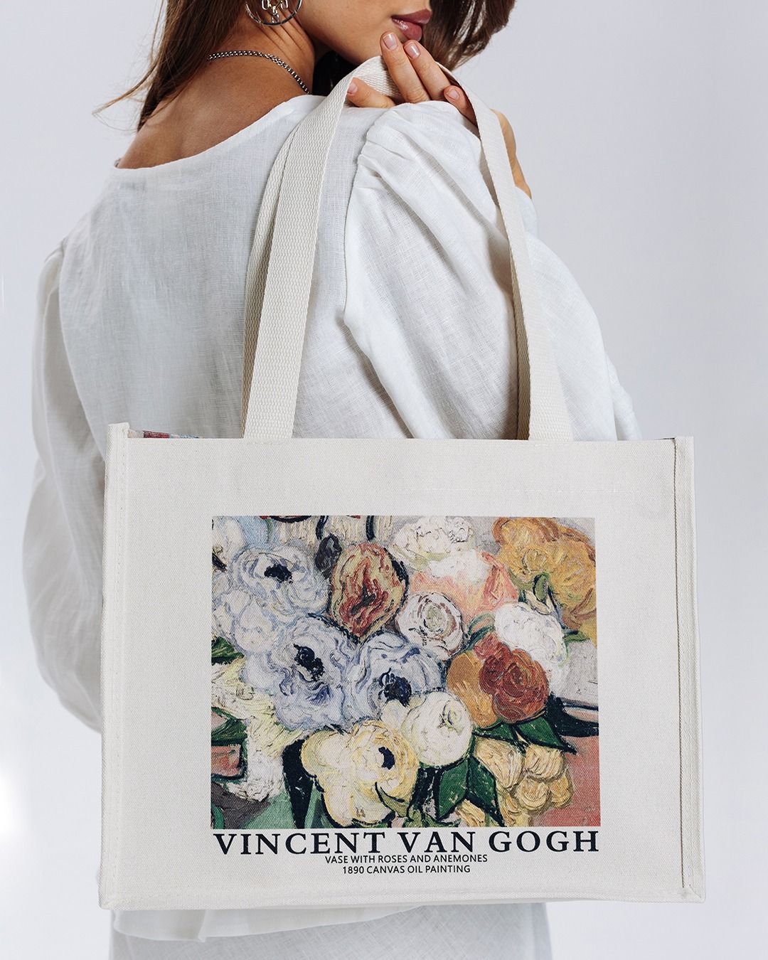 Изделие украшено уникальным принтом, вдохновленным картинами Ван Гога, что делает его настоящим произведением искусства. Авторский дизайн холщовой сумки подчеркивает индивидуальность владельца. Тканевый шоппер с рисунком идеально подходит для пляжа, шоппинга или прогулок по городу.