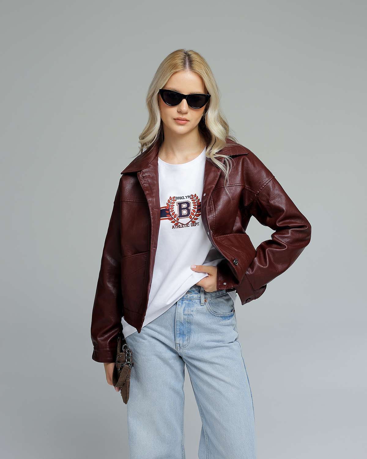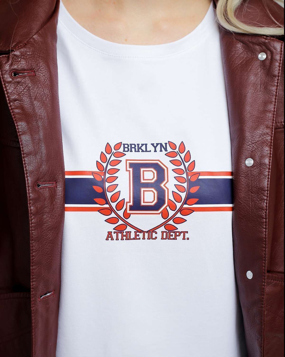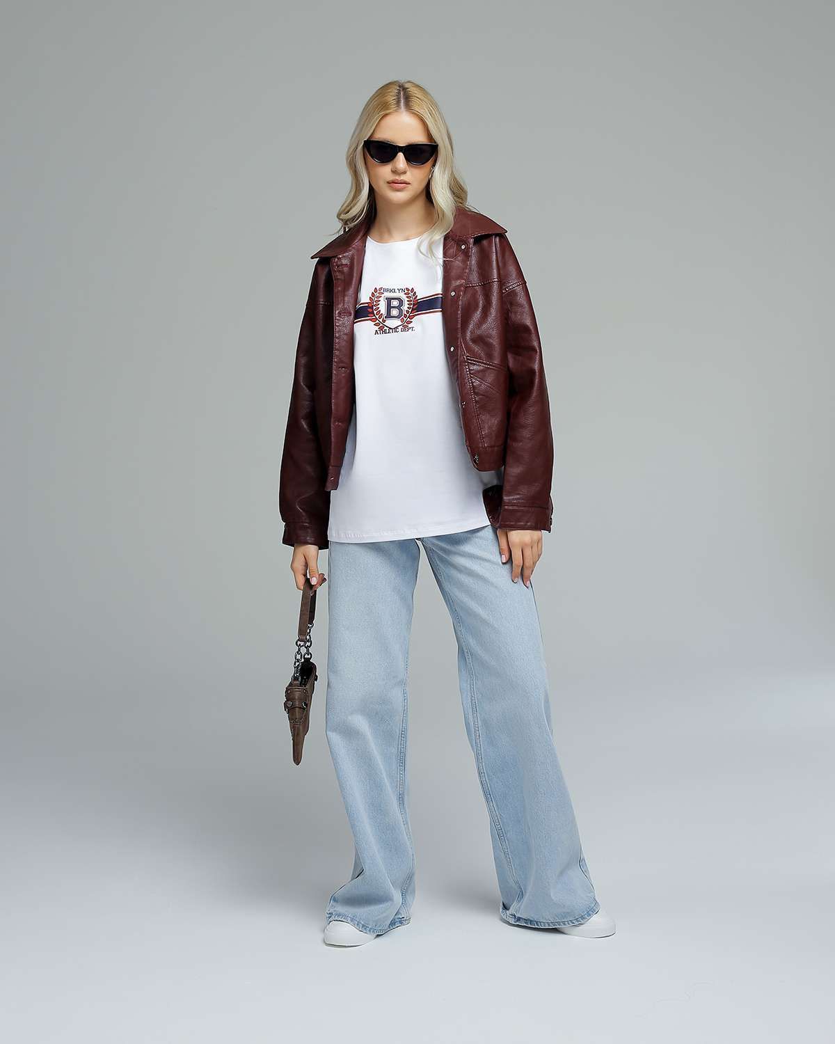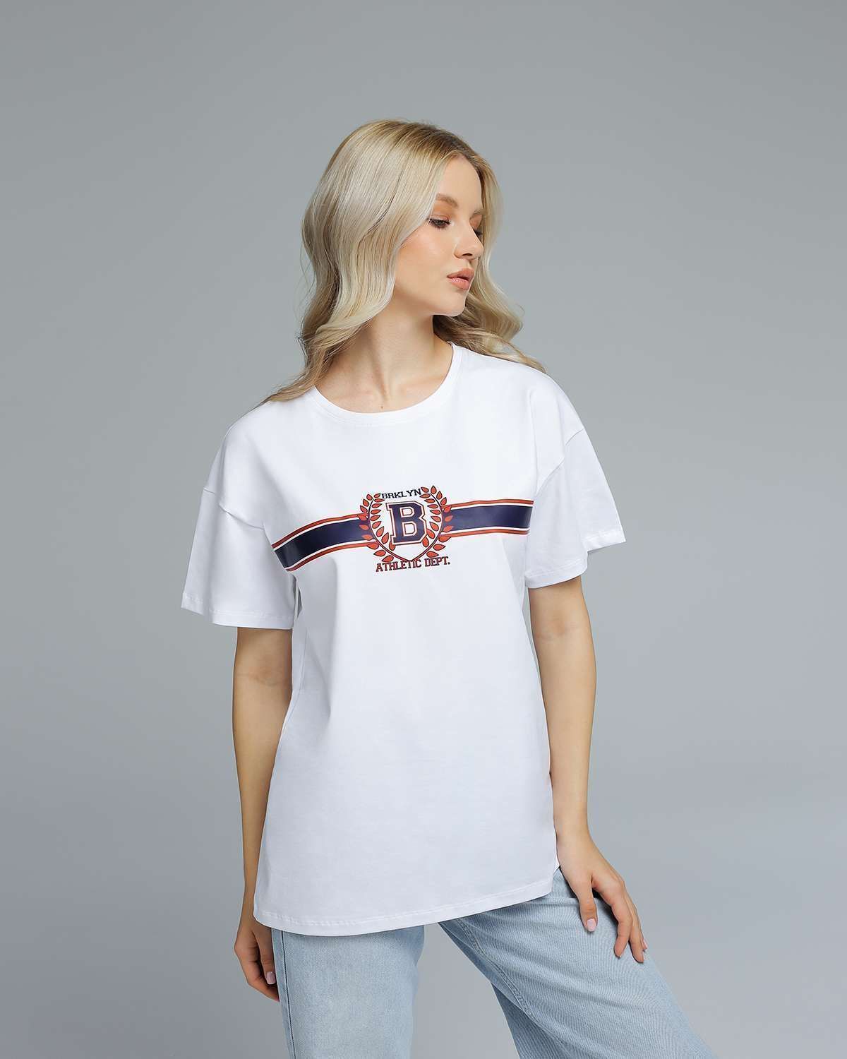 Футболка женская актуального кроя — свободная посадка и широкий рукав, которые подчёркивают современность изделия. Её можно носить в заправленном виде и навыпуск.