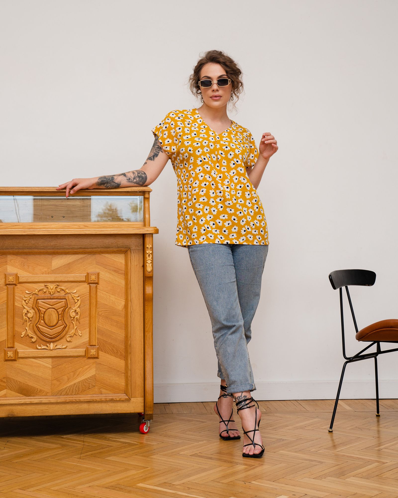 Топ женский из одной из самых подходящих тканей для лета — штапеля. Материал приятен для тела, лёгкий, хорошо дышит. Кофта женская оверсайз кроя отлично подходит для создания расслабленных летних образов. Она комфортна из-за свободной посадки и не стесняет движения.