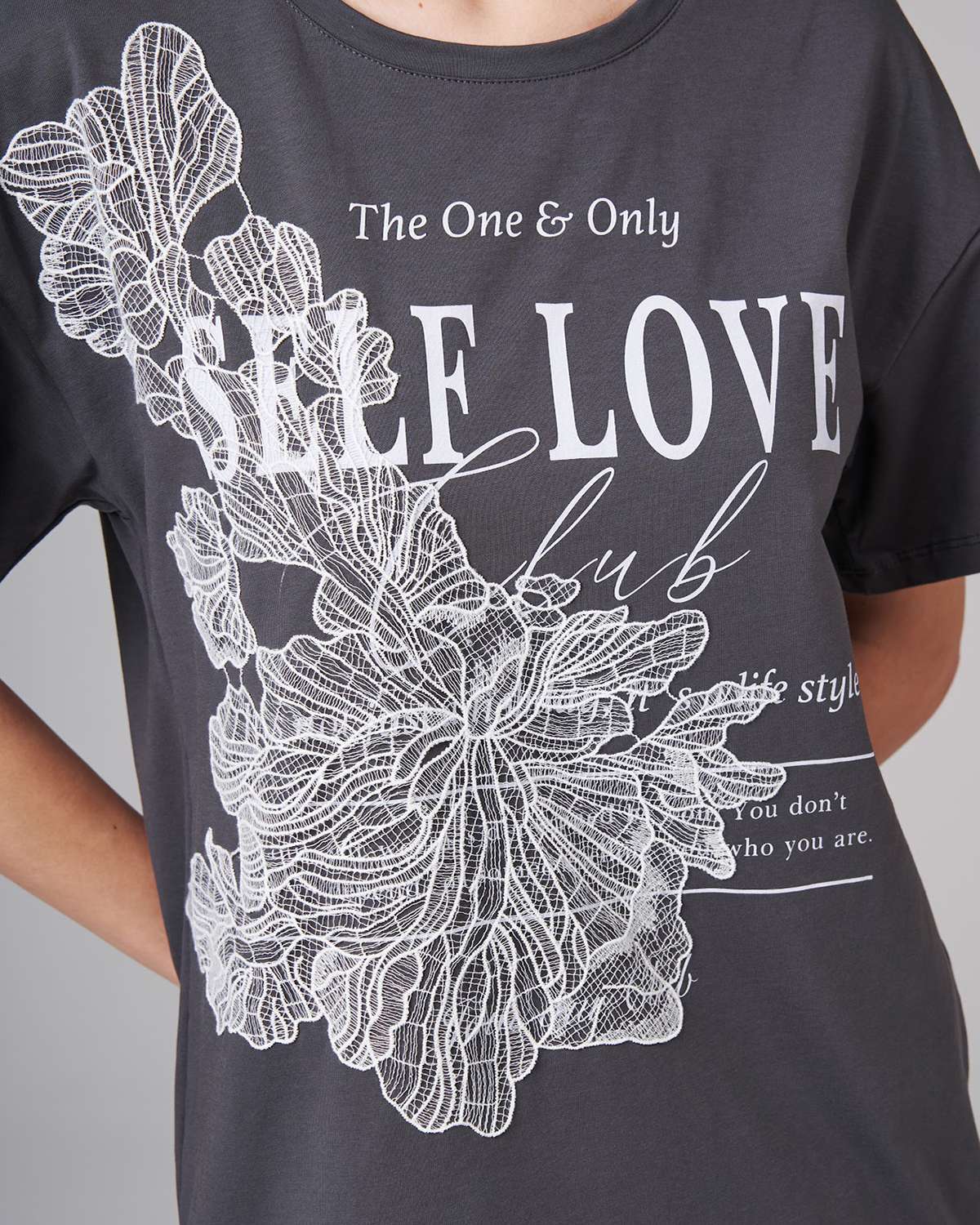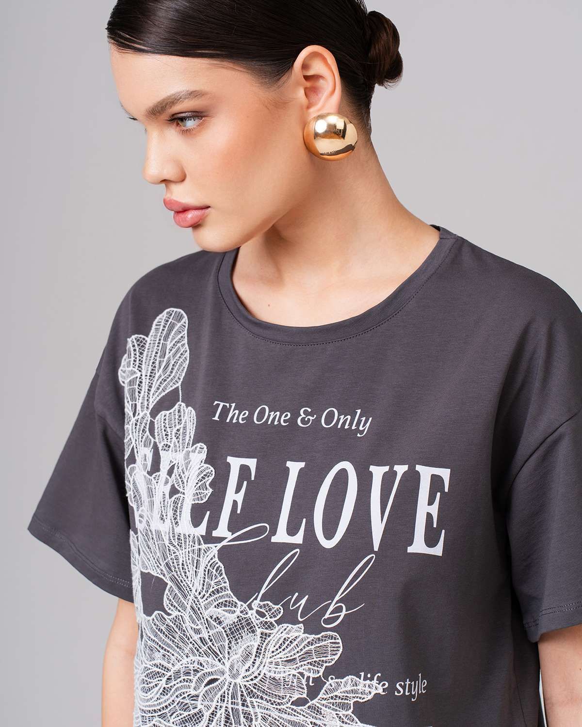 Коллекцию трендовых футболок от российского бренда SAHAR Art lab отличает оригинальный авторский принт и модный дизайн! Базовые модели выполнены из премиальной хлопковой кулирки турецкого производства (хлопок 95%, лайкра 5%). Особенностью ткани является отличный воздухообмен, легкий уход, износоустойчивость, сохранение формы и цвета после многочисленных стирок. Творческая команда дизайнеров и художников создает эксклюзивные вещи по тщательно продуманным лекалам. Современные модели прекрасно сидят на женщинах с любой фигурой. Прямой свободный крой, легкий оверсайз, оптимальная длина, округлый вырез и широкие, немного удлиненные рукава делают футболку незаменимым предметом женского гардероба! Стильная вещь серого цвета украшена рисунком и аппликацией из кружева. Нарядная трикотажная футболка дополнит наряд для пляжного отдыха на море, будет с удовольствием носиться в качестве повседневной на работе, дома или во время прогулки.