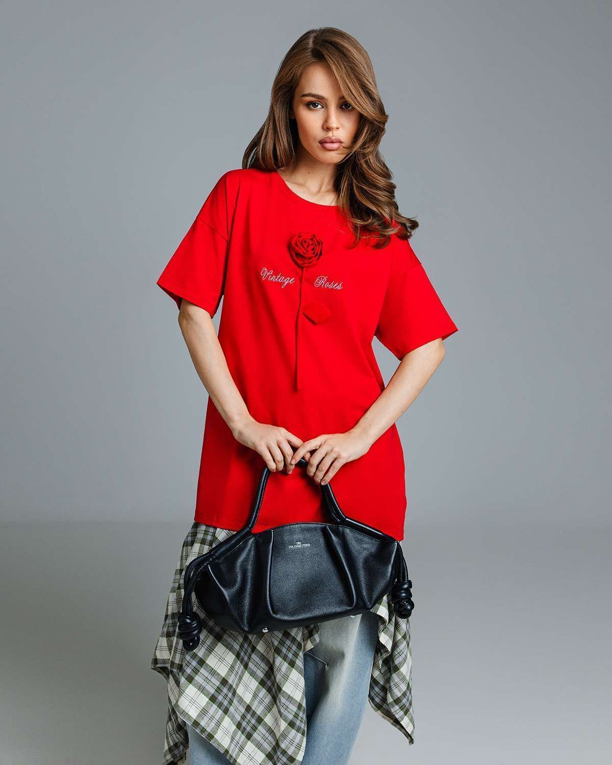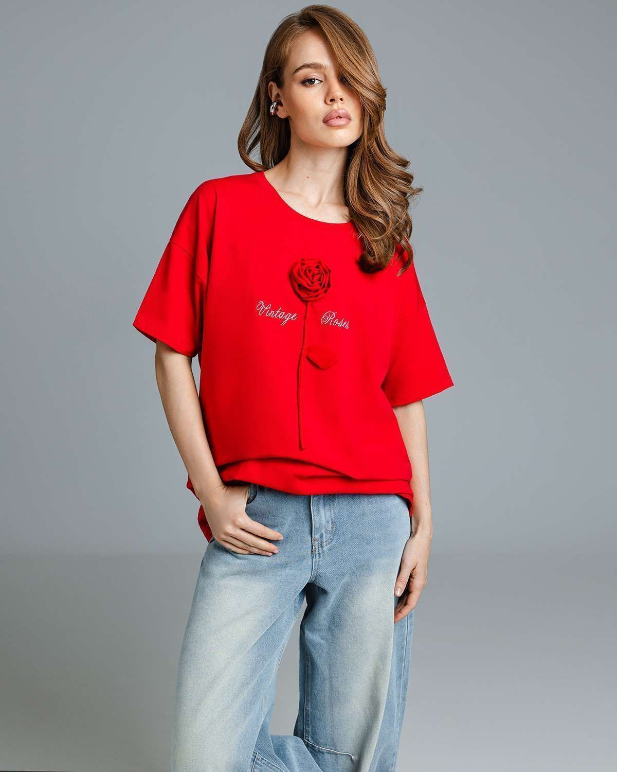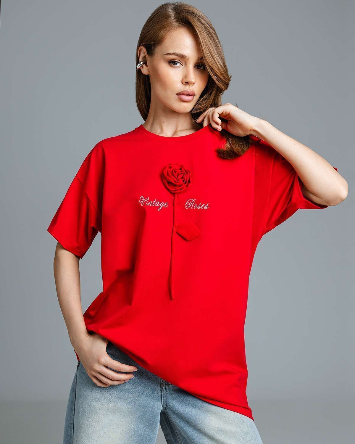 Футболка оверсайз с объёмным цветком FDA001