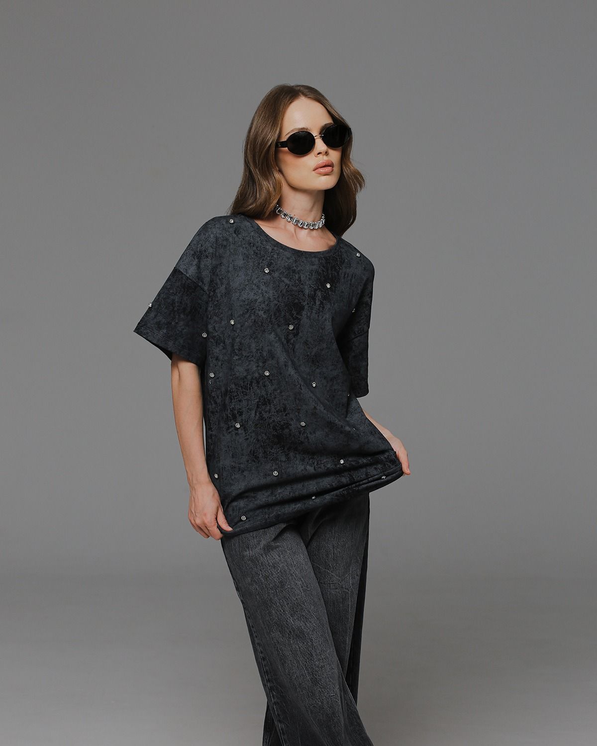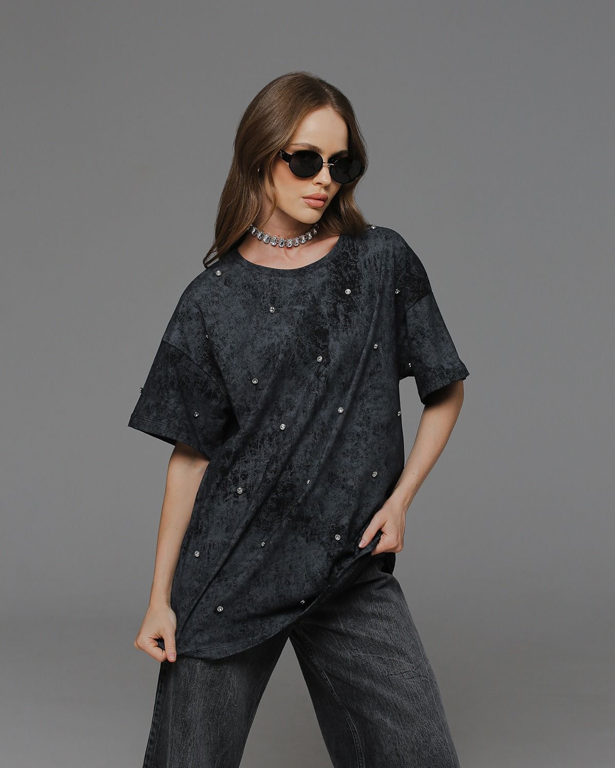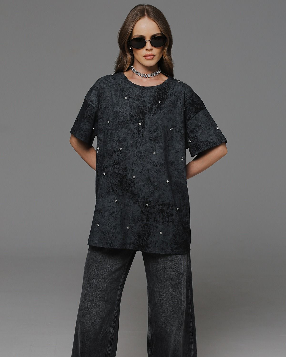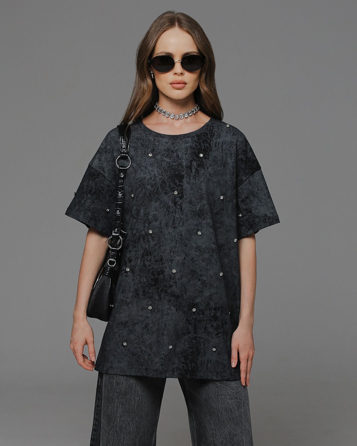 Футболка оверсайз с заклёпками-кристаллами FMB004