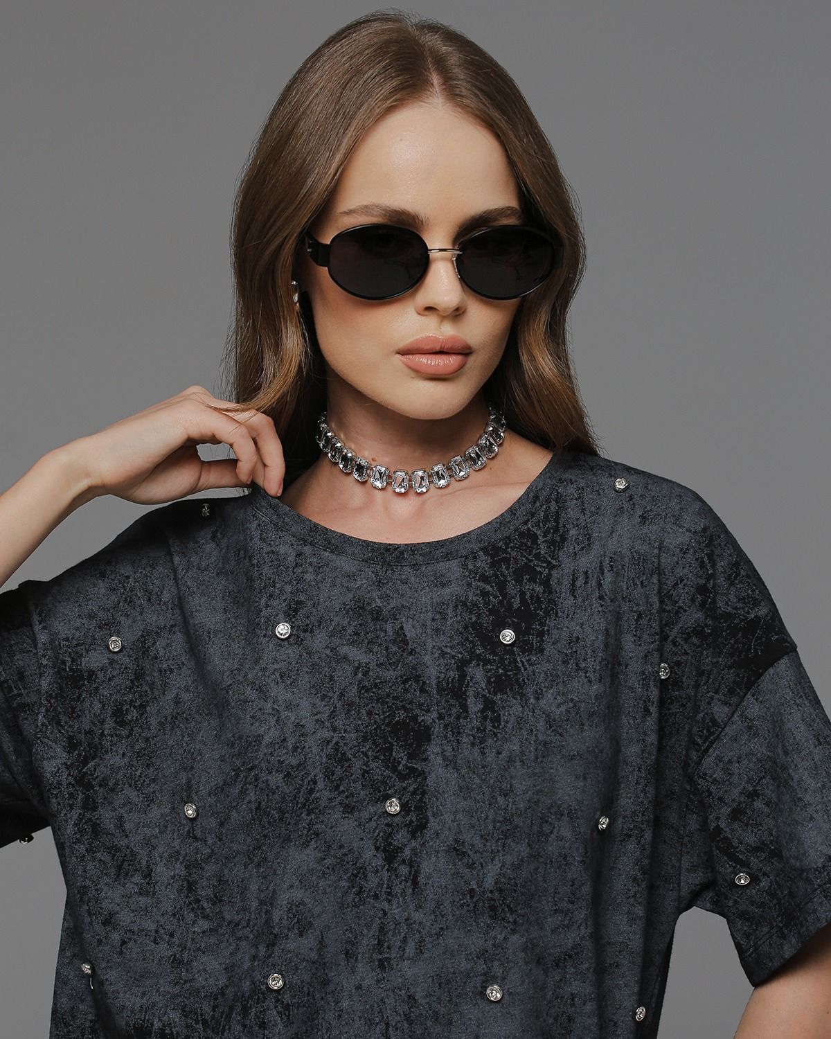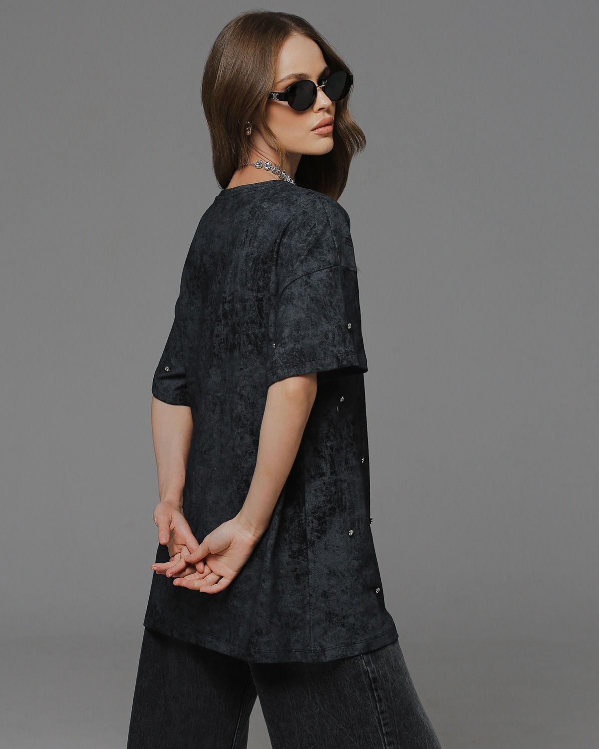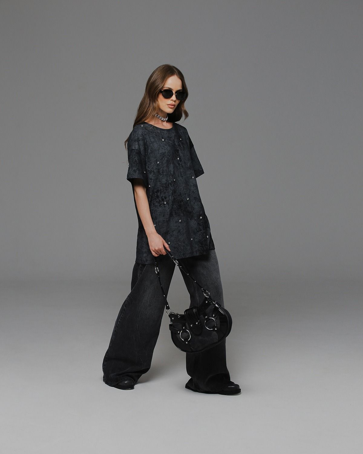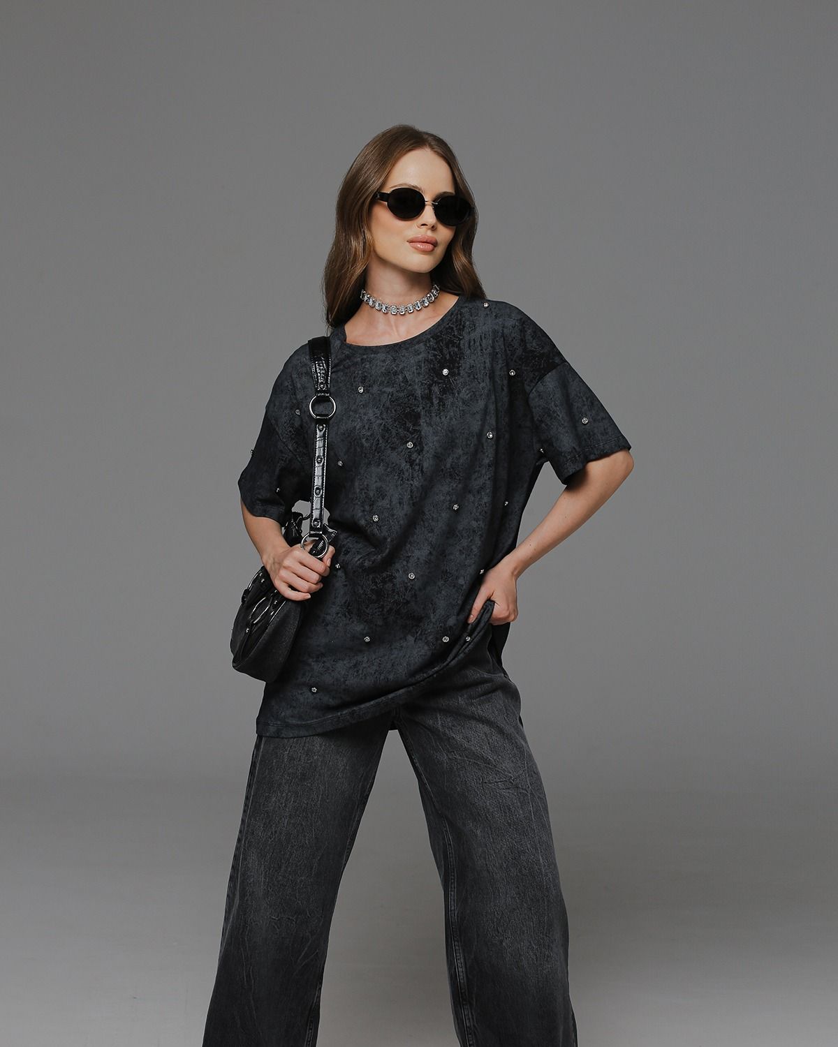 Футболка оверсайз с заклёпками-кристаллами FMB004