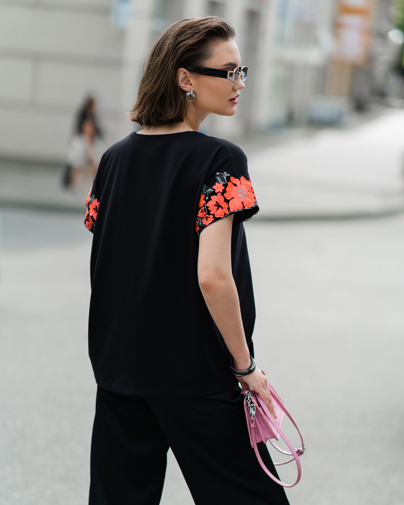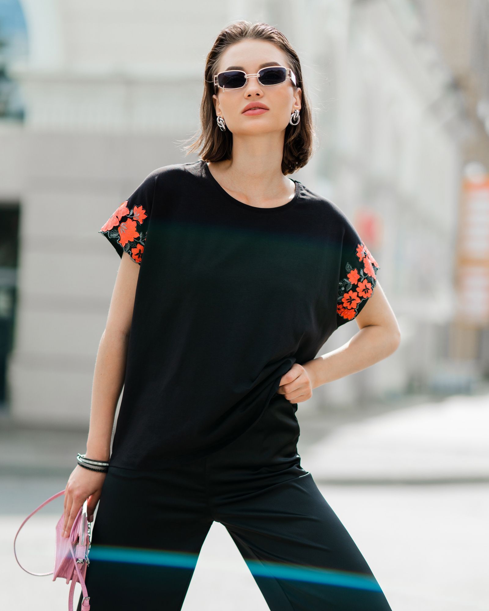Футболка для женщин, умеющих сочетать в себе разные стихии. Спортивный стиль — это свобода движения, уверенность в себе и заявка на минимализм. Все эти черты подчёркиваются свободным кроем оверсайз и дополняются удлиненный силуэтом. Декор на рукавах — это игривость, женственность и кокетство. Он добавляет изделию текстуру, объём и изюминку. А всё вместе — это дерзкая женская футболка, которая бросает вызов обыденности. Такие носят смелые и стильные женщины.