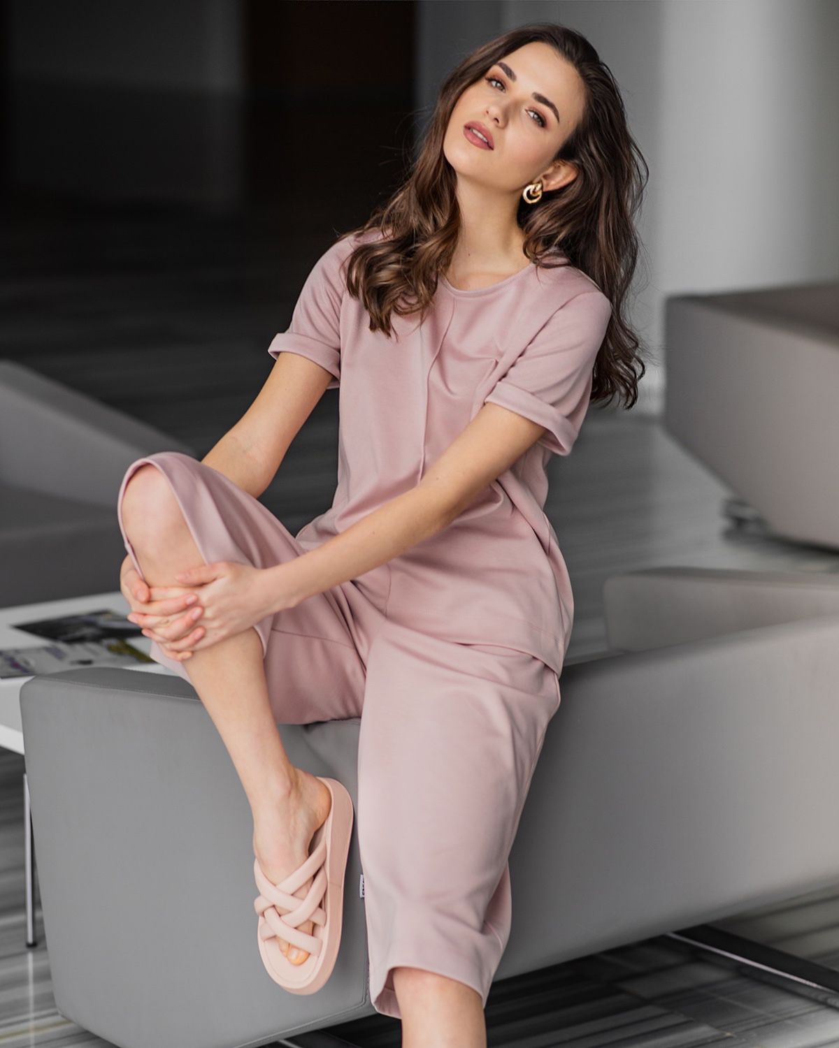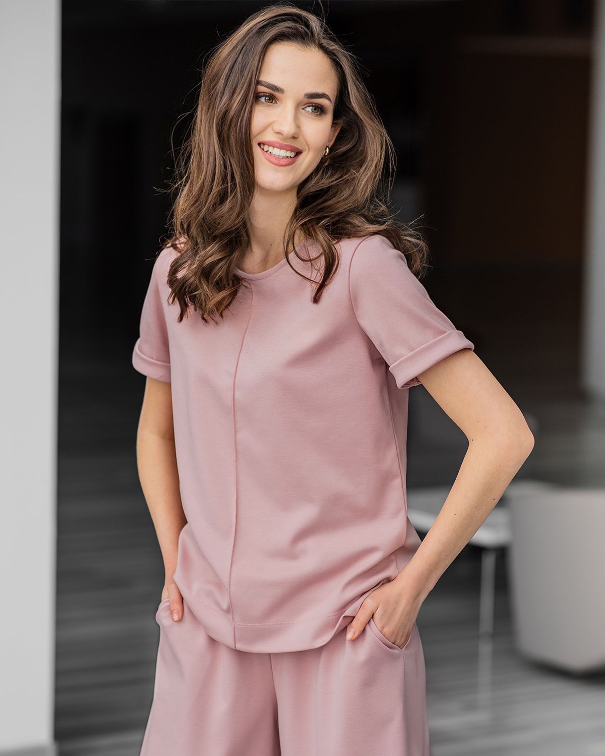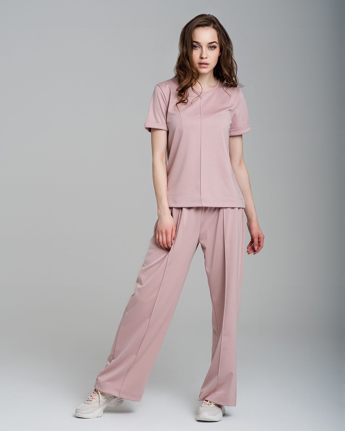 Футболка держит форму и прекрасно смотрится на фигуре. Стильные отвороты на рукавах - придают футболке эффект спорт-шик. К футболке комплектом вы можете заказать широкие брюки или бермуды.
