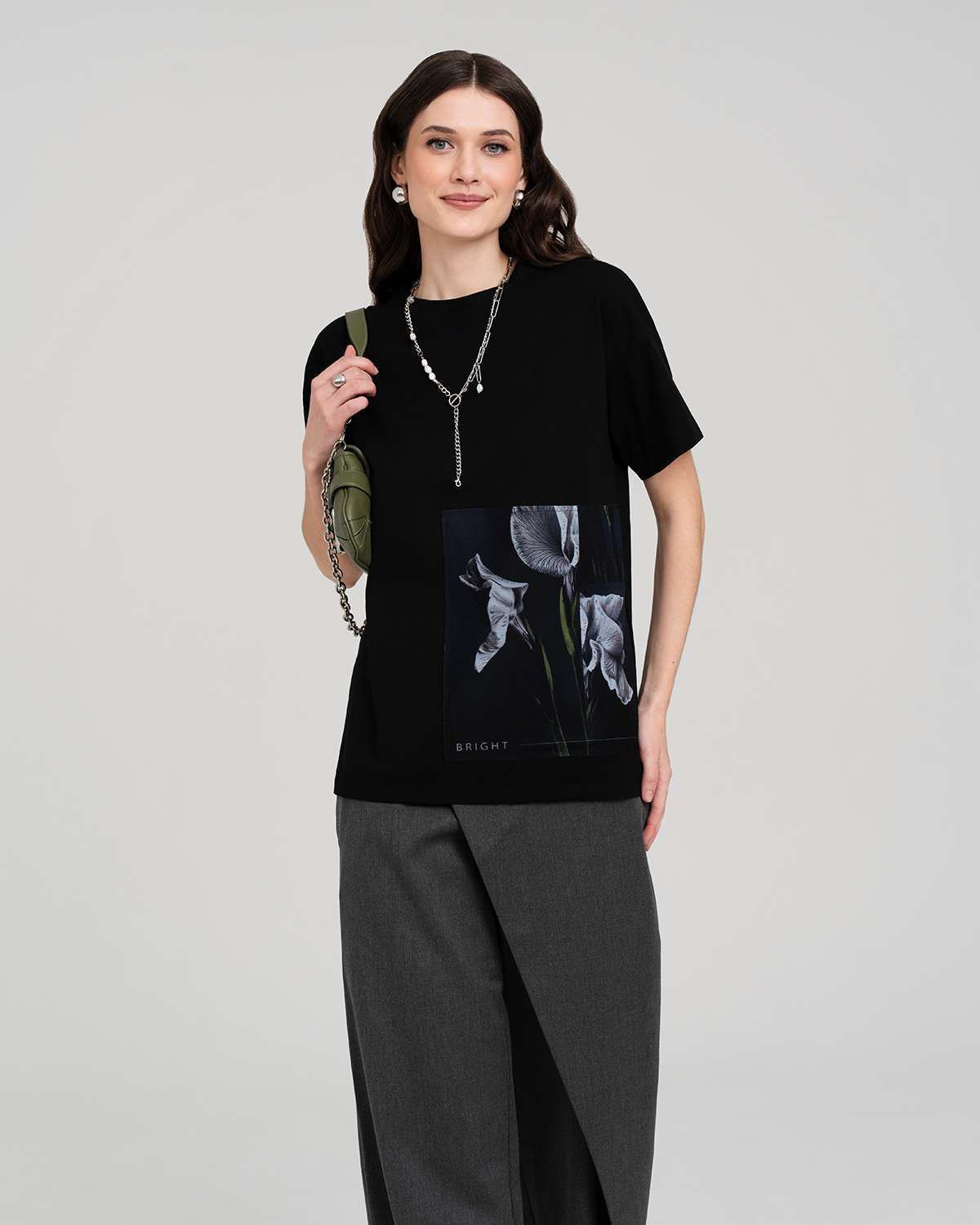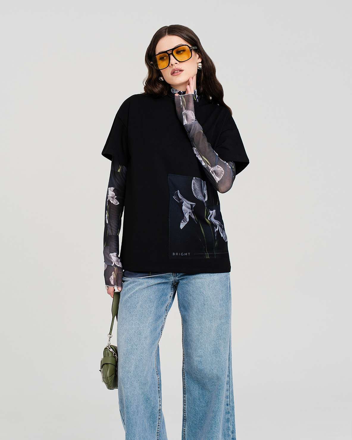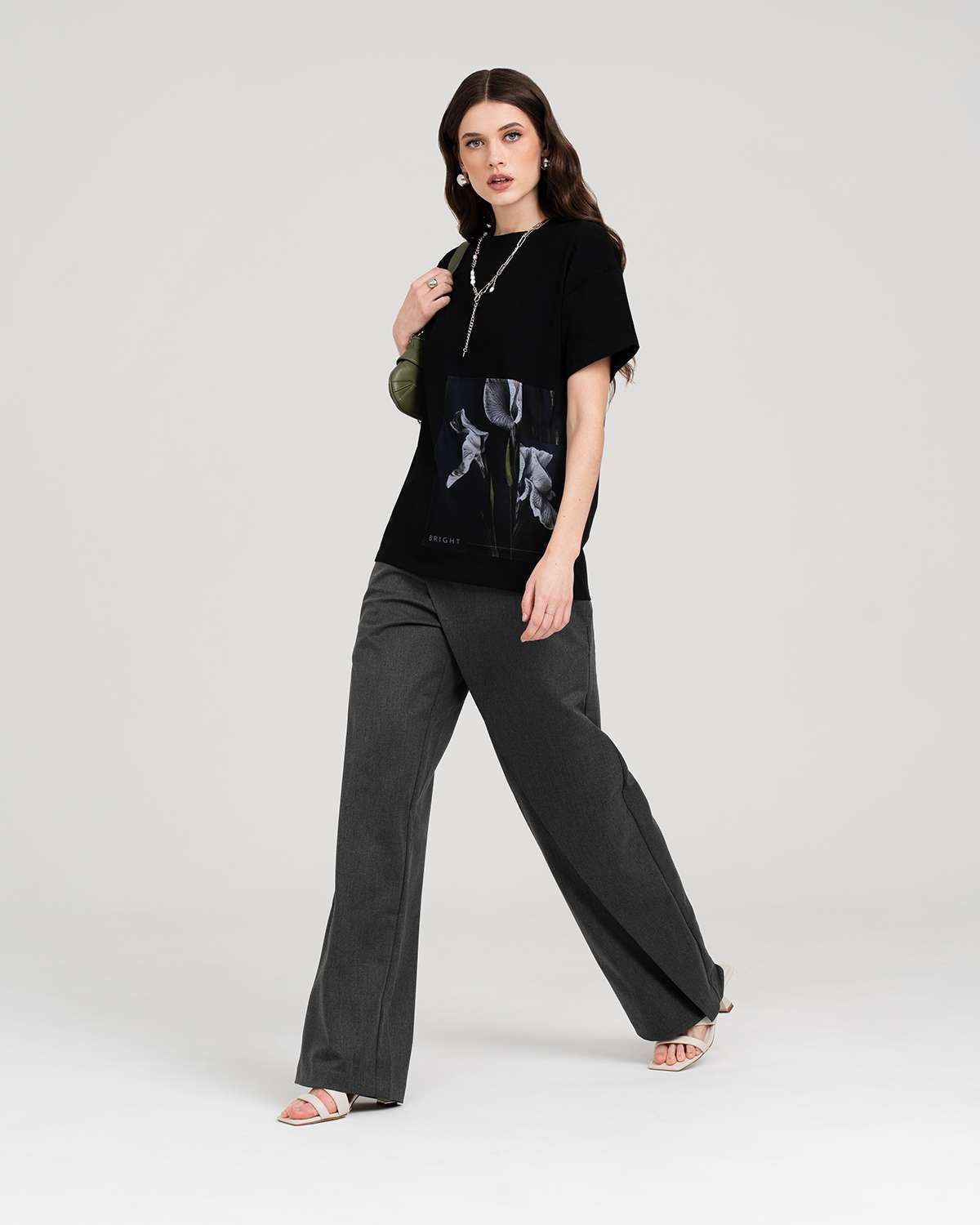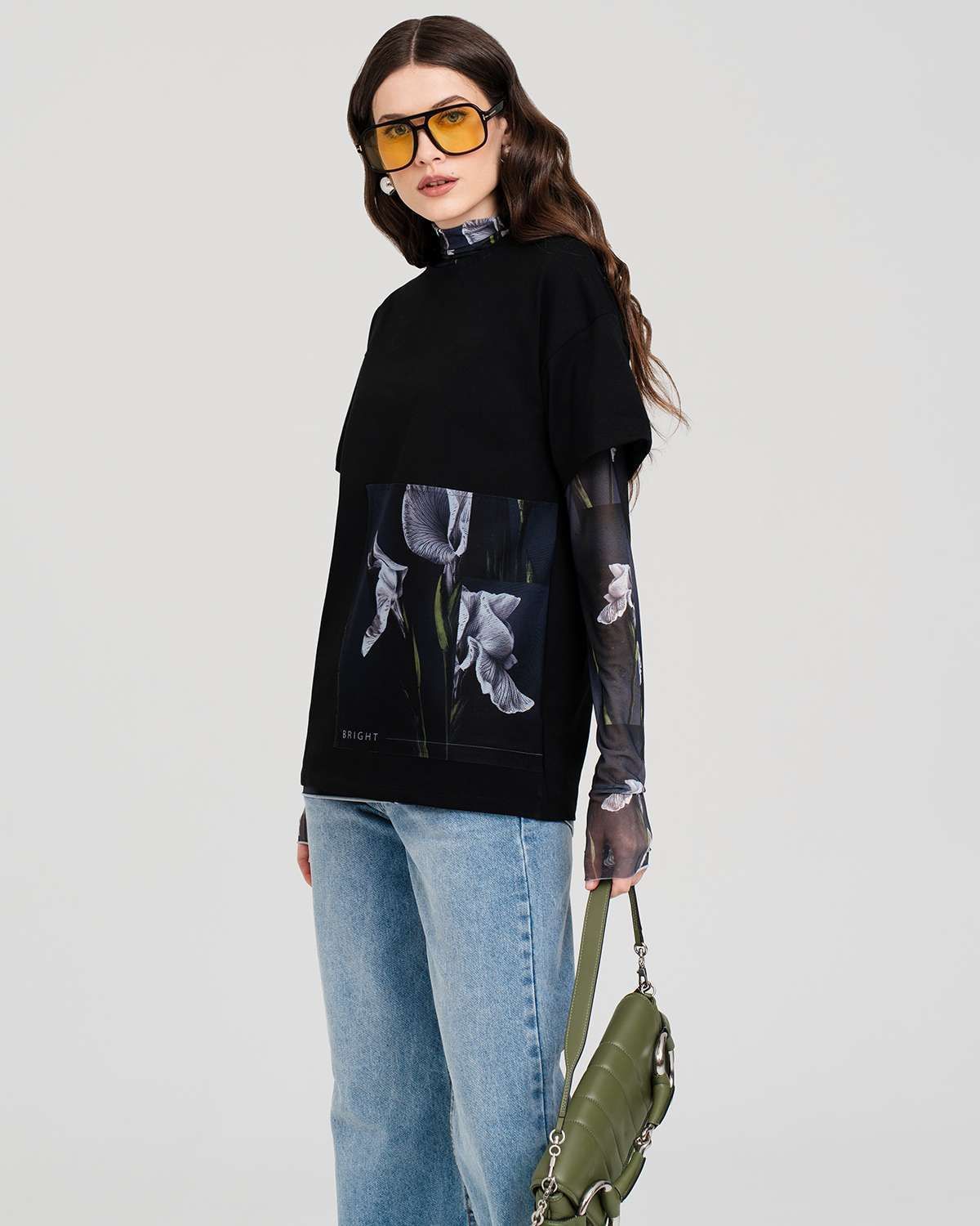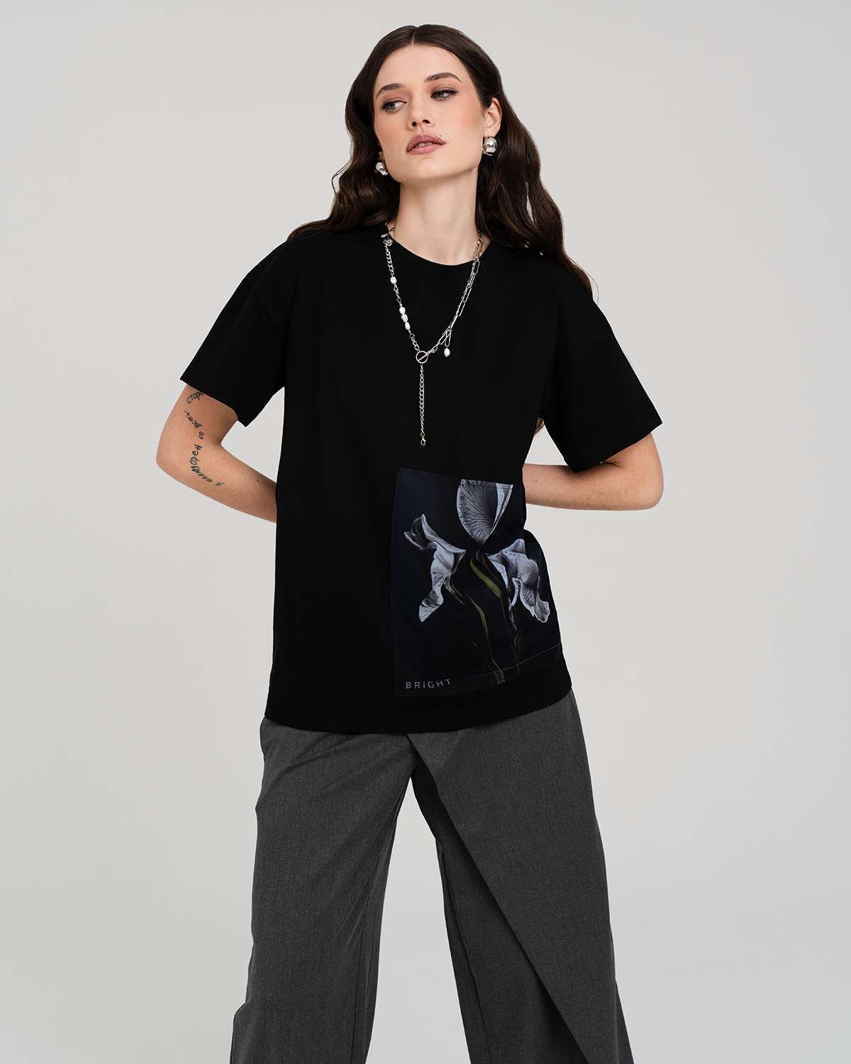 Еще одна деталь, подчеркивающая непринужденный стиль – спущенный рукав. Этот элемент придает футболке особый шарм и делает образ более мягким и женственным. Спущенный рукав визуально расширяет плечи, создавая эффект хрупкости и изящества.