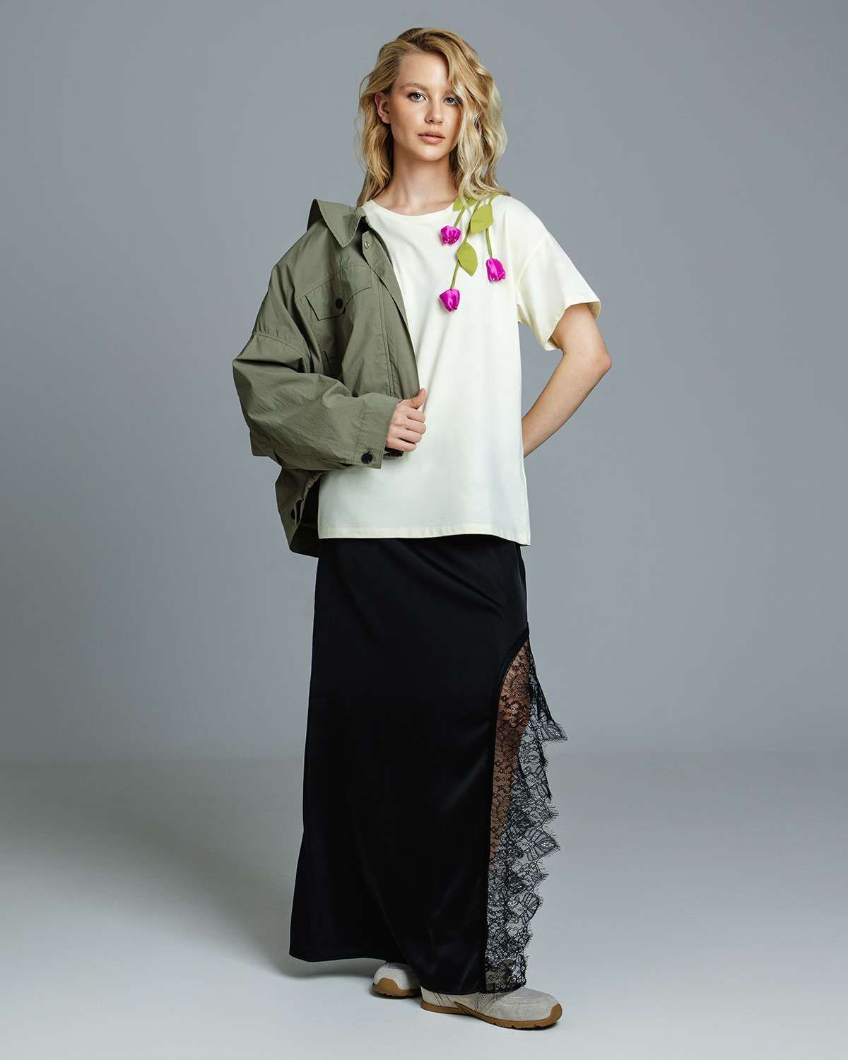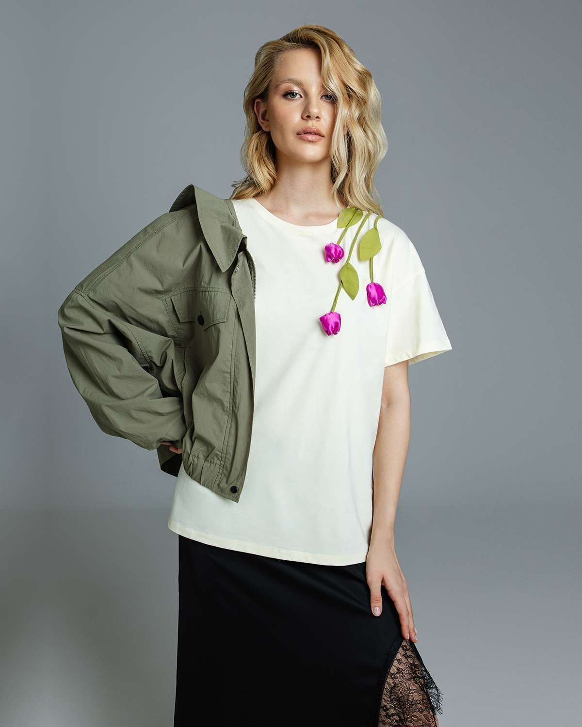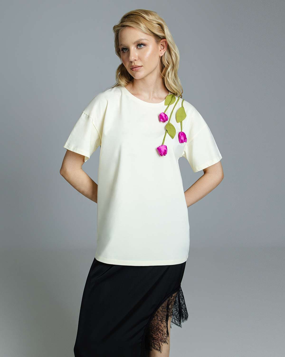 Футболка с объёмными цветами FAS002