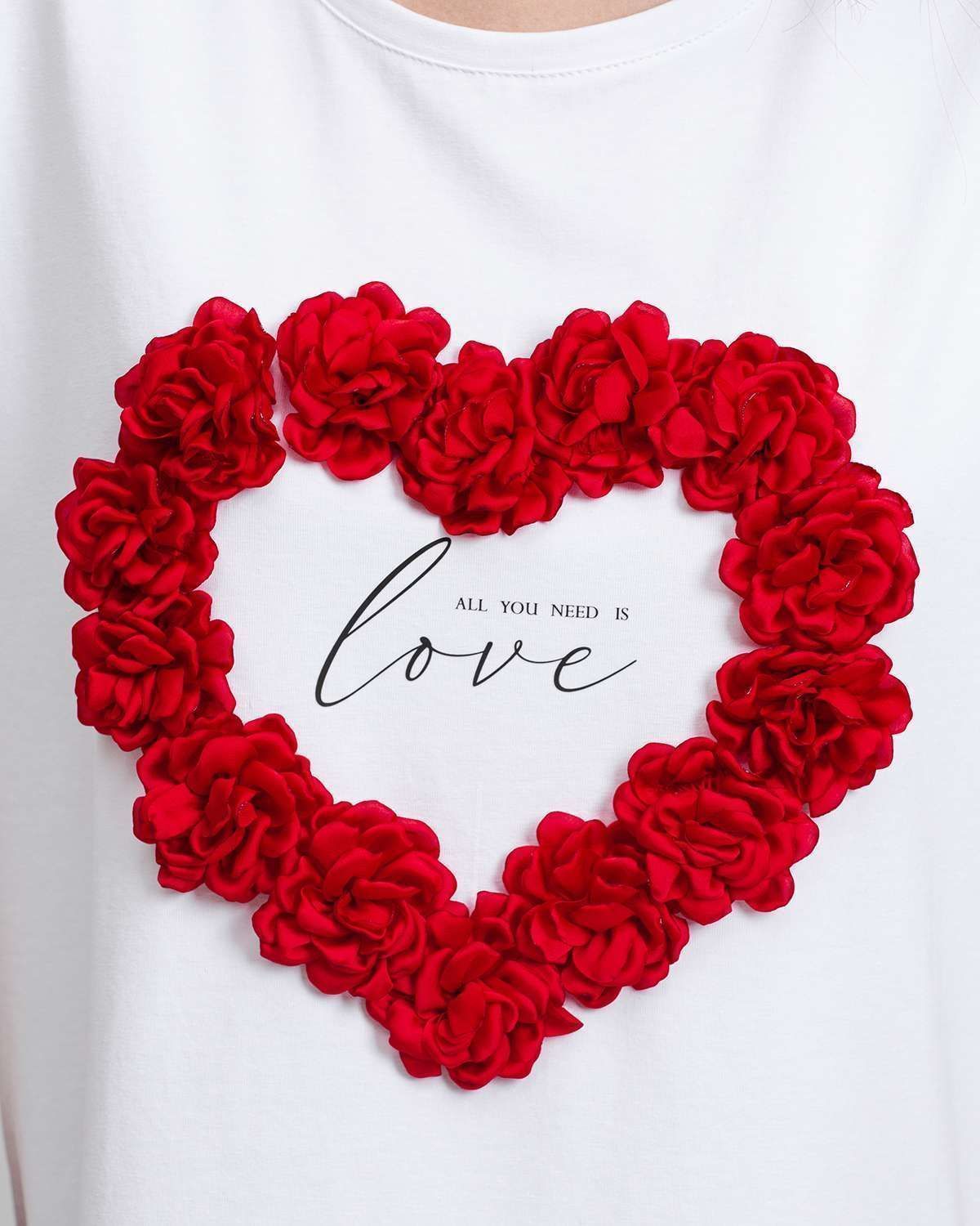 Футболка с объёмными цветами "сердце" FDS001