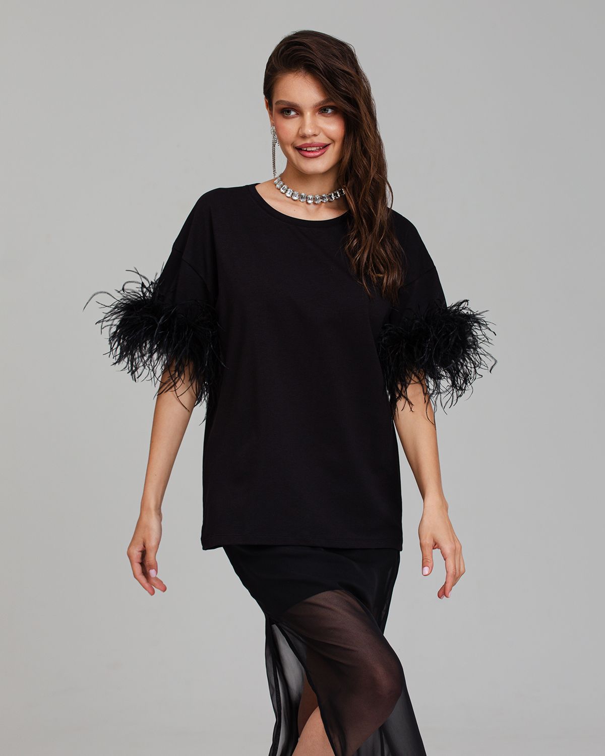 Футболка с перьями страуса FSP001