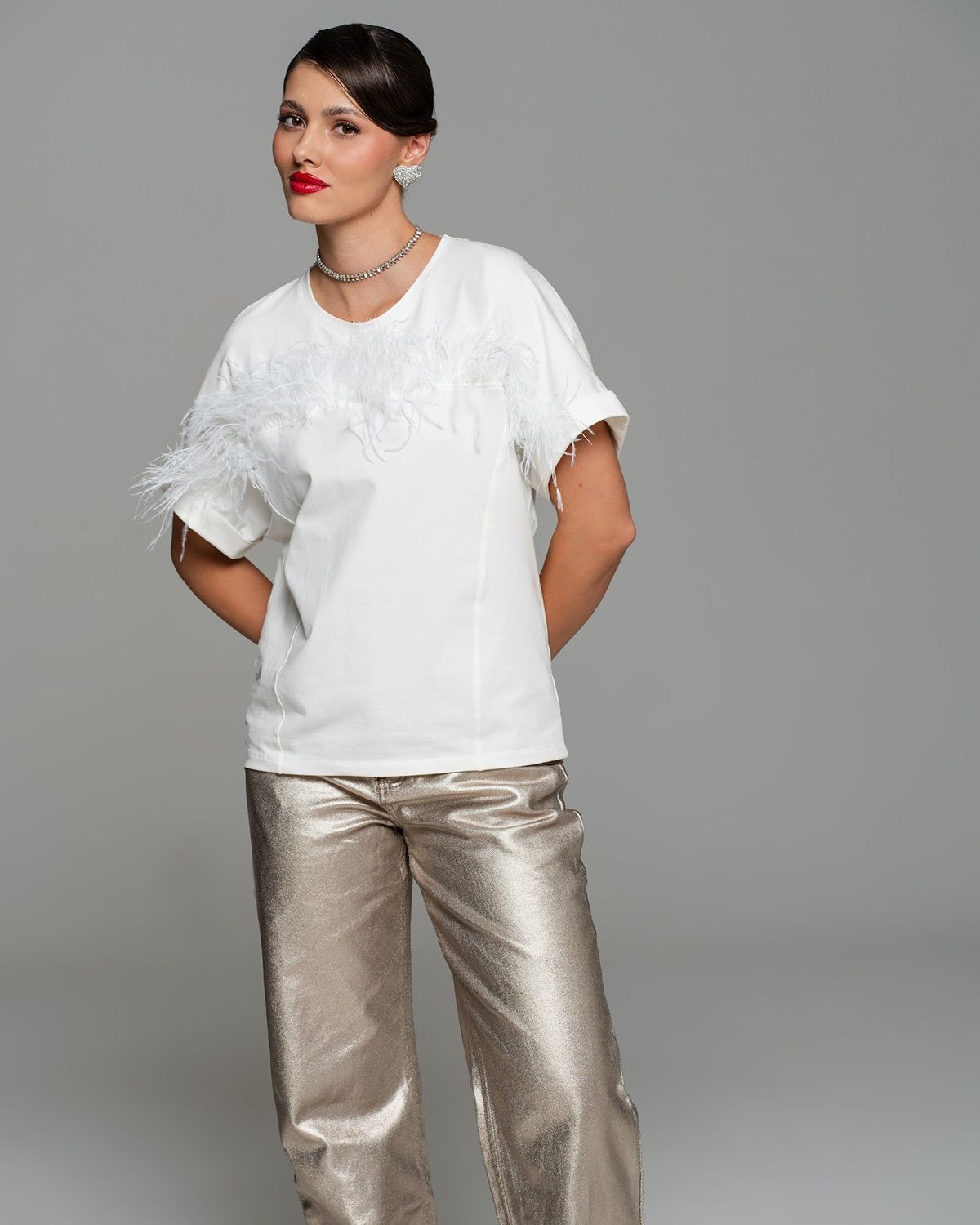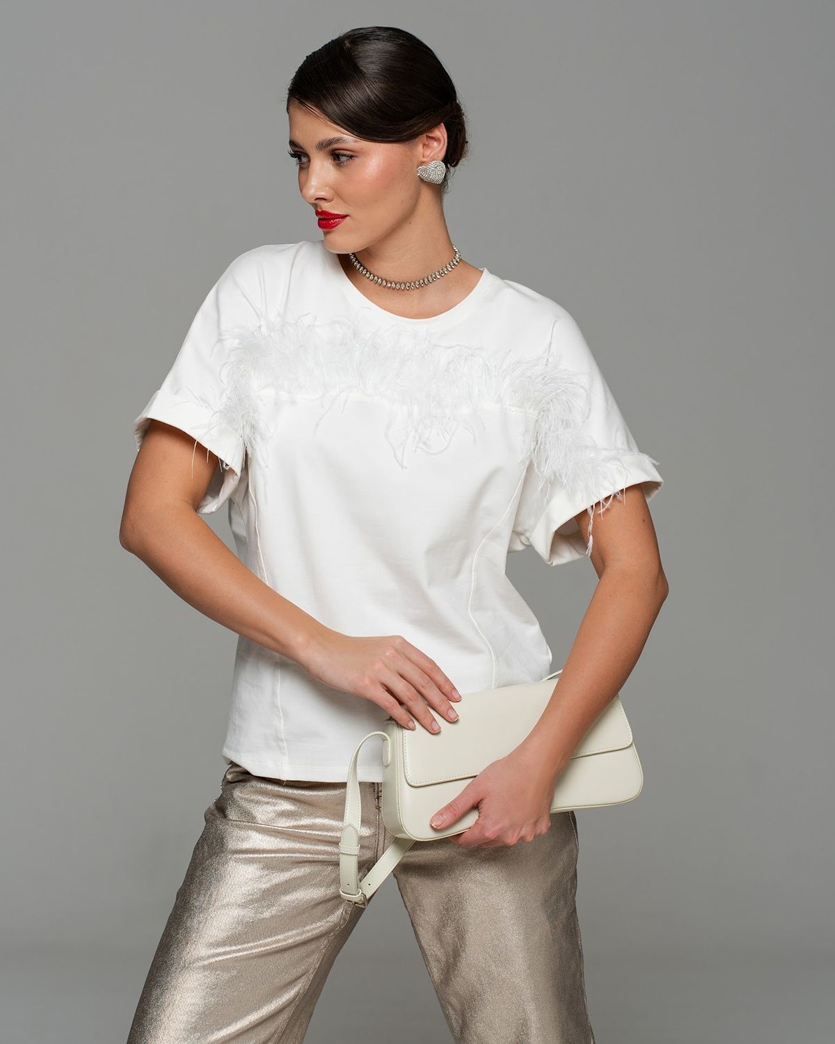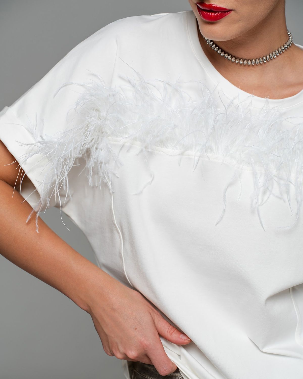 Футболка с перьями — экстравагантная находка для тех, кто следит за fashion индустрией. Роскошный тренд с мировых подиумов и из последних лукбуков таких модных брендов, как Bottega Venetta, The Attico, станет изюминкой вашего гардероба.