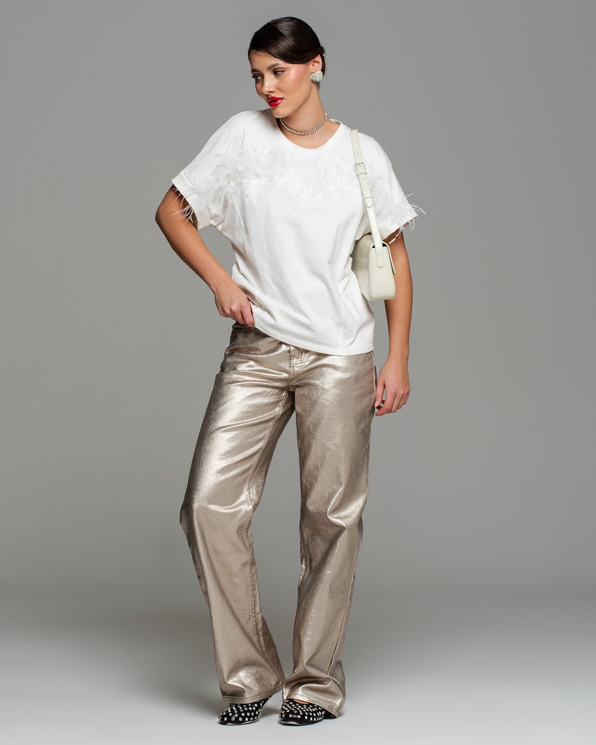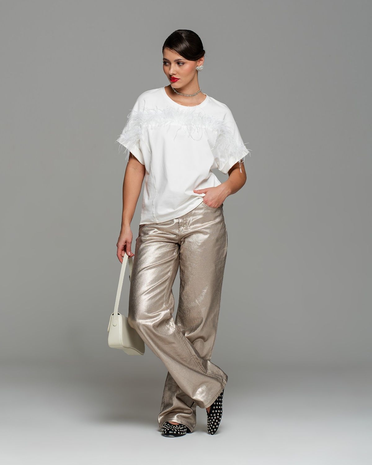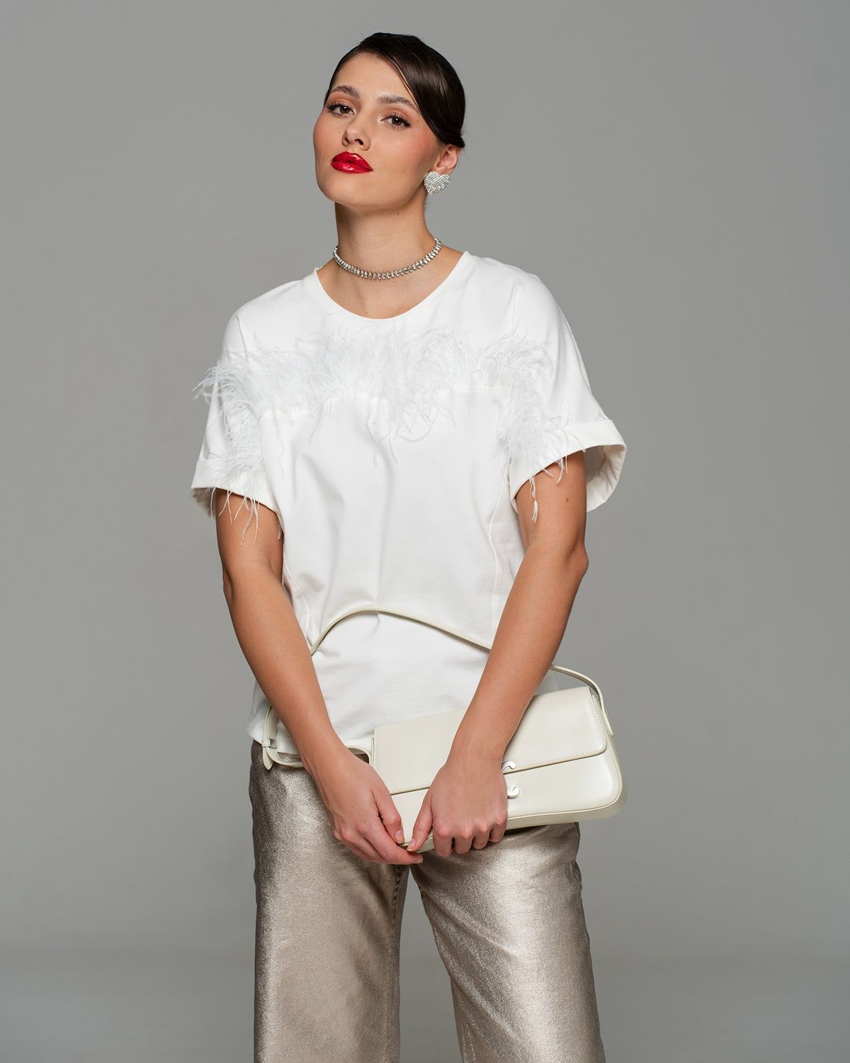Футболка с перьями — экстравагантная находка для тех, кто следит за fashion индустрией. Роскошный тренд с мировых подиумов и из последних лукбуков таких модных брендов, как Bottega Venetta, The Attico, станет изюминкой вашего гардероба.