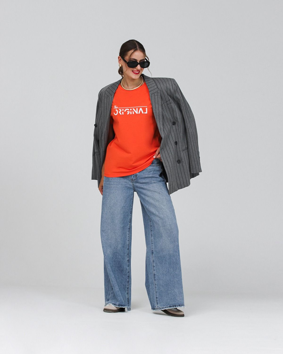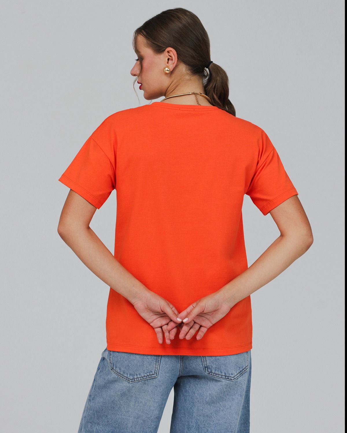 Футболка женская актуального кроя — свободная посадка и широкий рукав, которые подчёркивают современность изделия. Её можно носить в заправленном виде и навыпуск.