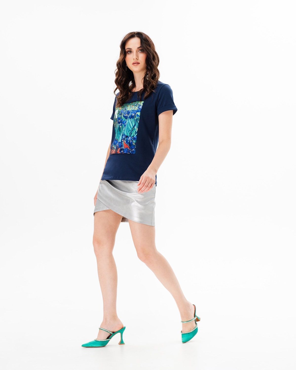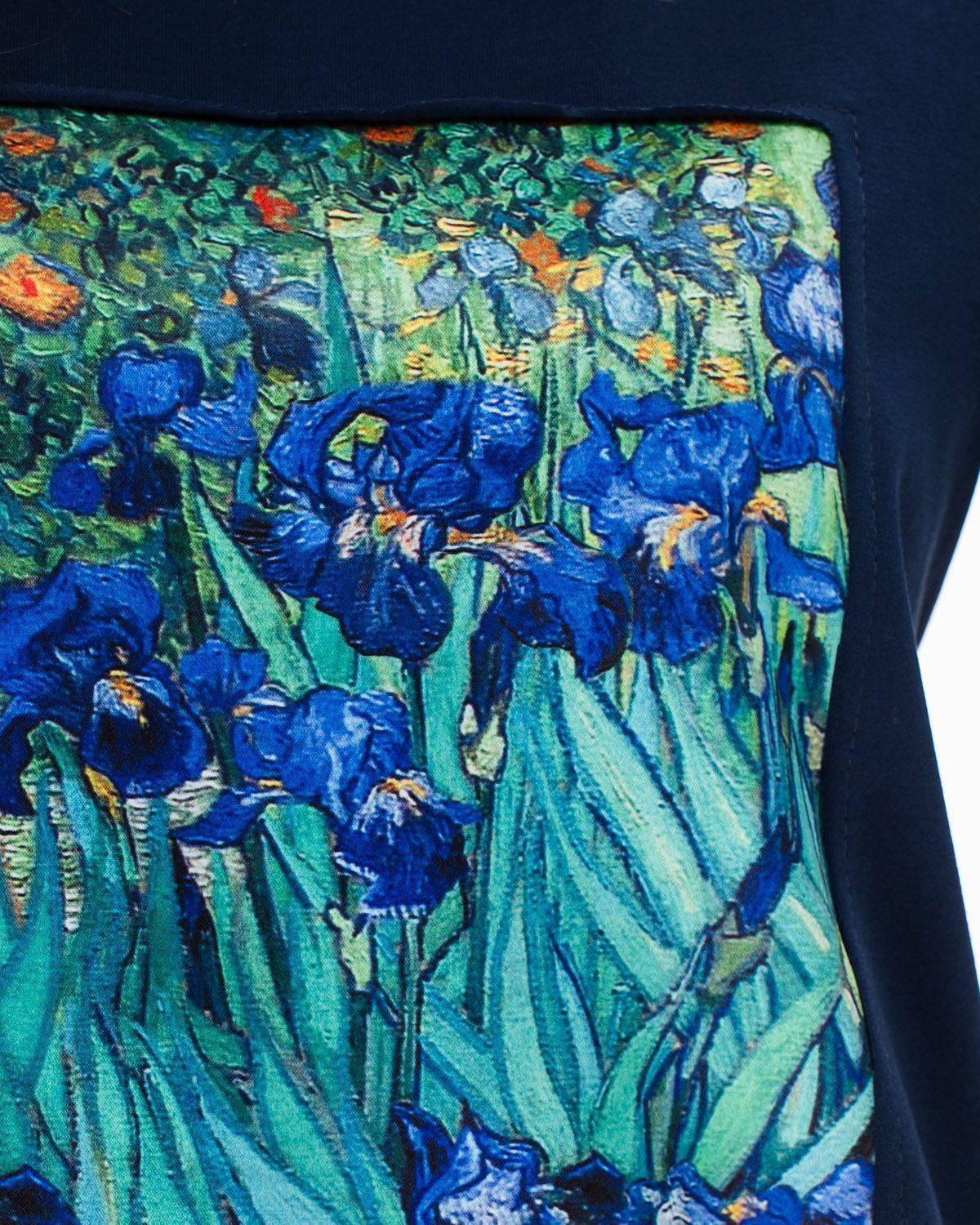 Шелковая вставка вшита изнутри и придает изделию текстуры и фактурности. Шелк элегантно переливается и прекрасно сочетается с матовым хлопком. Яркие авторские принты в разных художественных стилях удовлетворят самые смелые фантазии.