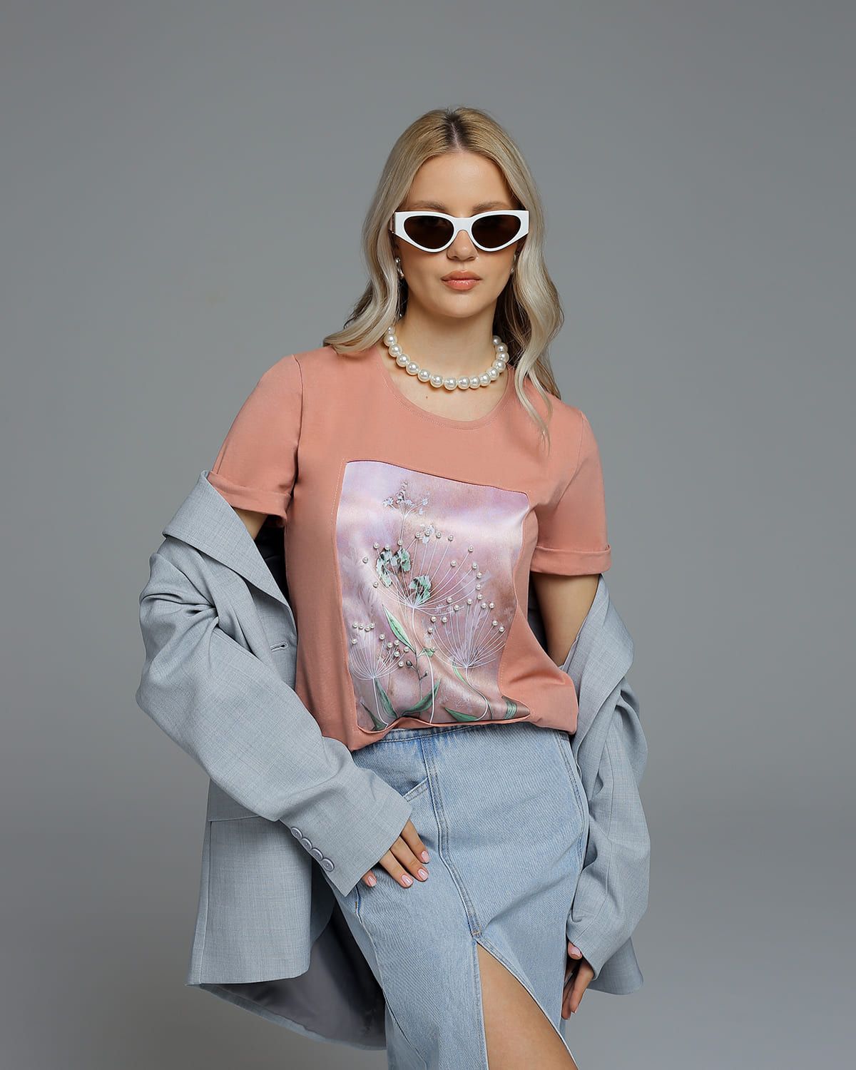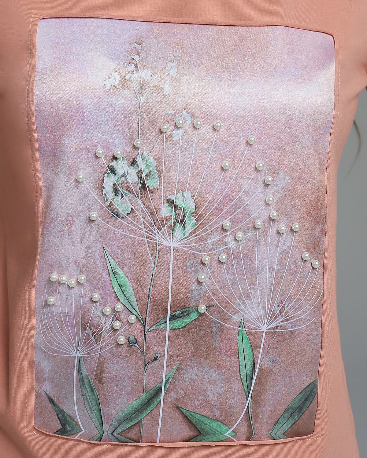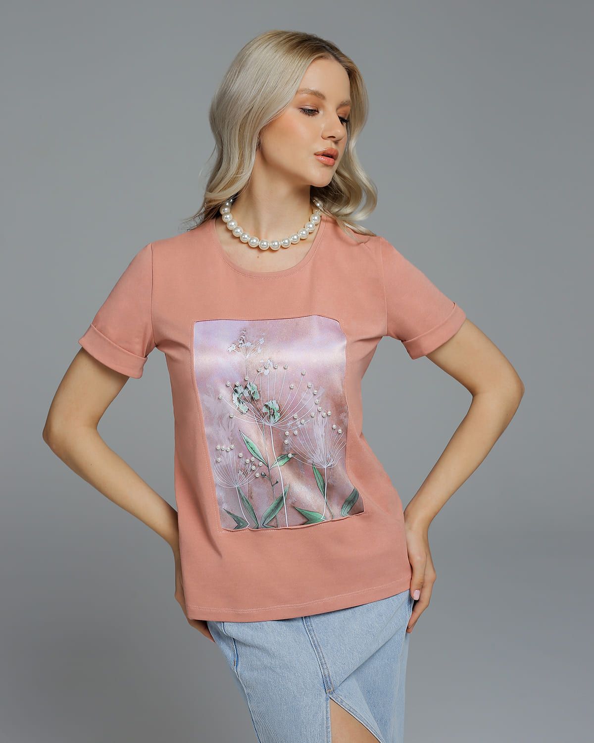 Футболка с шёлковой вставкой и бусинами FSK126