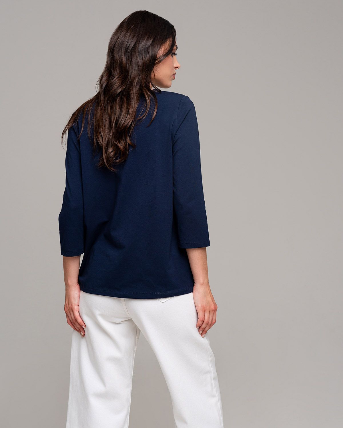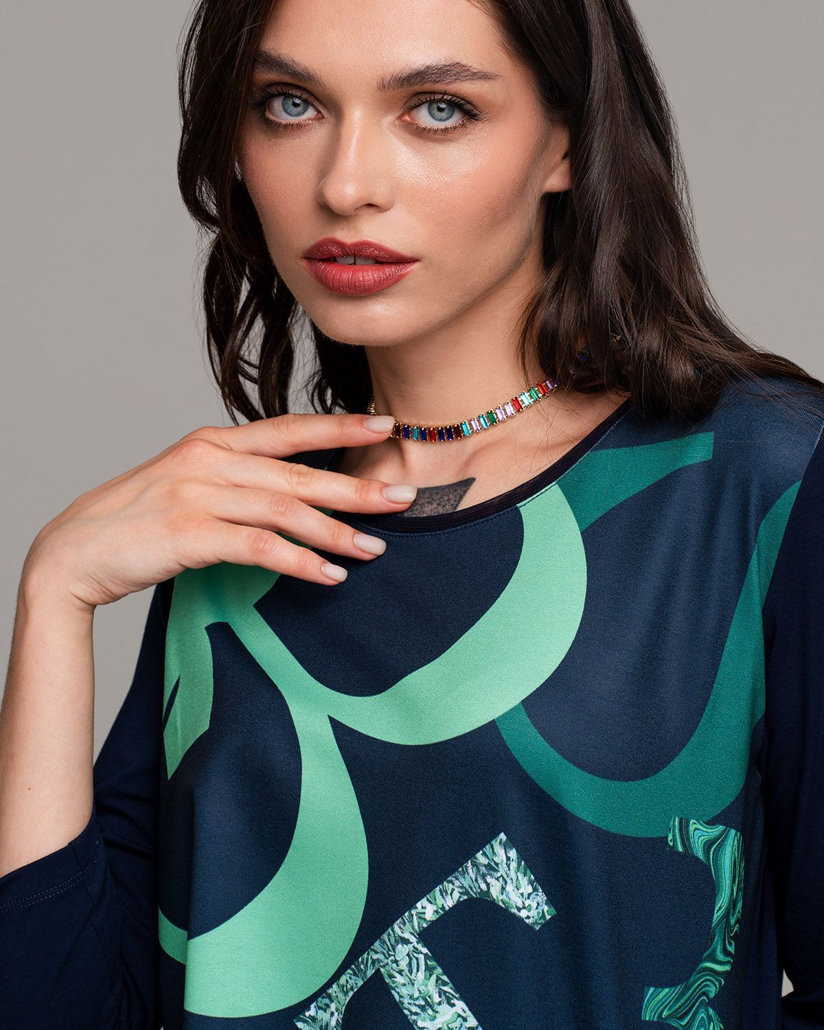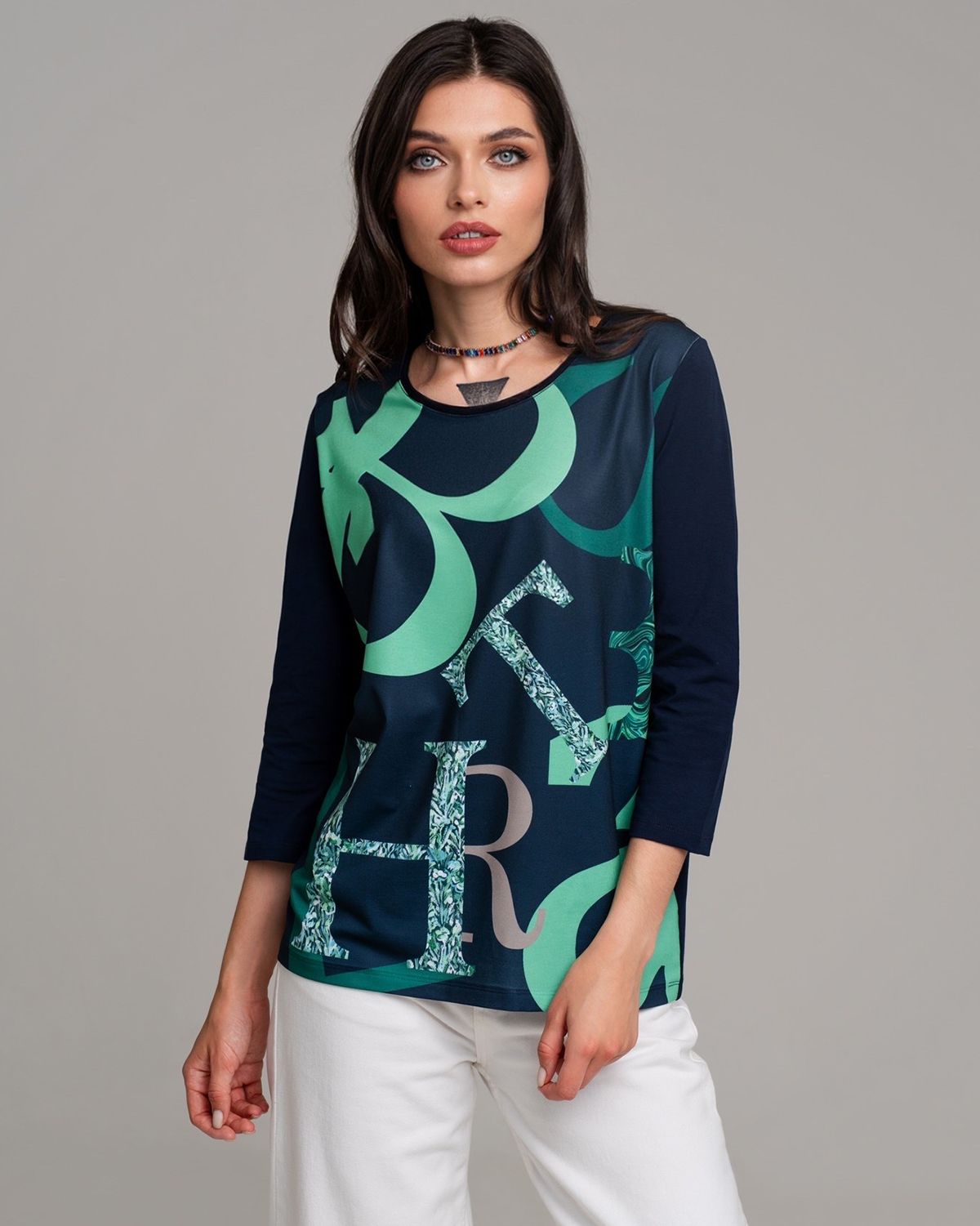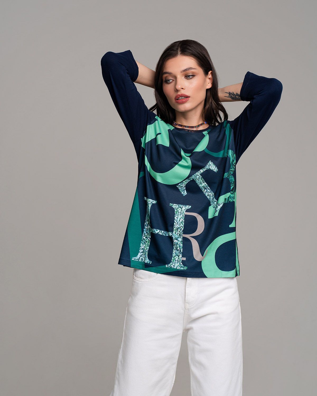 Покрой лонгслива прямой, свободный. Благодаря этому вещь подойдет даже женщинам с пышными формами, а также будущим мамам и кормящим. Рукав три четверти придает одежде в стиле casual непринужденный вид. Вырез горловины круглый. Передняя часть изделия декорирована авторским принтом.