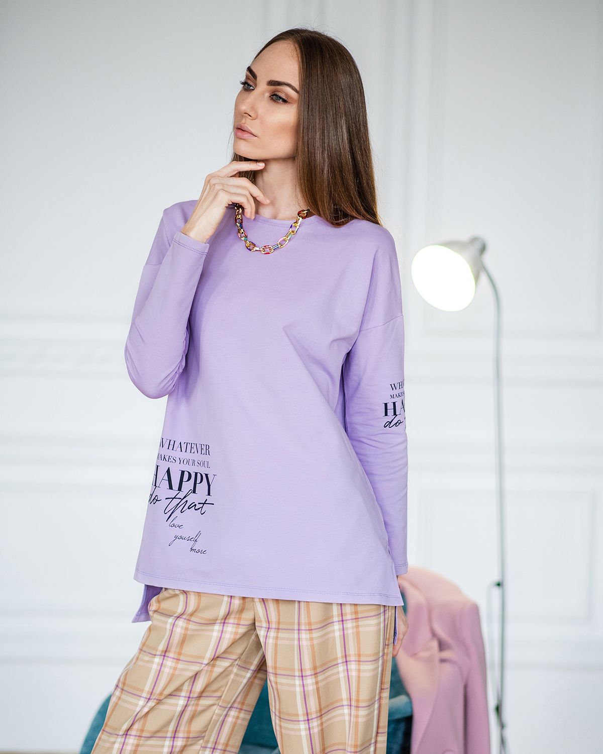 Лонгслив женский из хлопка - для тех, кто ищет нескучную базу с характером. Добавление стильных деталей в минималистичное изделие насыщает его индивидуальностью. Свободная посадка, надписи внизу и на рукаве, универсальная спущенная линия плеча, ассиметричный низ - спинка длиннее, небольшие разрезы по бокам - это как раз те нюансы, которые делают лонгслив с рукавами изделием со вкусом.