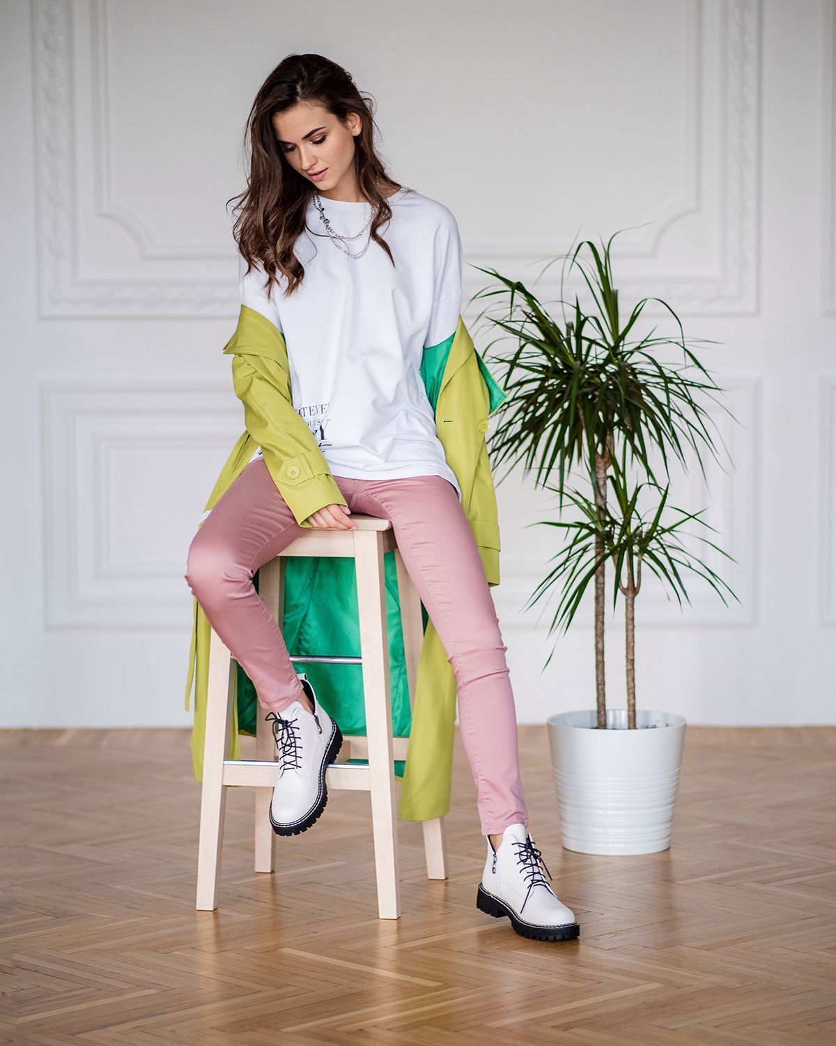 Выбирая подходящее изделие, ориентируйтесь на таблицу с параметрами в карусели. Если хотите создать более расслабленный образ, берите на размер или два больше. На модели женская кофта 46 размера.