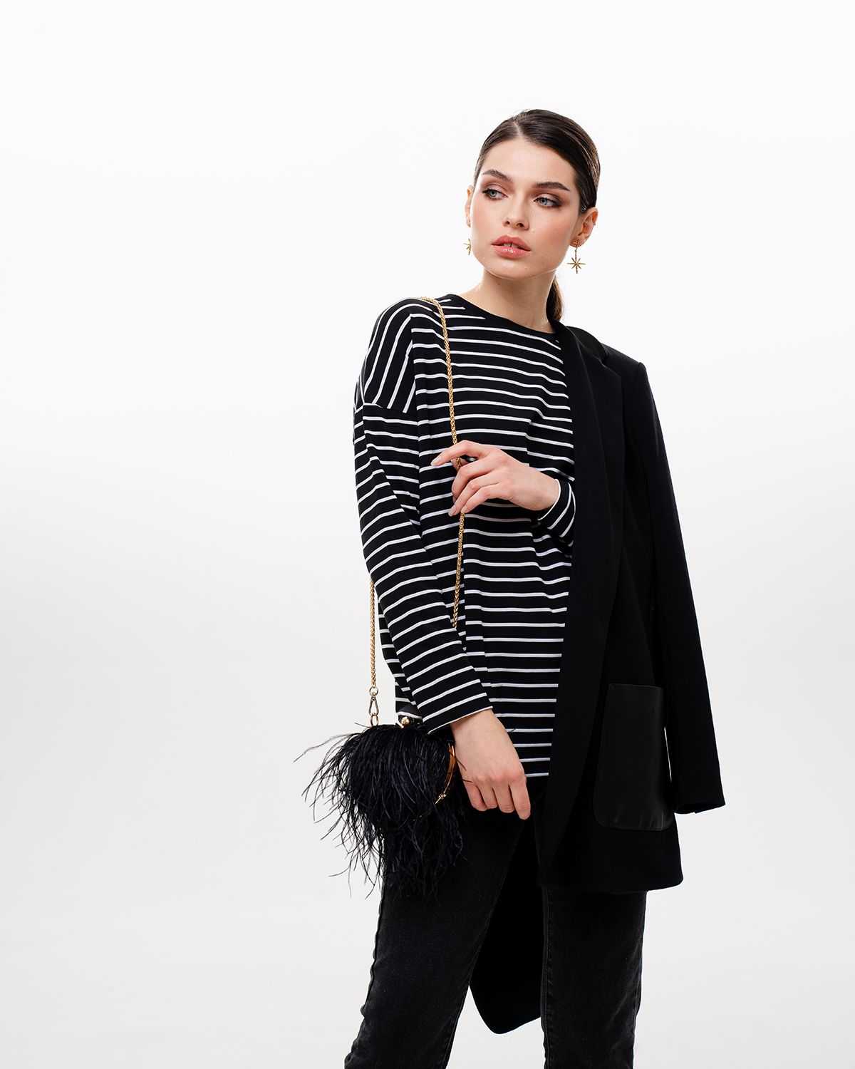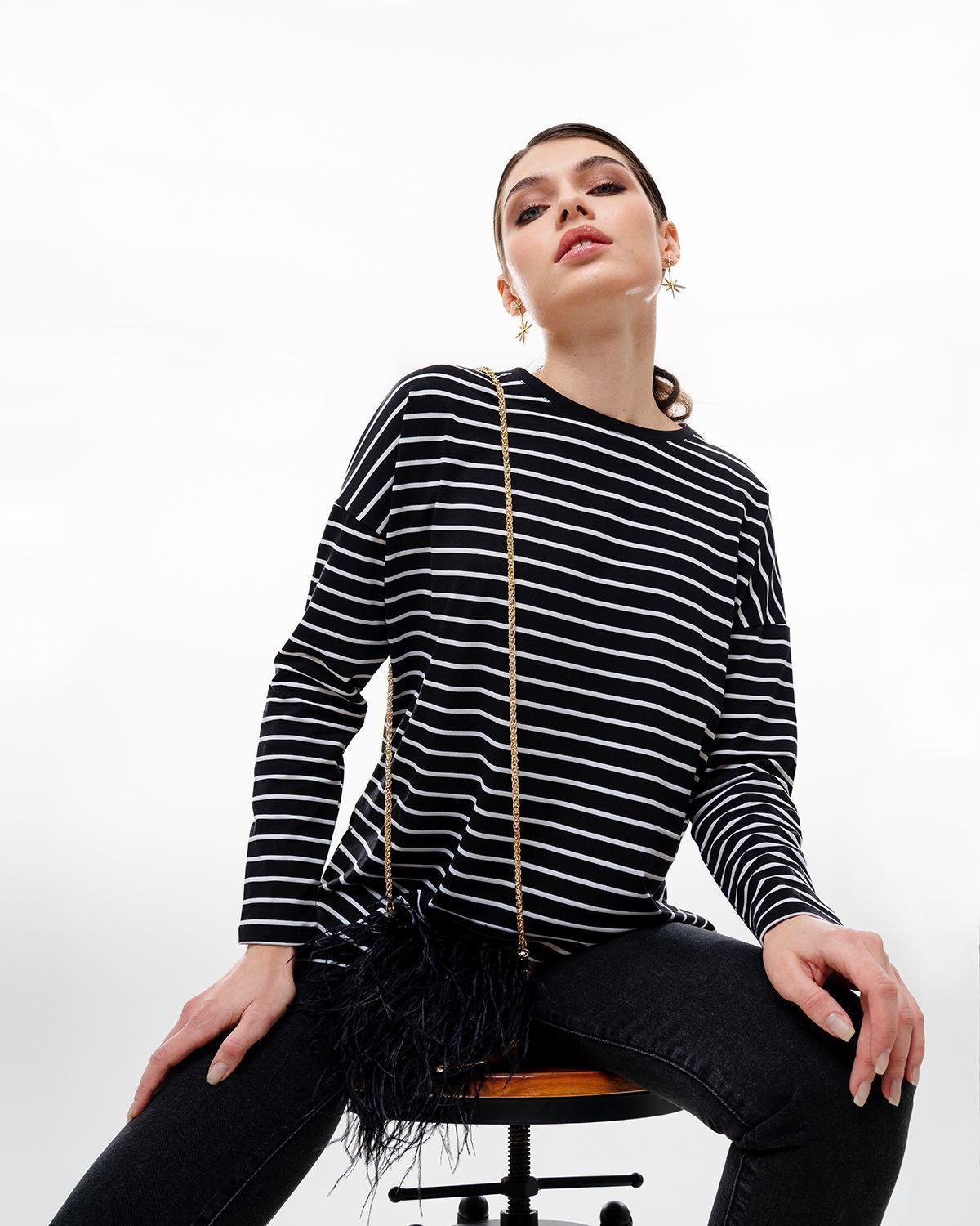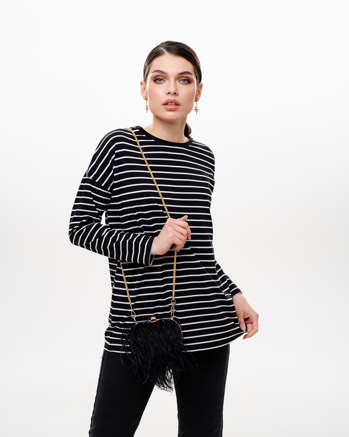 Базовый лонгслив в полоску — легкая модель для создания расслабленных спокойных образов. Сделан он из приятной для тела хлопковой кулирки. Это ткань, которая дышит, гипоаллергенна и не вызывает раздражений. Мягкая и эластичная кулирка хорошо переносит стирки и служит долго. Поэтому можете быть уверены, что изделие с вами на несколько сезонов. Поставщиком ткани для нас является Турция.