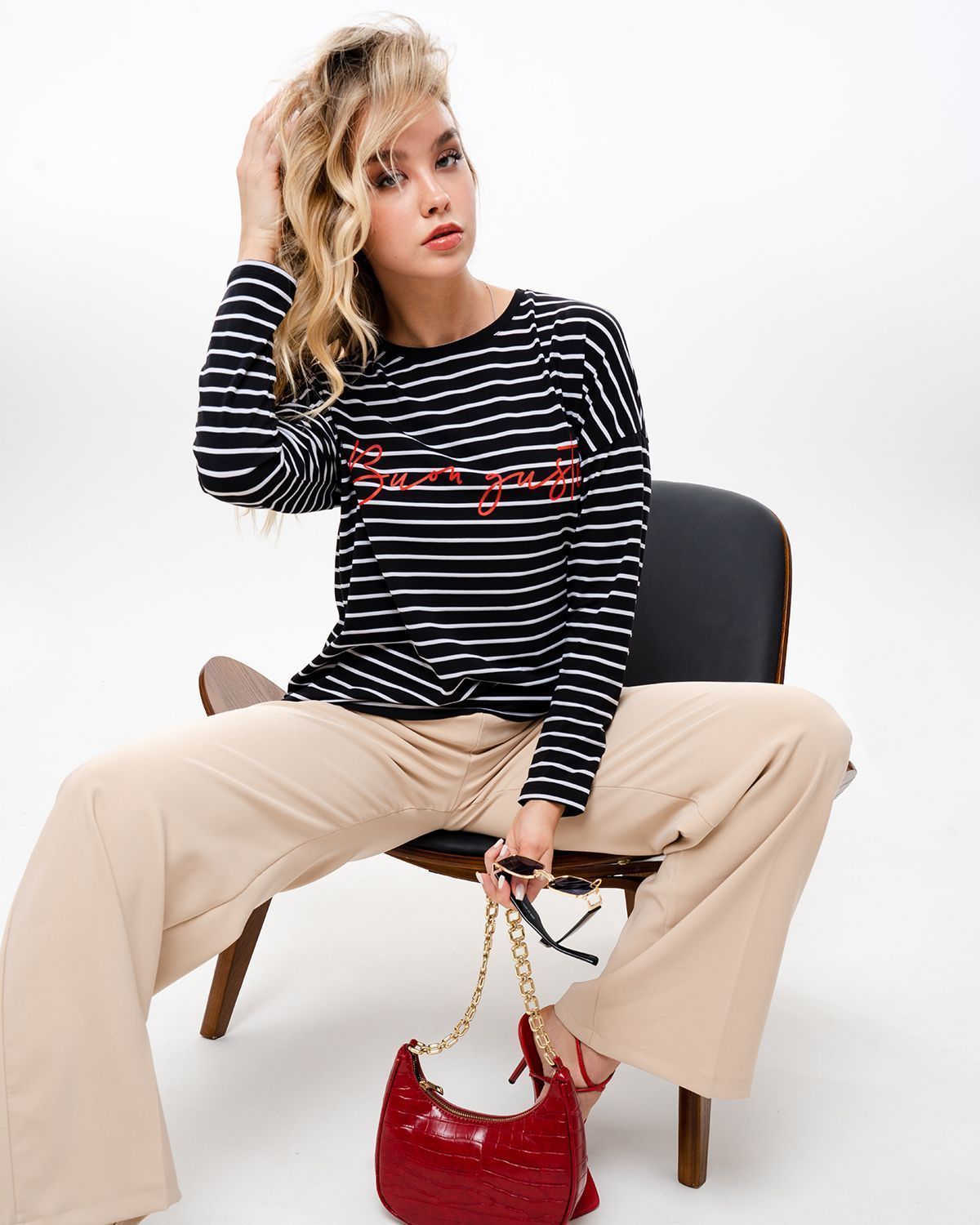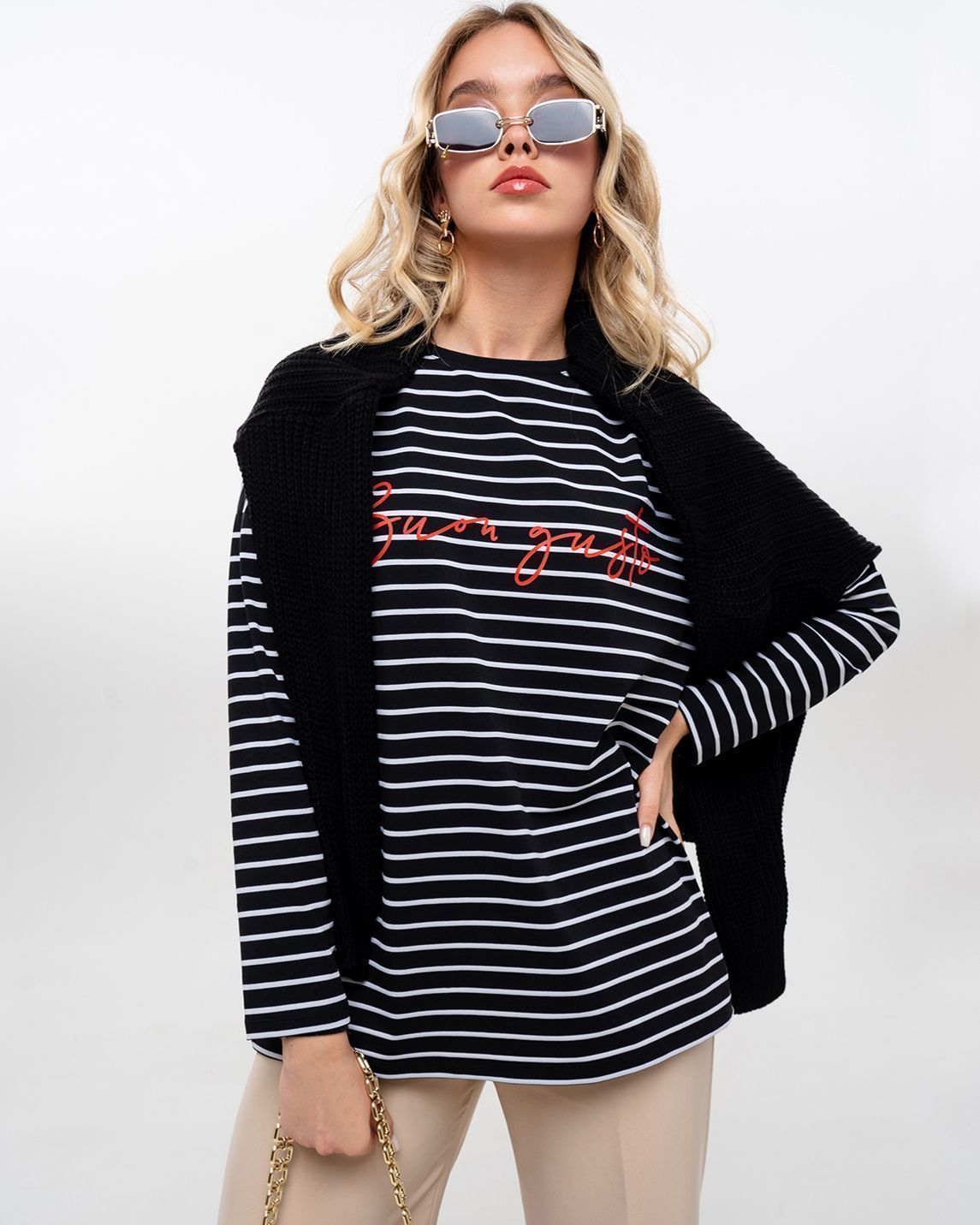 Базовый лонгслив в полоску — легкая модель для создания расслабленных спокойных образов. Сделан он из приятной для тела хлопковой кулирки. Это ткань, которая дышит, гипоаллергенна и не вызывает раздражений. Мягкая и эластичная кулирка хорошо переносит стирки и служит долго. Поэтому можете быть уверены, что изделие с вами на несколько сезонов. Поставщиком ткани для нас является Турция.