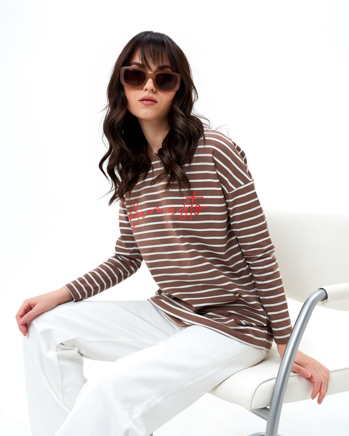 Базовый лонгслив в полоску — легкая модель для создания расслабленных спокойных образов. Сделан он из приятной для тела хлопковой кулирки. Это ткань, которая дышит, гипоаллергенна и не вызывает раздражений. Мягкая и эластичная кулирка хорошо переносит стирки и служит долго. Поэтому можете быть уверены, что изделие с вами на несколько сезонов. Поставщиком ткани для нас является Турция.