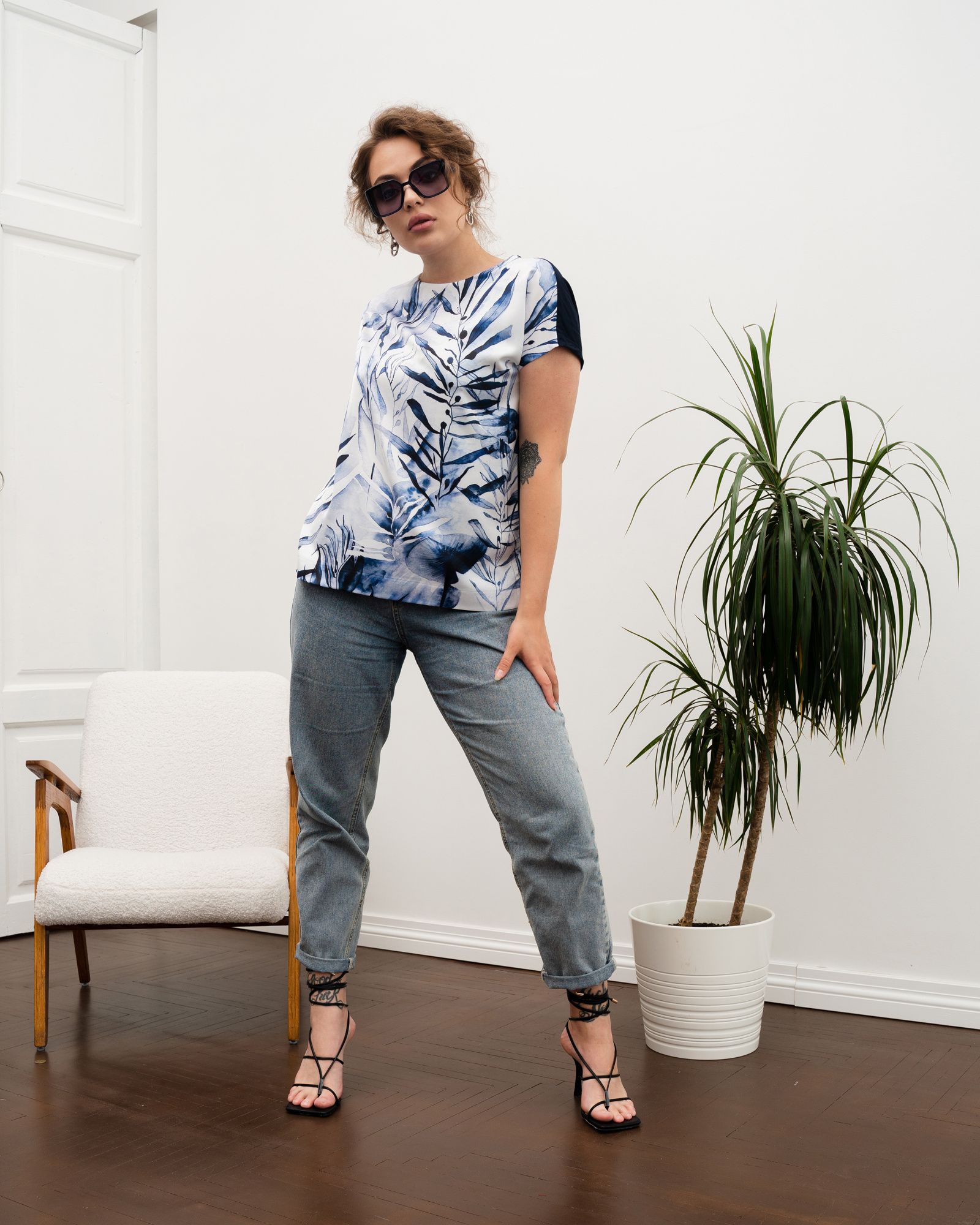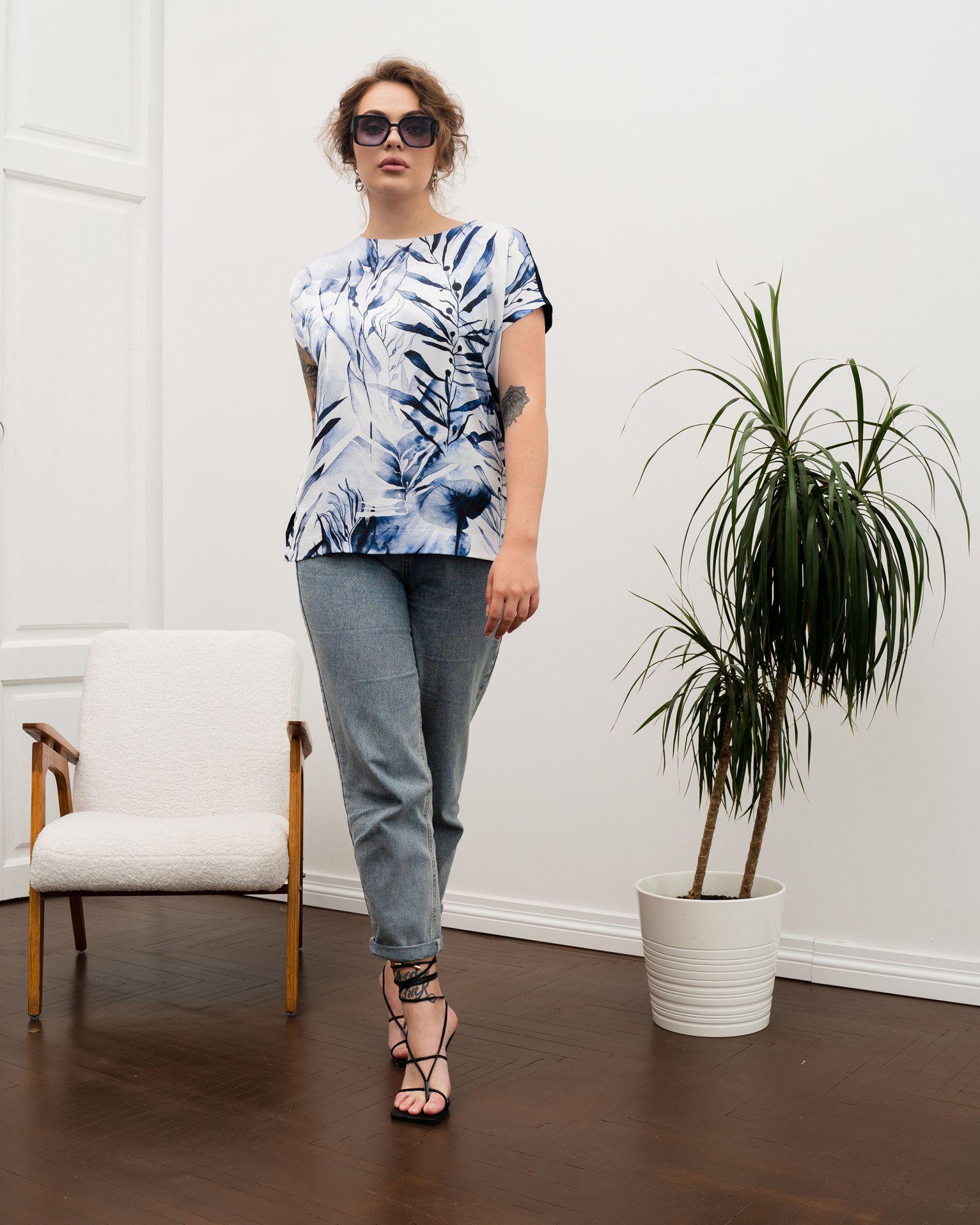 Спереди под принт используется шёлк «Армани». Это ткань, которая по внешнему виду похожа на натуральный шёлк. Но Армани намного проще в уходе, более упругая и плотная по структуре, а также хорошо удерживает краски рисунка в волокнах. Поэтому наши принты износостойкие, не крошатся, не линяют и остаются яркими на протяжении нескольких сезонов.