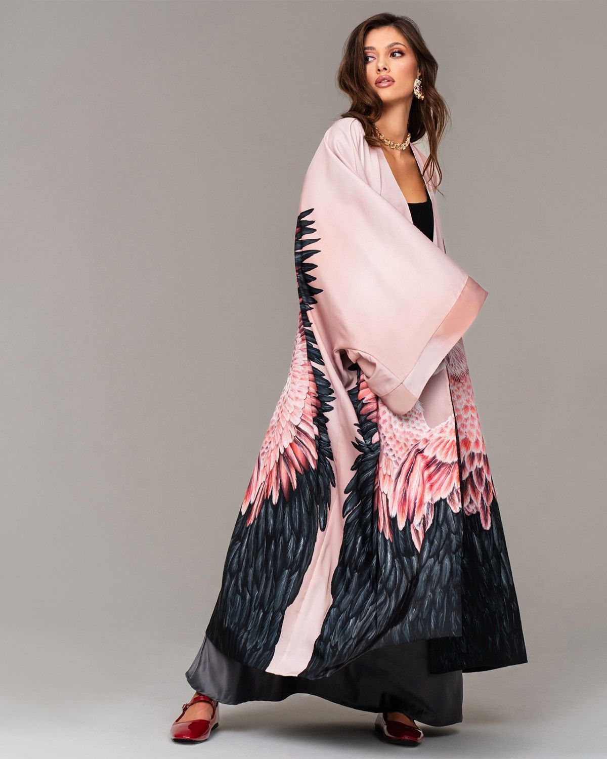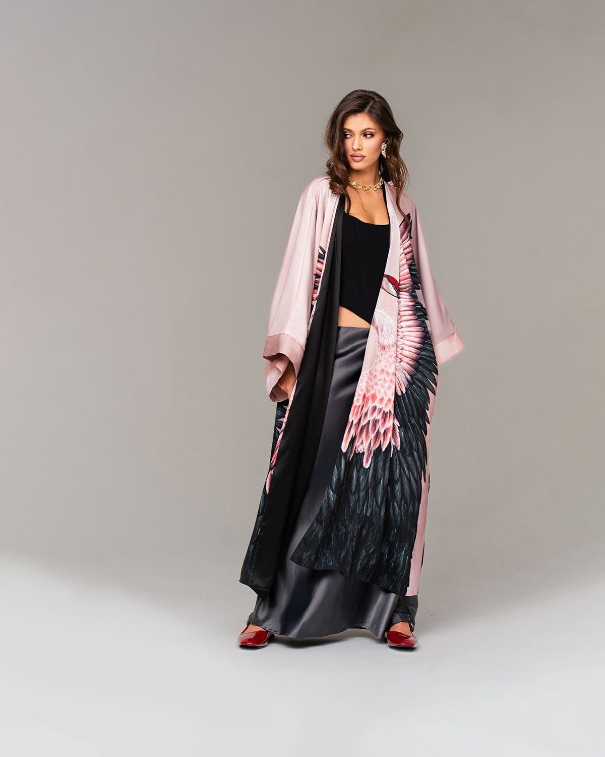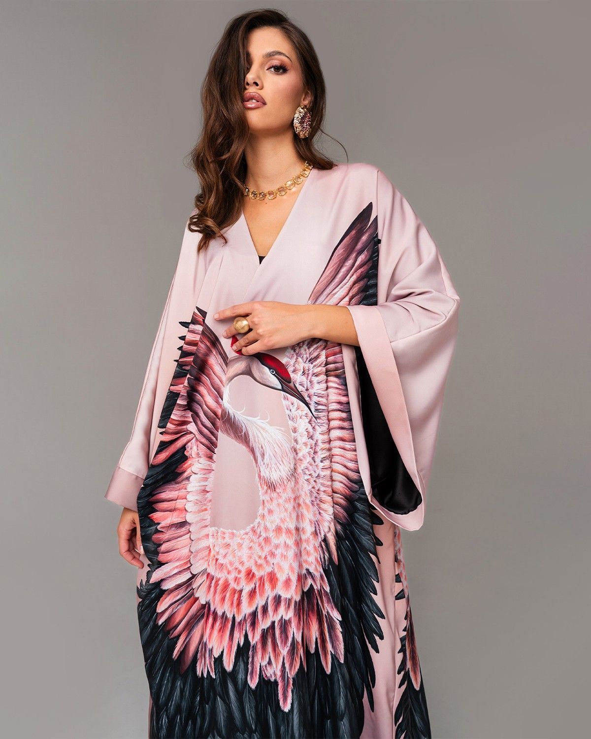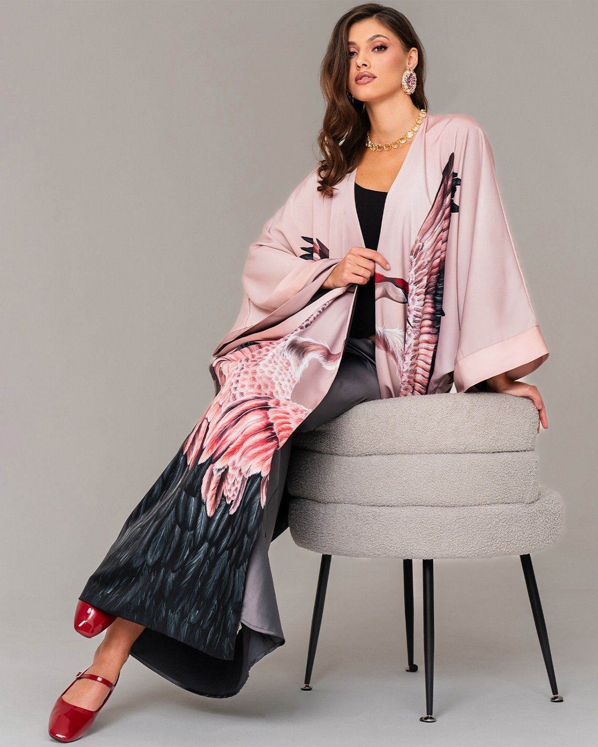Шёлковое кимоно - это воплощение роскоши и изысканности, эффектное и стильное дополнение к Вашему образу. Выполненное из гладкого и приятного на ощупь японского шёлка, изделие приковывает взгляды своей яркостью и оригинальным дизайном. Кимоно украшено художественным рисунком “Журавли”. Качественная печать устойчива к стиркам и сохраняет яркость рисунка даже после многократного использования.
