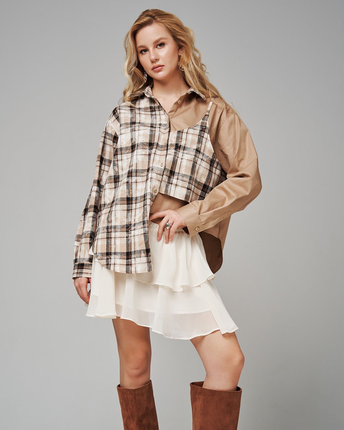 Женская рубашка в клеточку от SAHAR Art lab – это стильное и комфортное решение для создания модных образов. Эта рубашка варёнка, выполненная из 100% хлопка, отличается приятной гладкой фактурой и свободным кроем, что делает ее идеальным вариантом для повседневной носки. Асимметричный низ и декоративный топ добавляют модели оригинальности и индивидуальности. Рубашка с длинным рукавом и отложным воротником на пуговицах отлично подойдет для офиса, прогулок или встреч с друзьями.