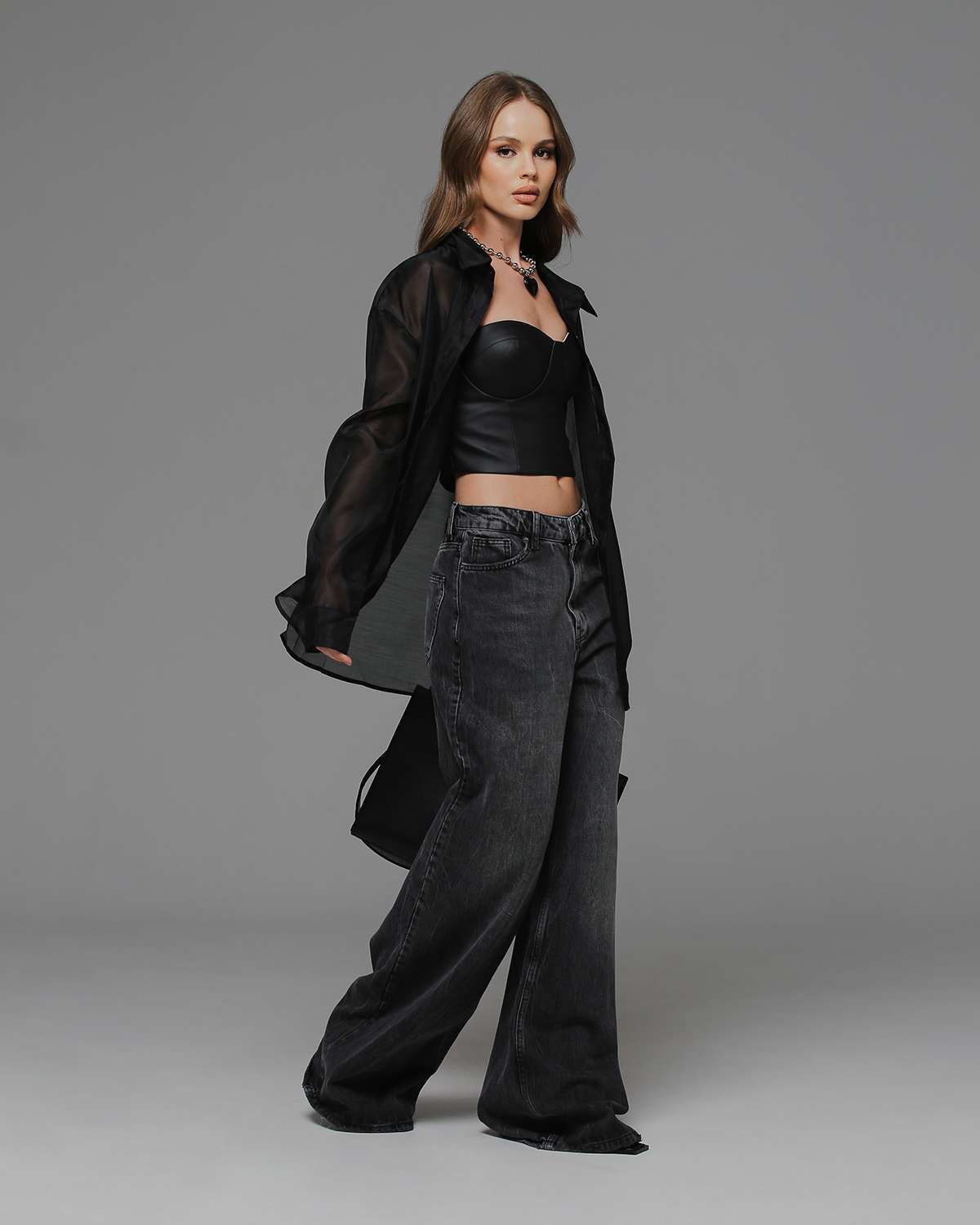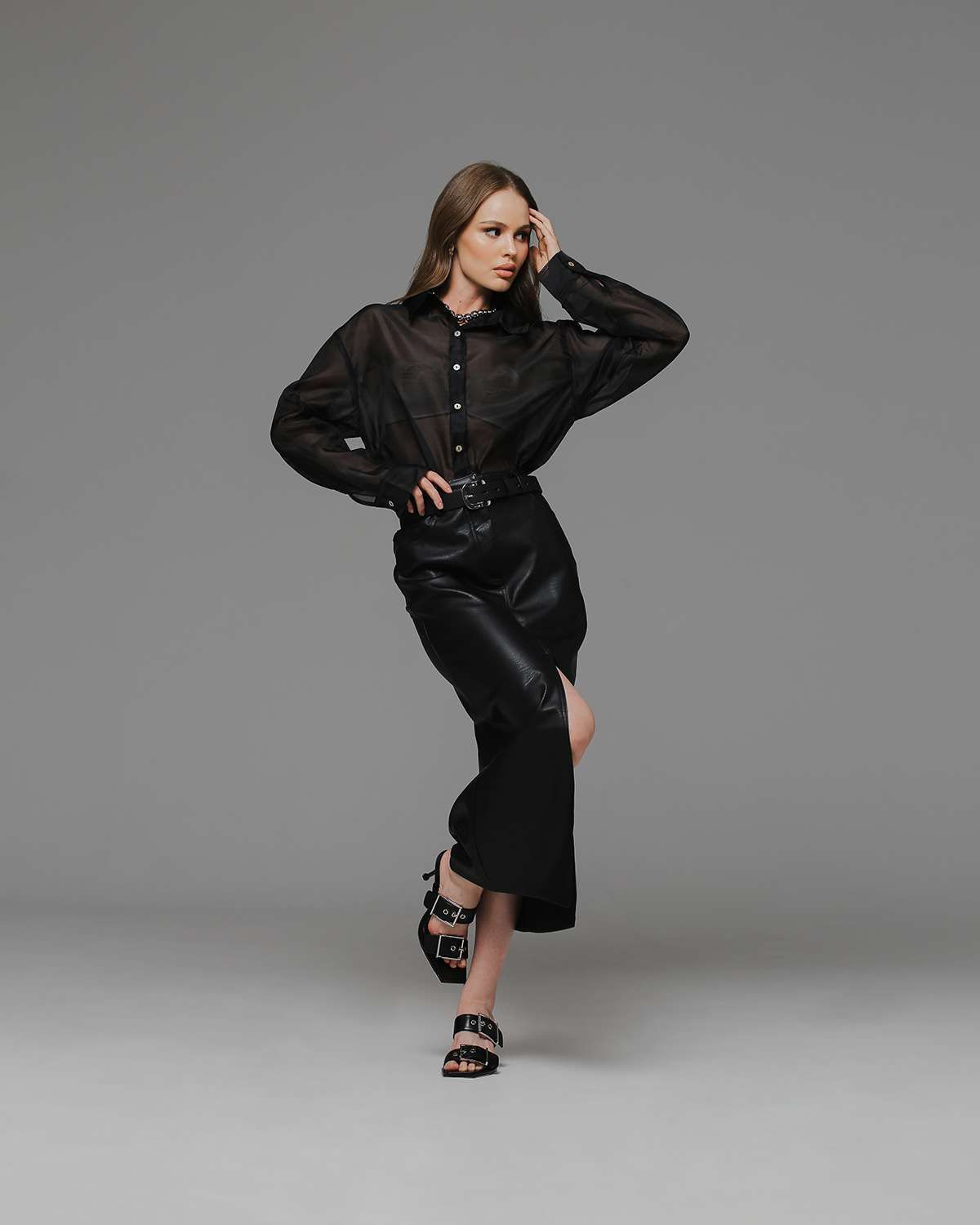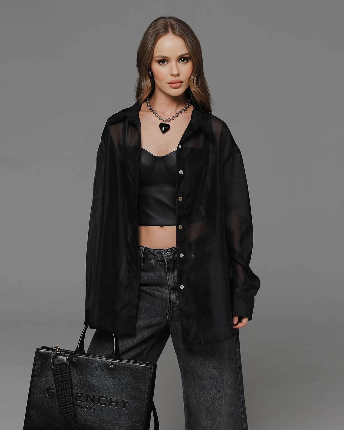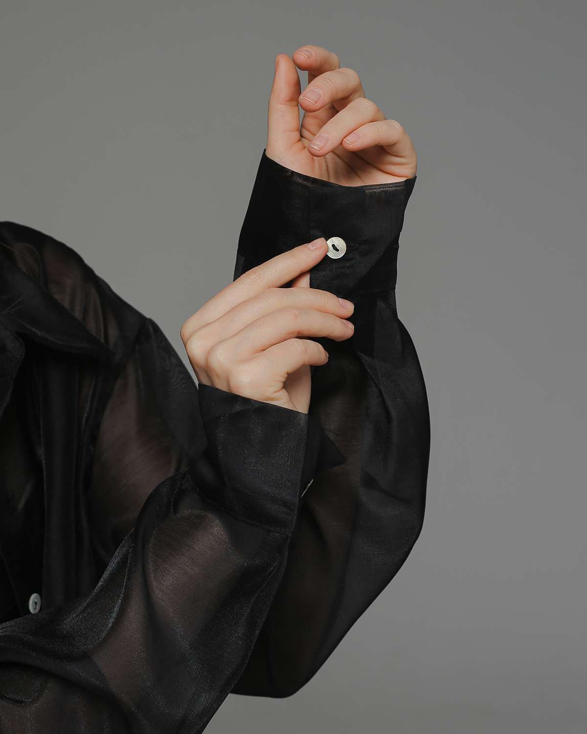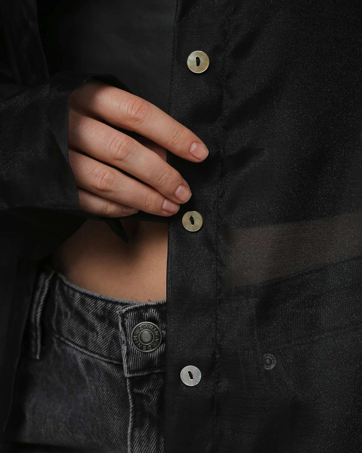 Элегантная и нежная рубашка из прозрачной органзы - тренд в этом сезоне. Отличается прямым свободным силуэтом, выполнена в классическом черном цвете. Идеальный верхний слой для образов с брюками, платьями-комбинациями и топами на бретелях.