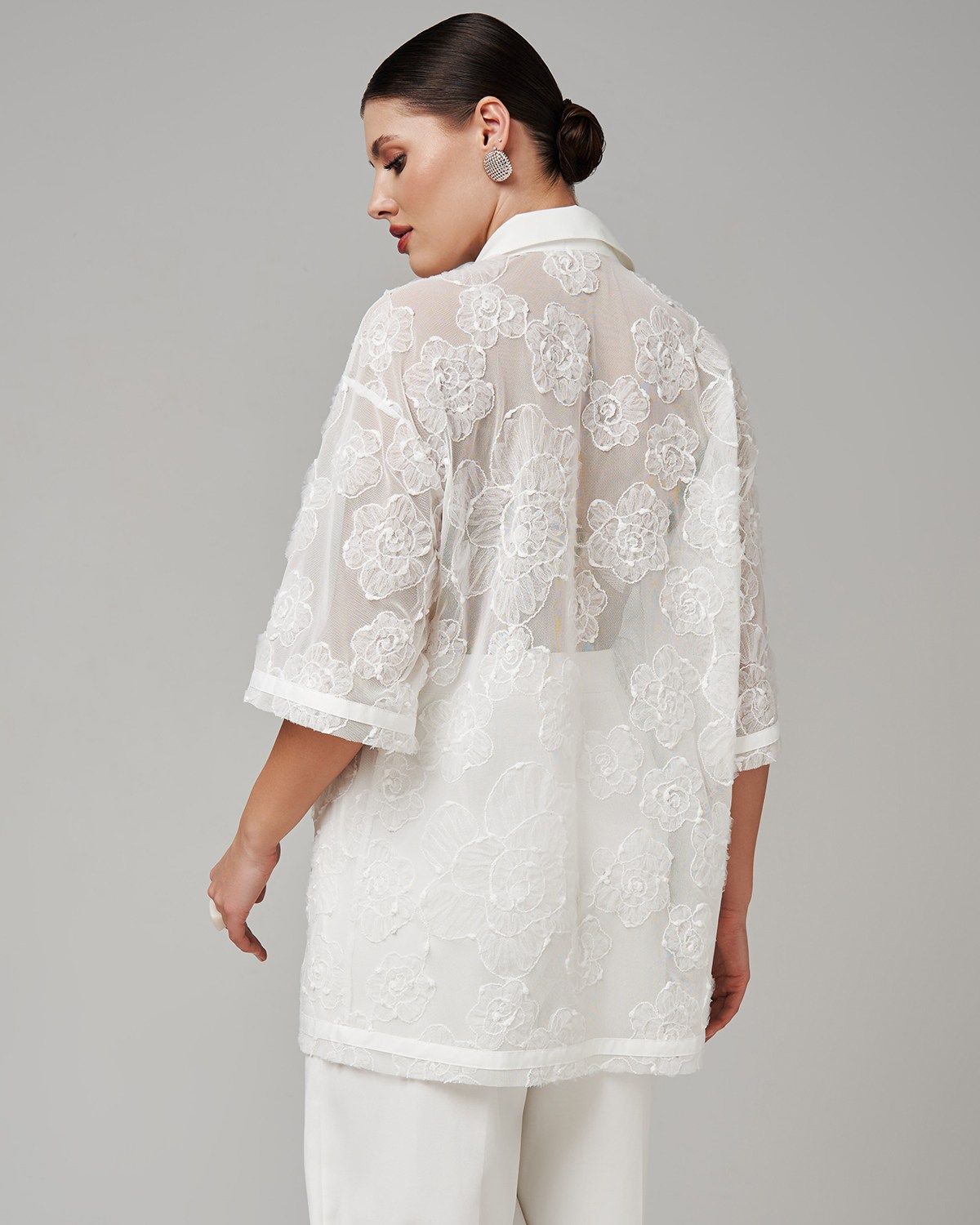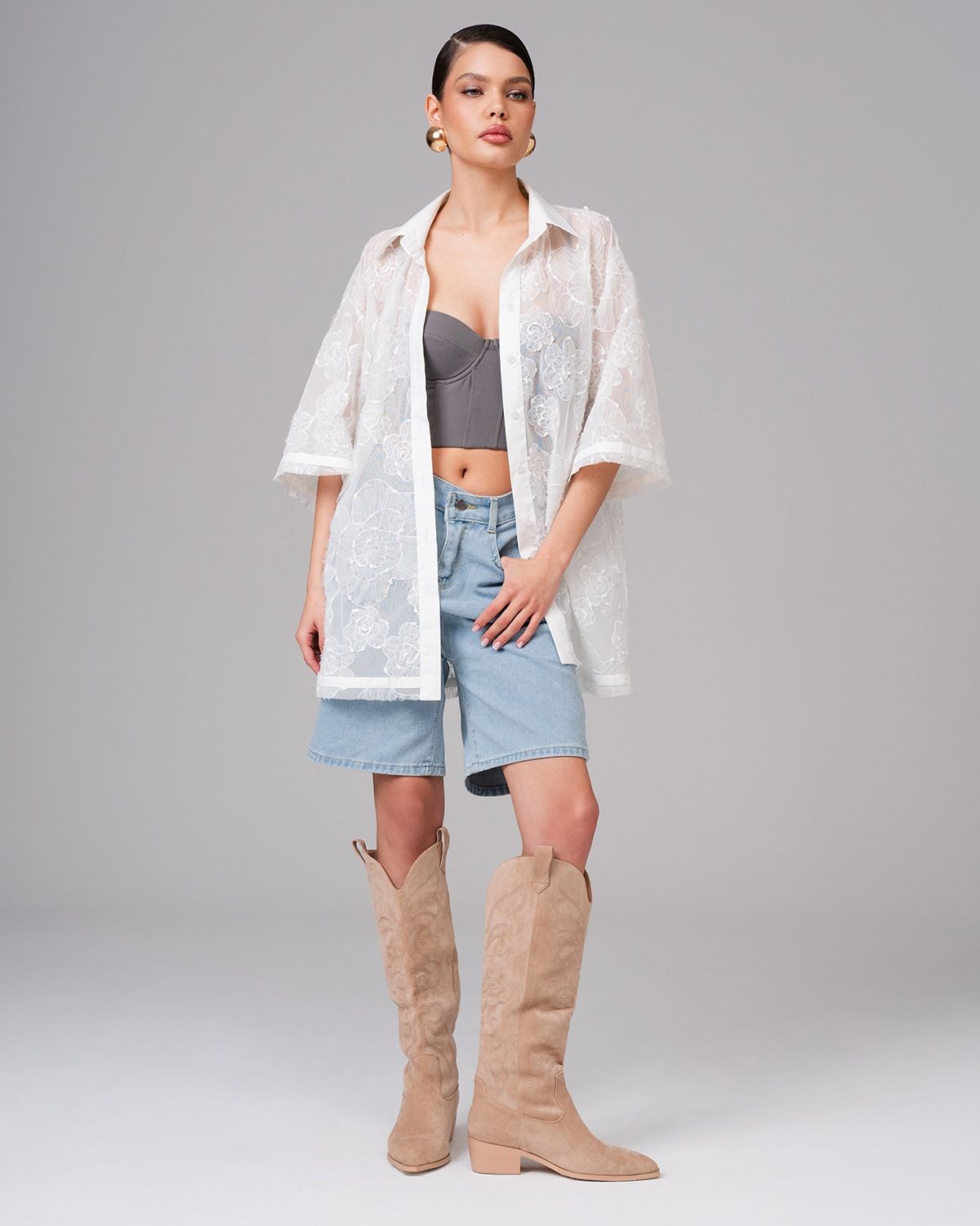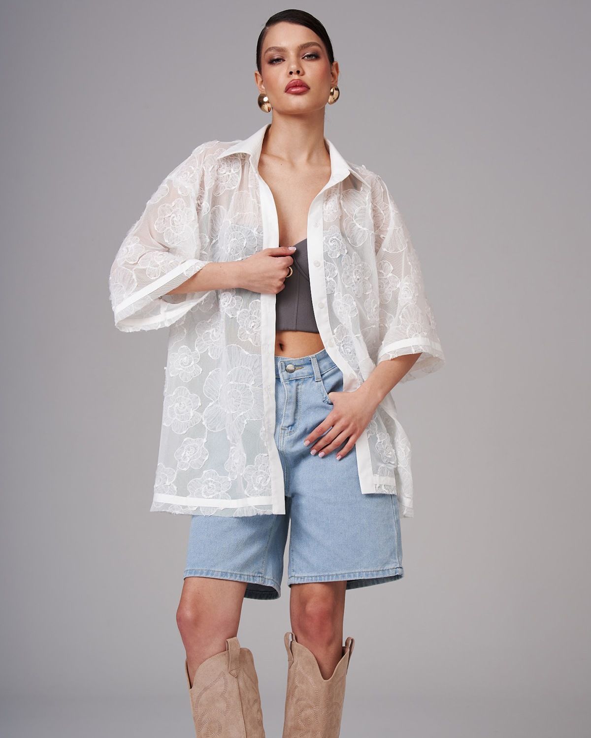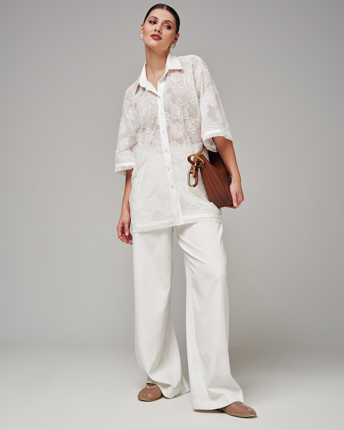 Представляем вам женственную блузку от SAHAR Art lab, которая станет настоящим украшением вашего гардероба! Эта прозрачная рубашка с короткими рукавами из легкой сетки с отложным воротником и спущенным рукавом создана для тех, кто ценит комфорт и стиль. Прозрачная ткань с нежными розочками добавит вашему образу романтичности и воздушности. Свободный крой оверсайз позволит вам чувствовать себя свободно и уверенно в любой ситуации. Рубашка на пуговицах с пуговицами в цвет изделия станет идеальным вариантом как для офиса, так и для повседневных образов. Она прекрасно сочетается как с брюками, так и с юбками, создавая стильные многослойные ансамбли.