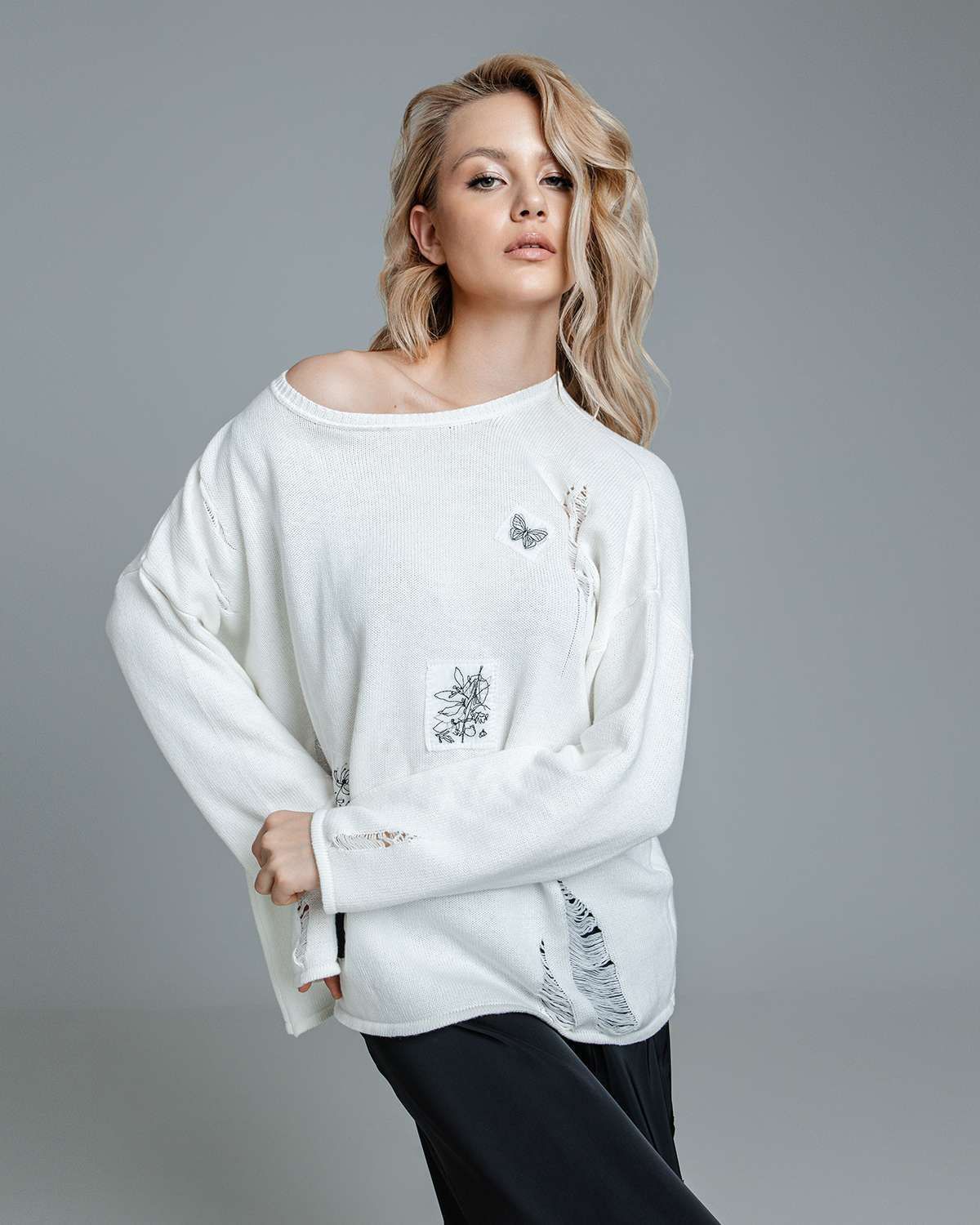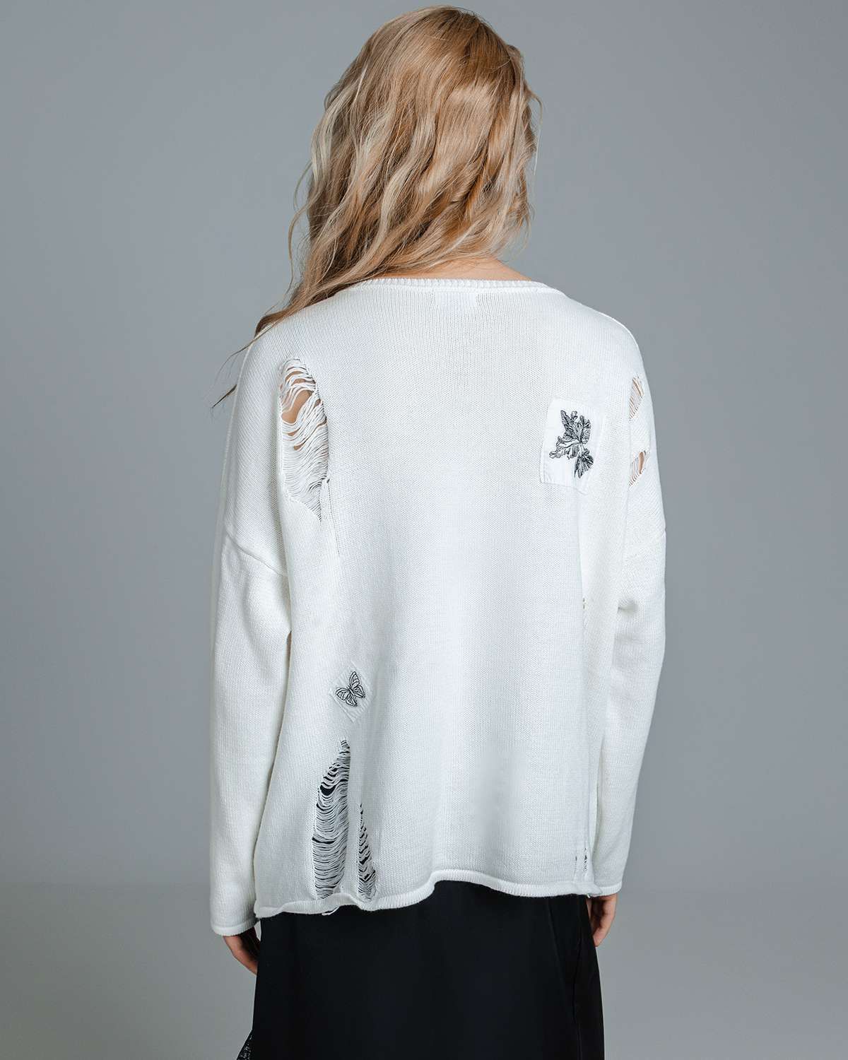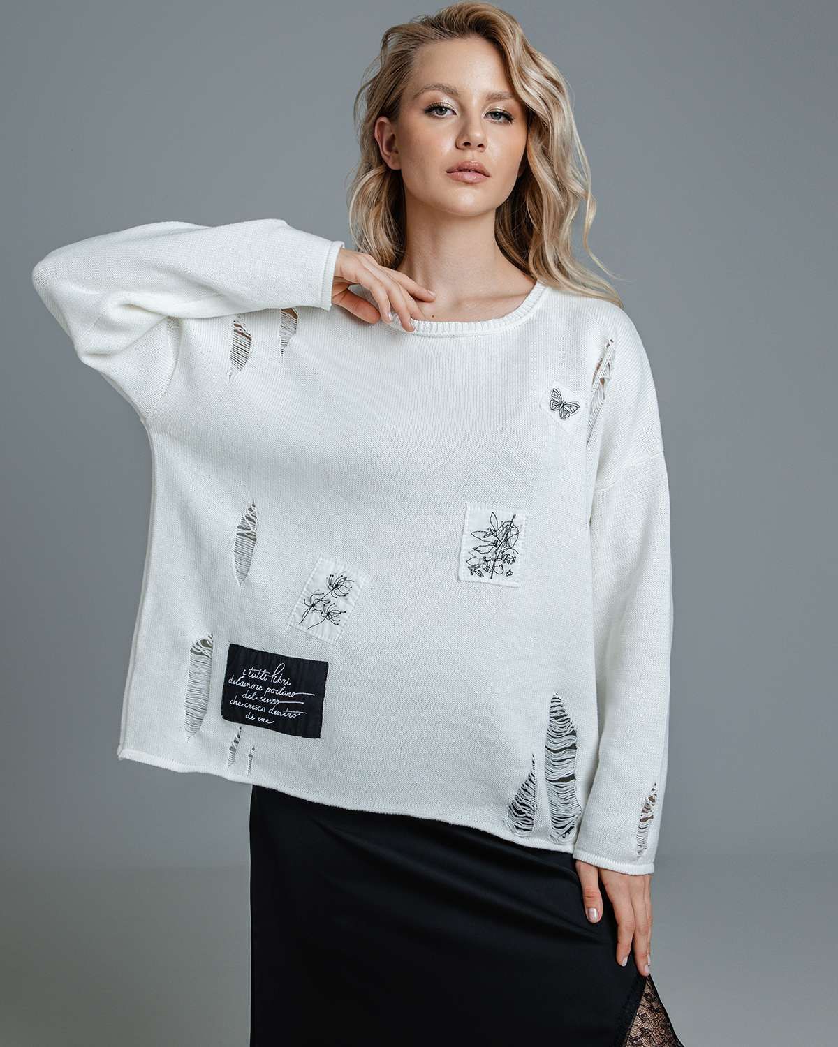 Наш дизайнерский свитер с декоративными распущенными петлями – это не просто одежда, а воплощение стиля. Женский джемпер, выполненный в технике плотной вязки, излучает тепло и комфорт, при этом обладает свободным кроем, что делает его идеальным для создания слоев и подчеркивания индивидуальности. Особенно впечатляют его абстрактные рисунки и уникальный жаккардовый узор разных фактур, которые придают изделию особый характер.