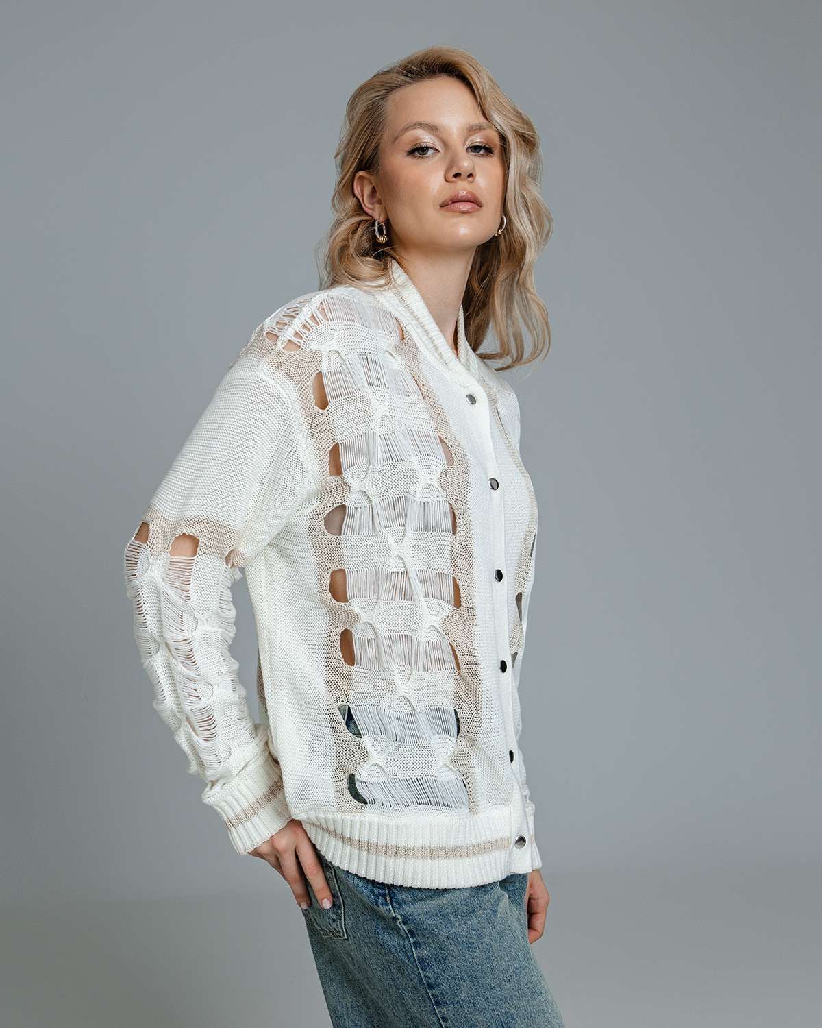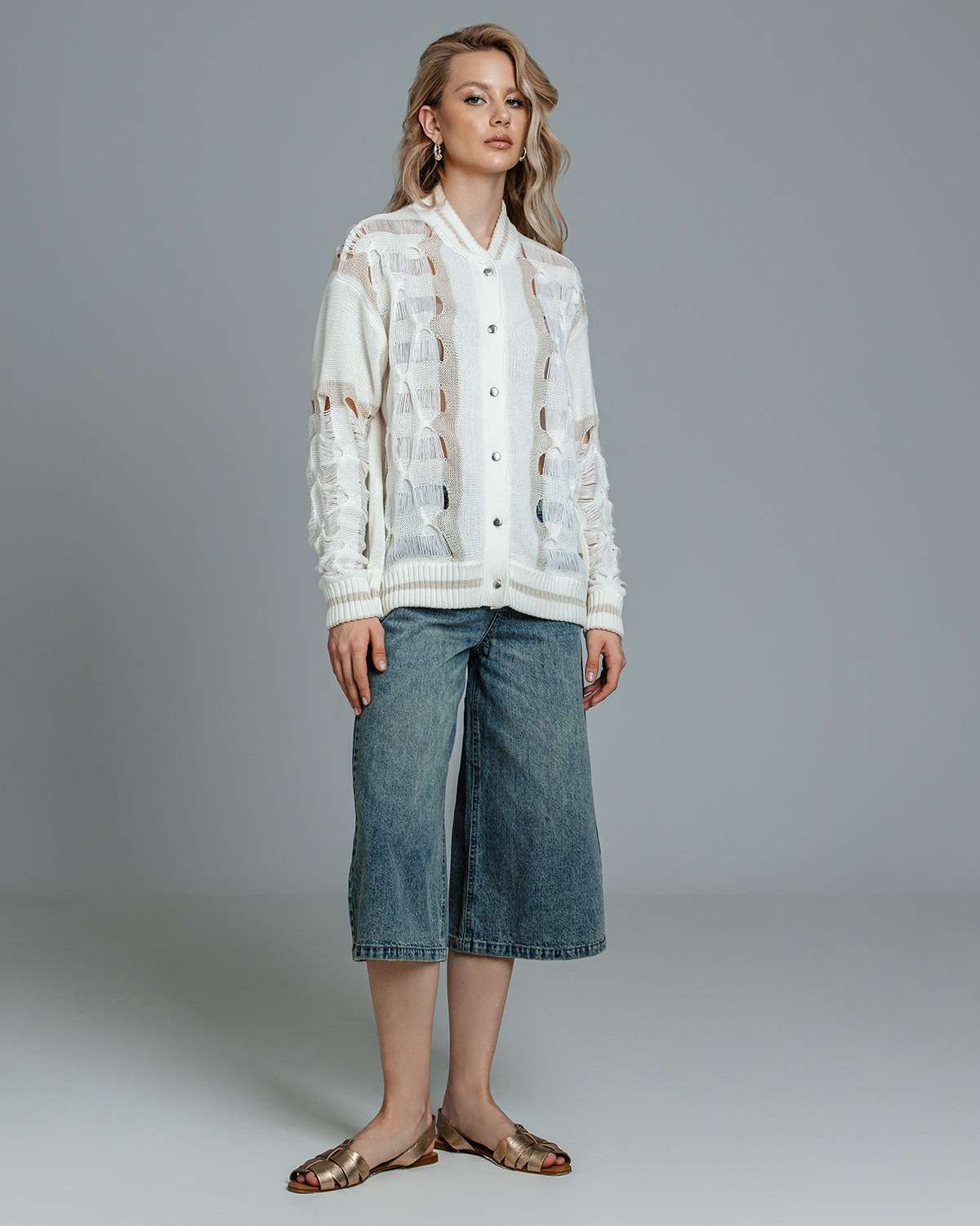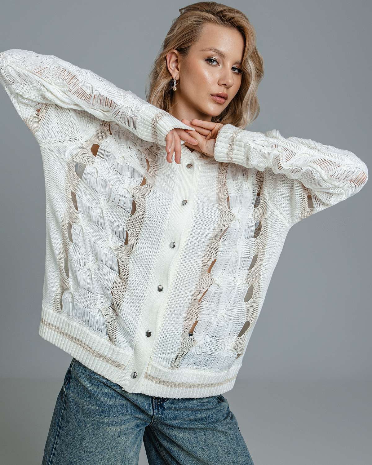 Кардиган вязаный с ажурным узором на кнопках KAR001