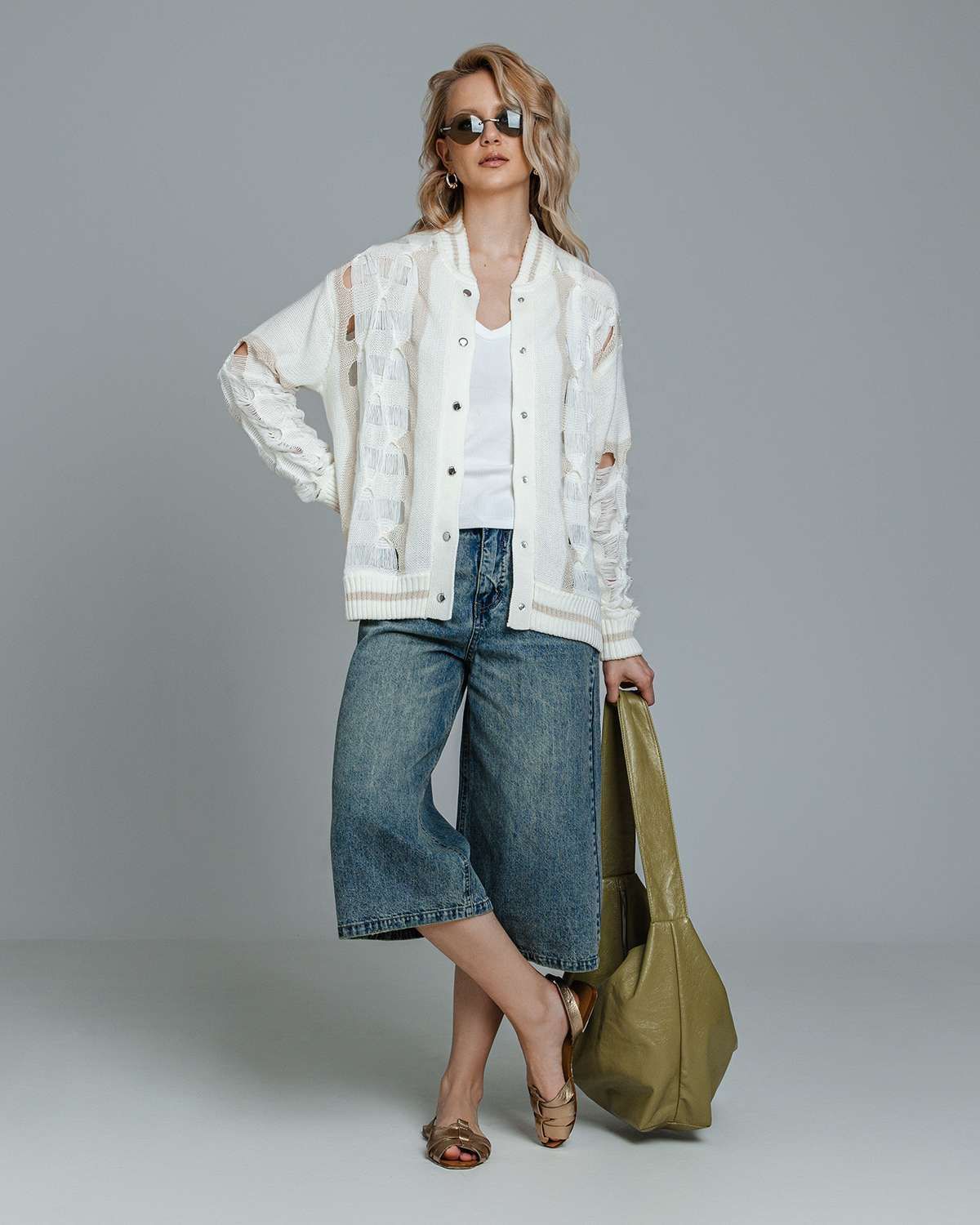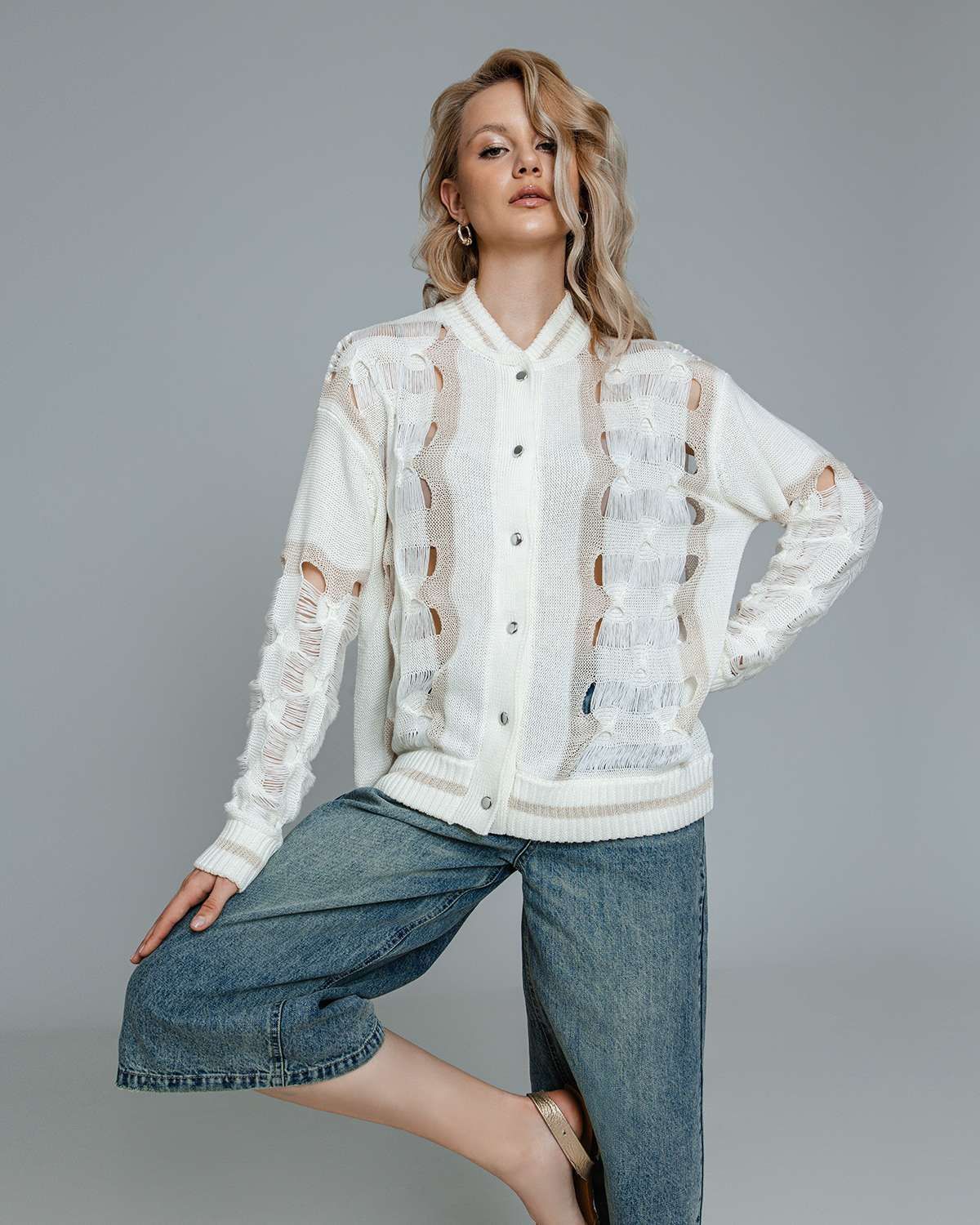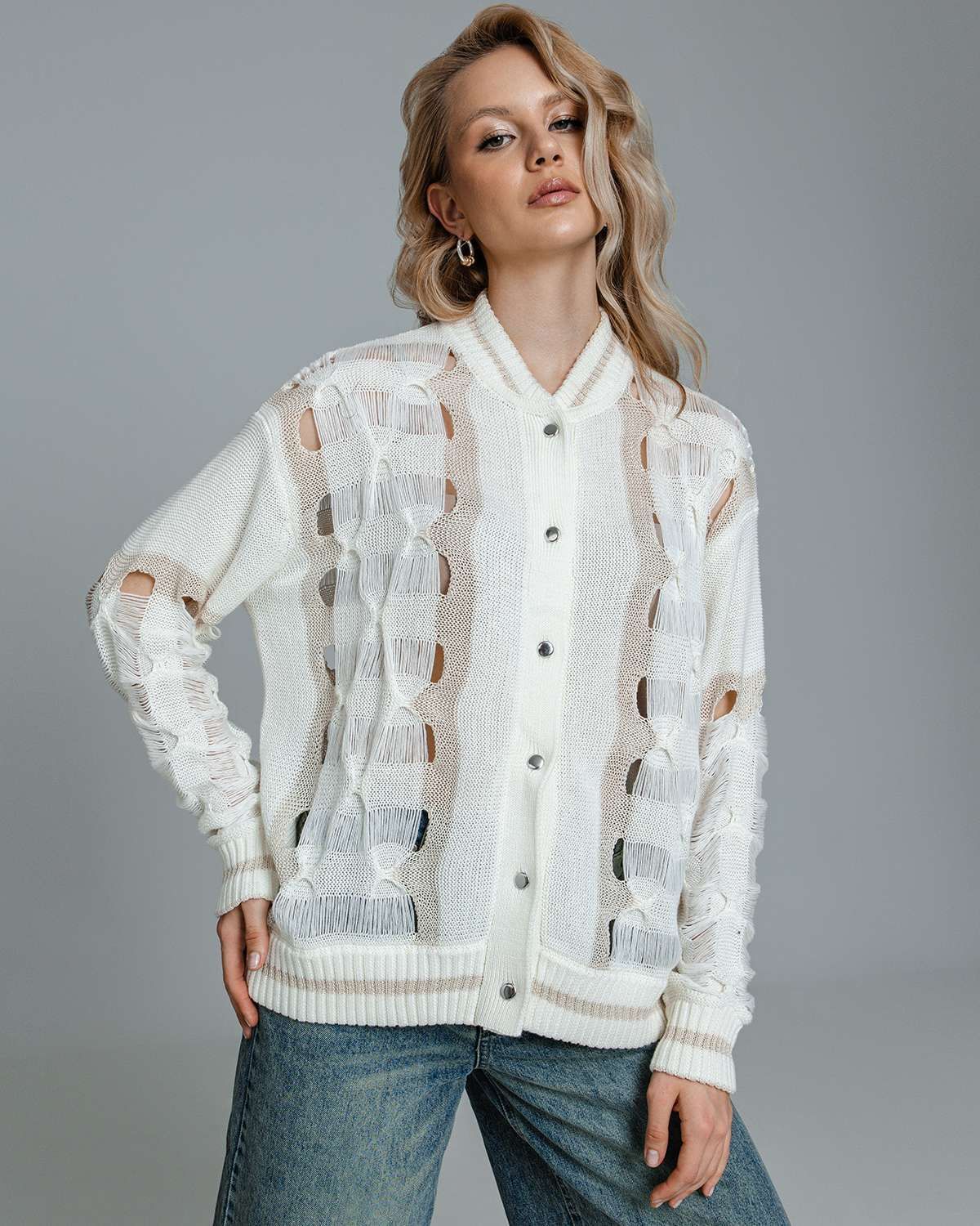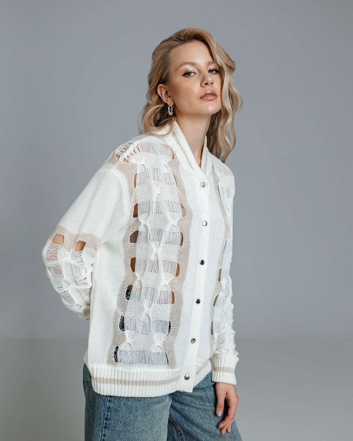 Кардиган вязаный с ажурным узором на кнопках KAR001