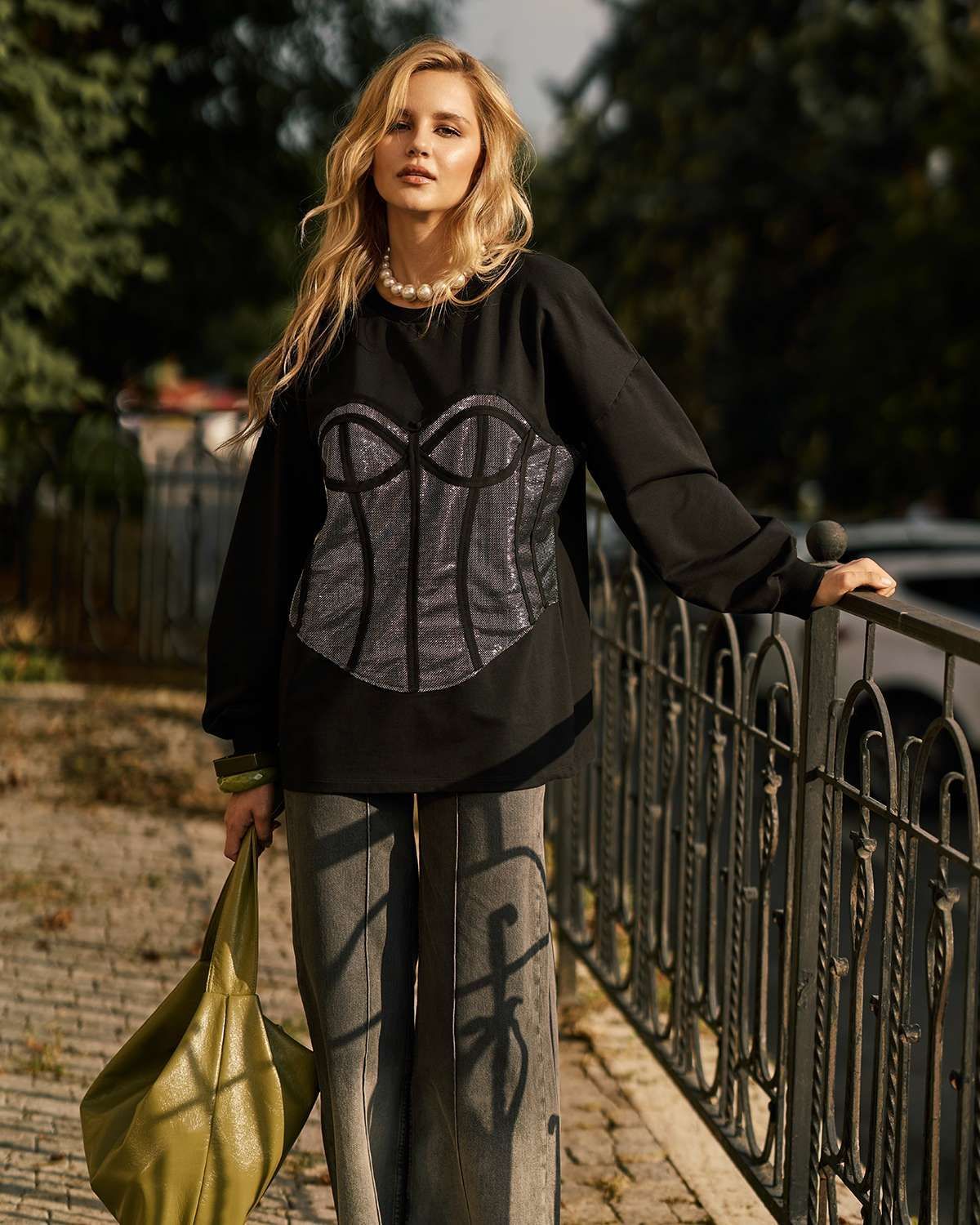 Свитшот с корсетом металлик SWK001
