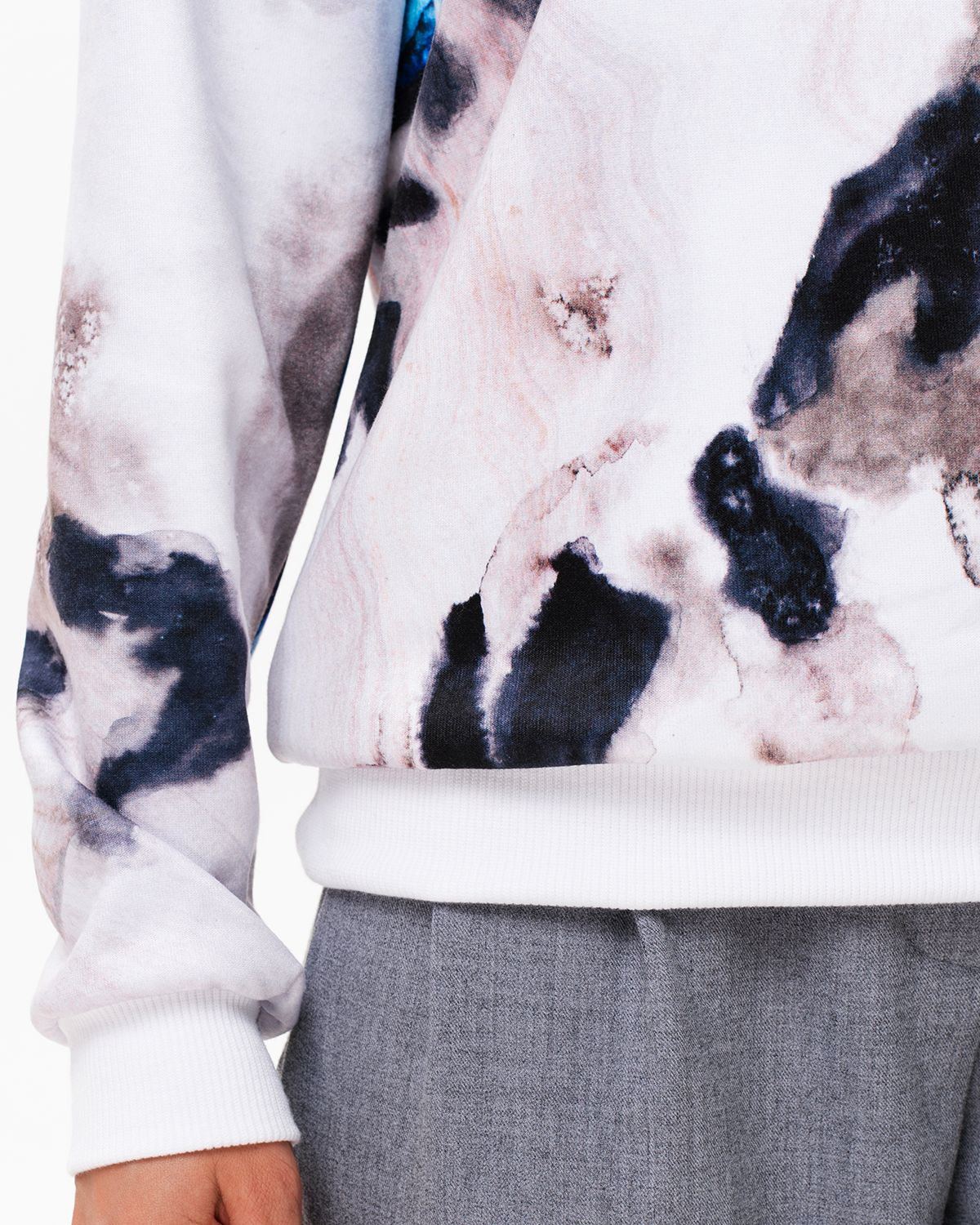 Манжеты и горловина свитшота однотонные, сделаны из кашкорсе - трикотажной ткани, которая отличается эластичностью и стойкостью к долгой носке и стиркам.