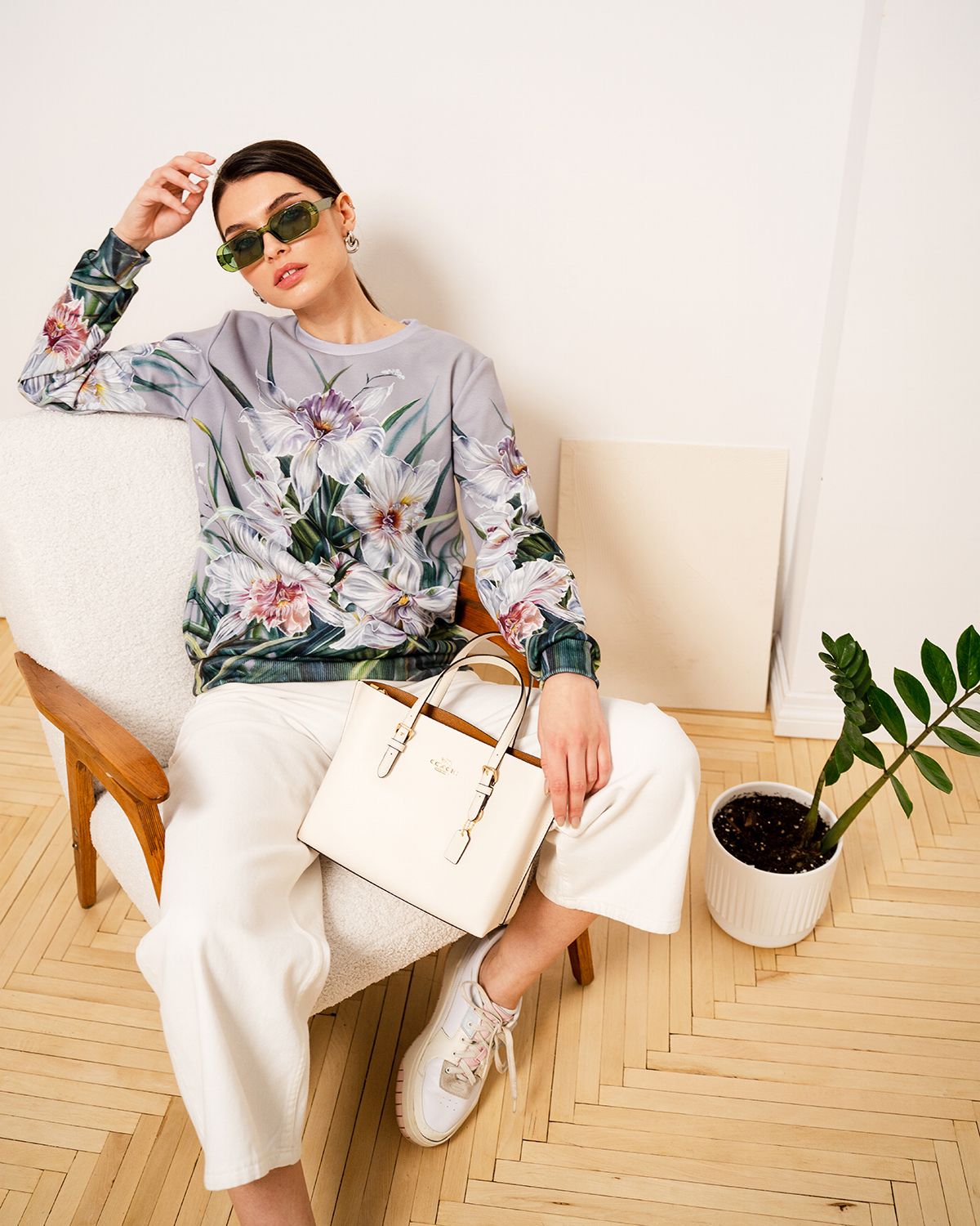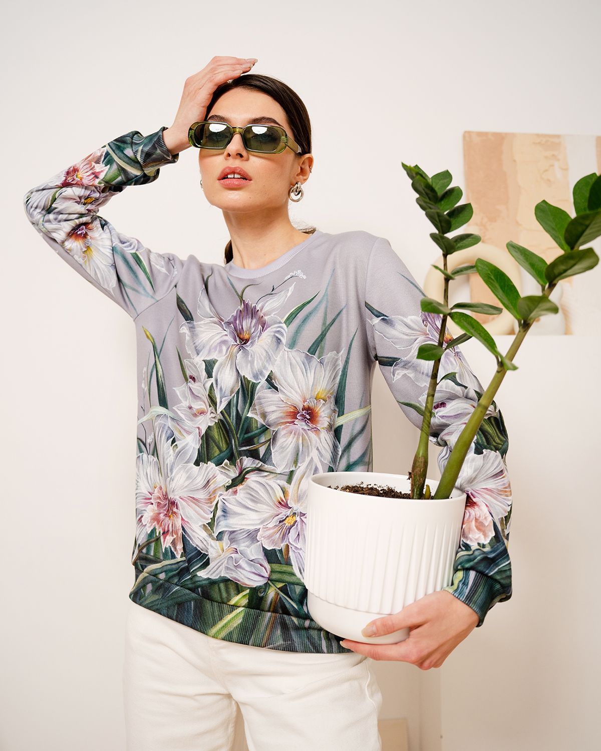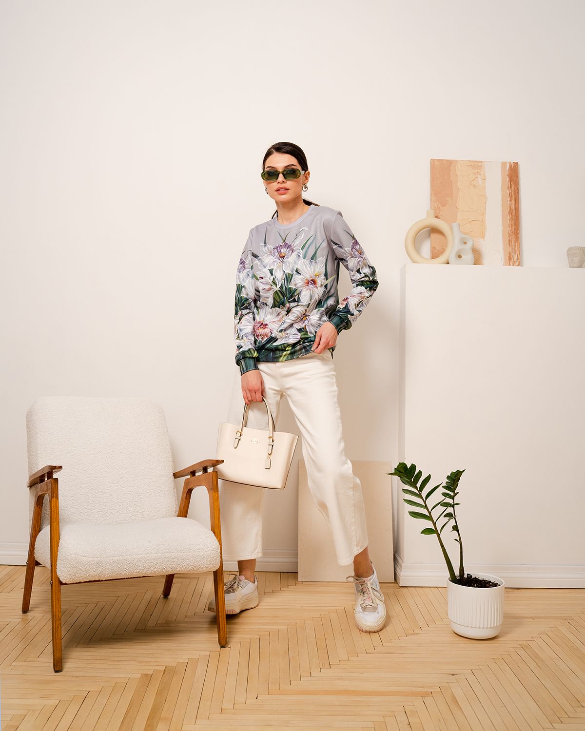 Цельное художественное полотно, бережно обрамляющее вашу фигуру и дарящее ощущение комфорта и эксклюзивности - вот что из себя представляет наш свитшот с рисунком.