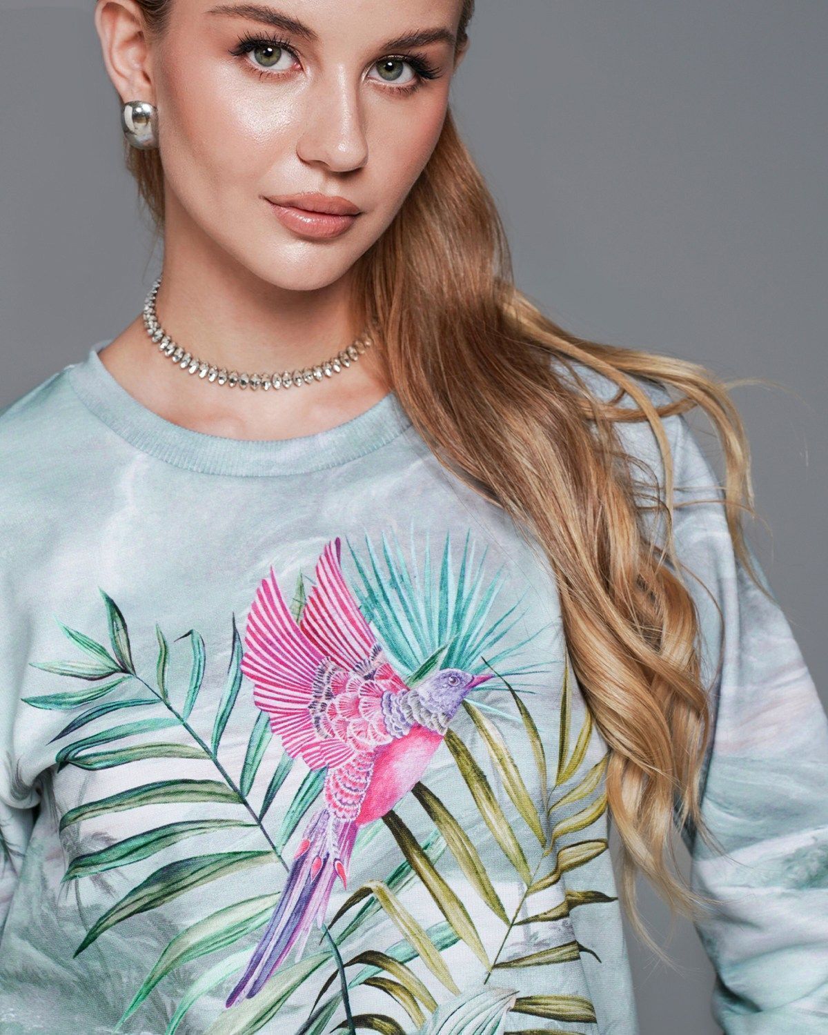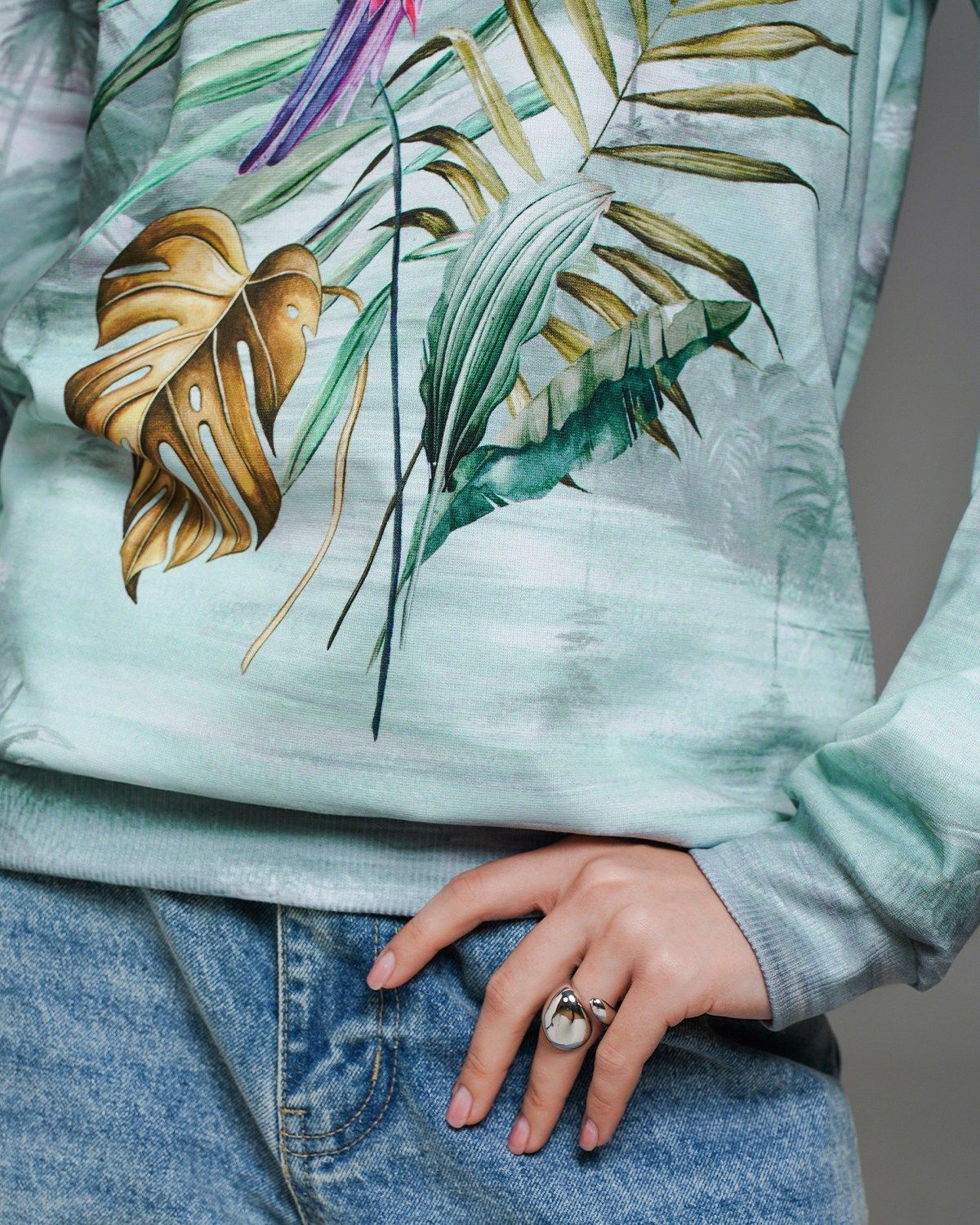 Цельное художественное полотно, бережно обрамляющее вашу фигуру и дарящее ощущение комфорта и эксклюзивности - вот что из себя представляет наш свитшот с рисунком.
