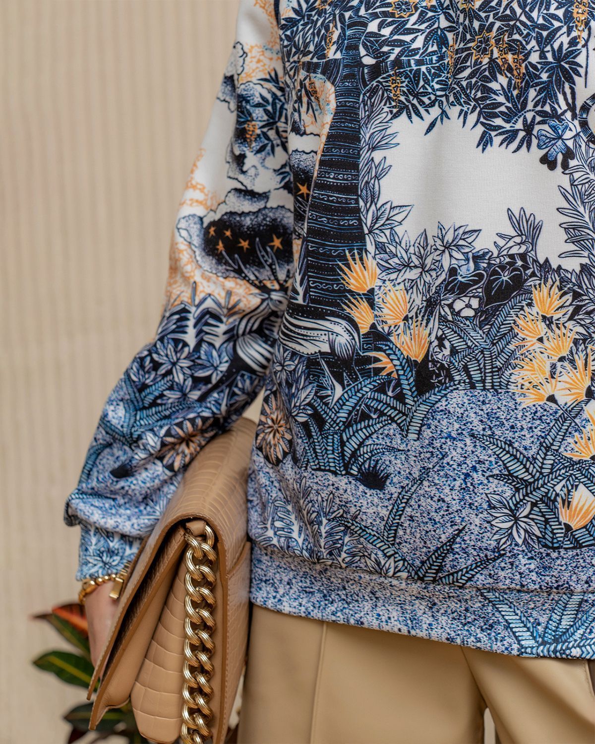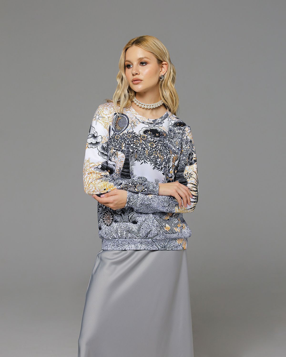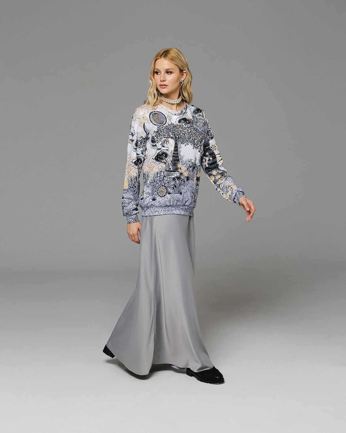 Цельное художественное полотно, бережно обрамляющее вашу фигуру и дарящее ощущение комфорта и эксклюзивности - вот что из себя представляет наш свитшот с рисунком.