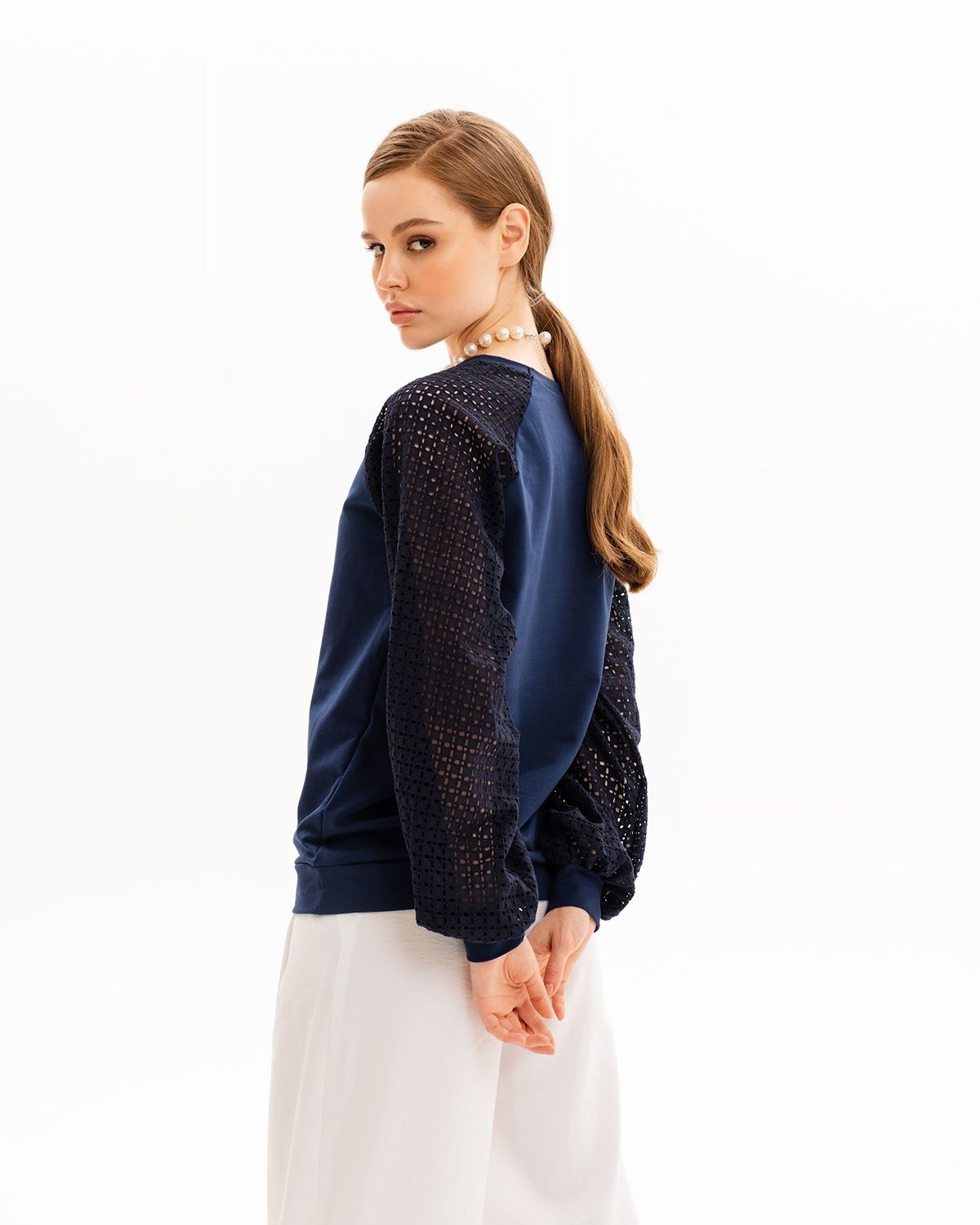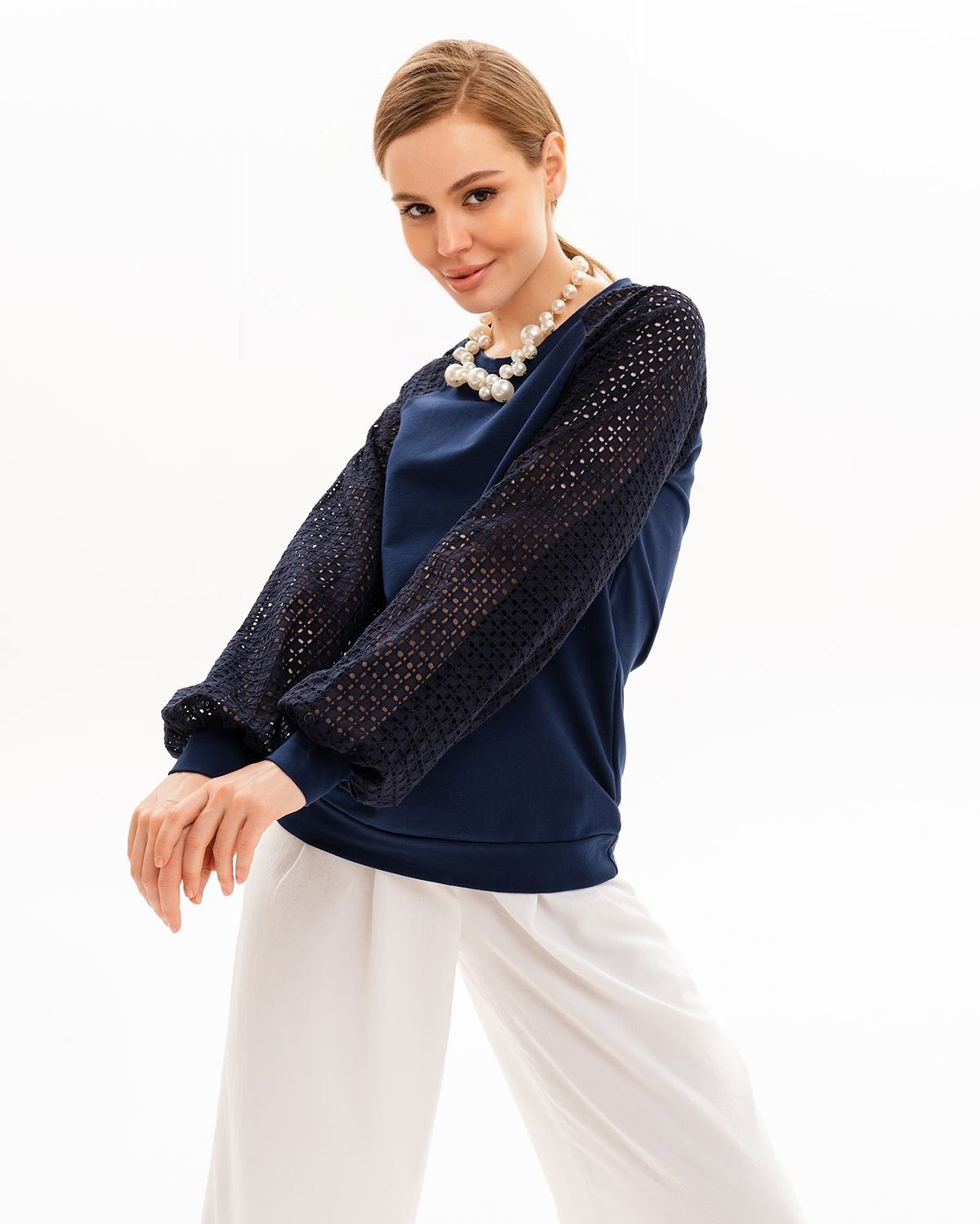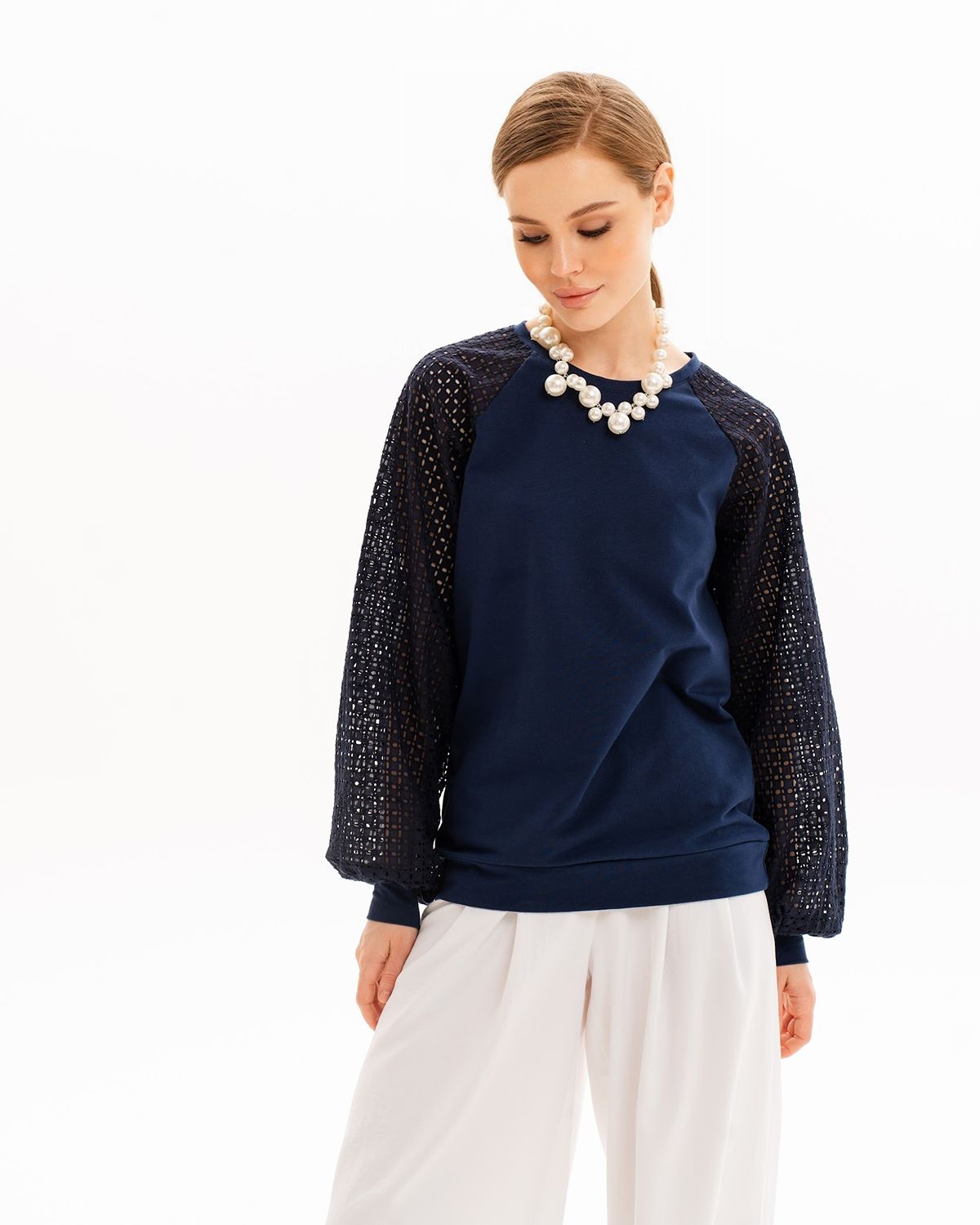 Длинные рукава типа «реглан» свободные, широкие, выполнены из хлопковой ткани Шитьё, которые не стесняют движений. Вырез горловины круглый, застежки нет. Демисезонная кофточка прекрасно подходит на весенние и осенние месяцы. Вы также сможете носить дизайнерский джемпер и в прохладные летние дни. Все декоративные орнаменты уникальны.