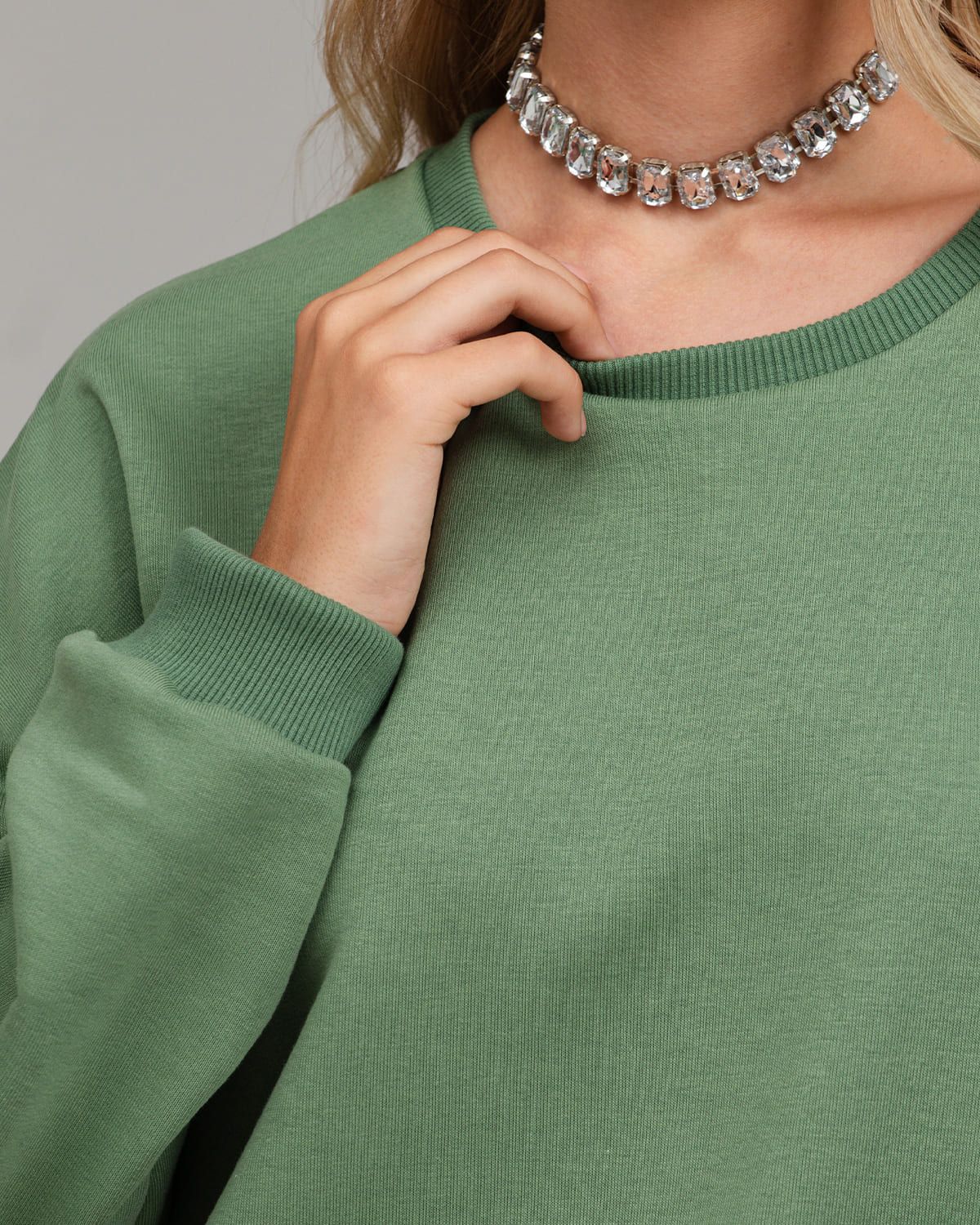 Базовый свитшот с эффектным воланом — легкая модель для создания расслабленных спокойных образов. Этот стильный предмет гардероба изготовлен из мягкого и приятного на ощупь материала — футера, благодаря чему обеспечивает тепло и уют даже в прохладную погоду. Волан добавляет образу легкость и романтичность, делая его идеальным дополнением к повседневному стилю.