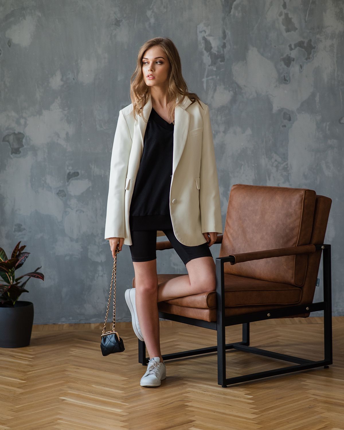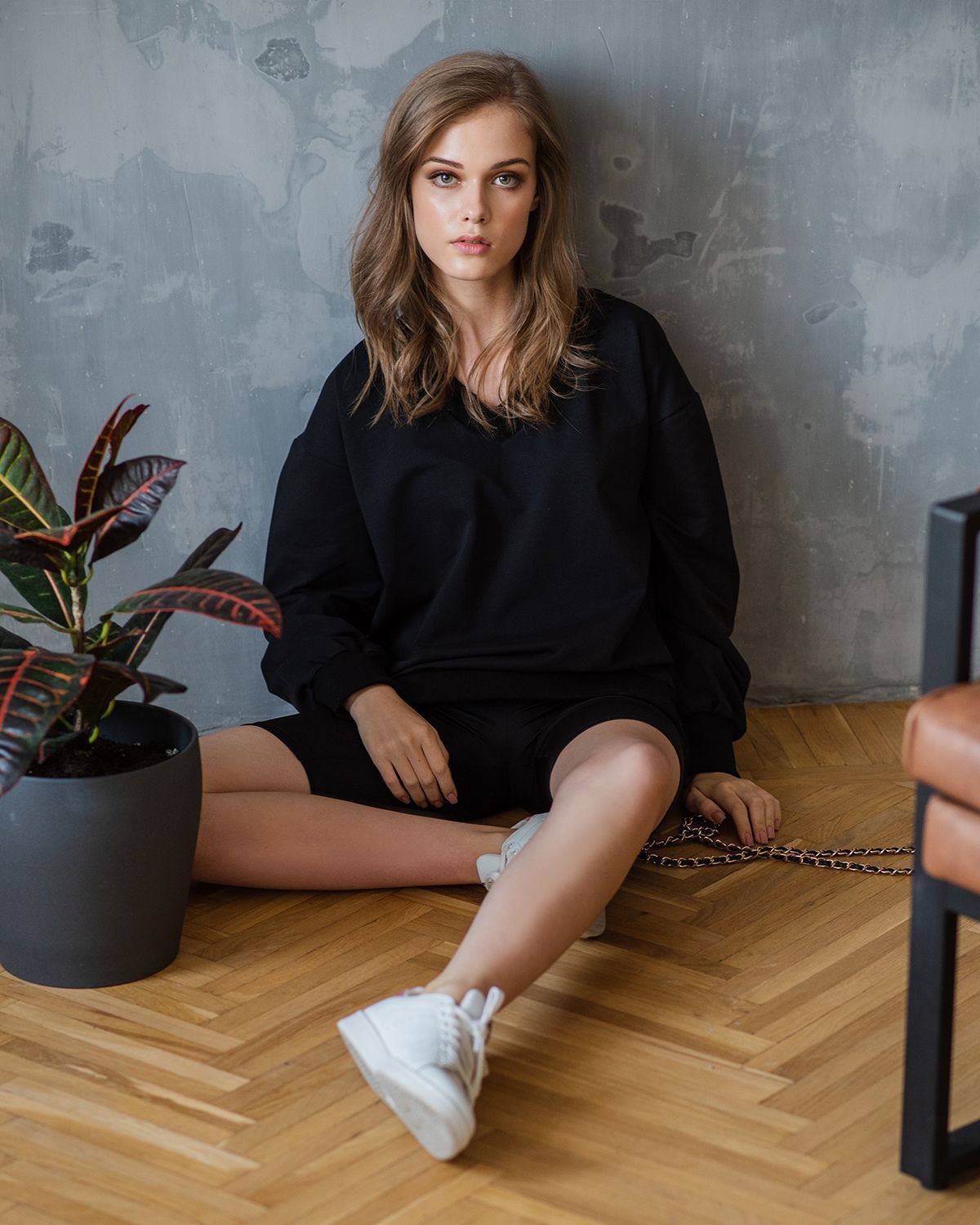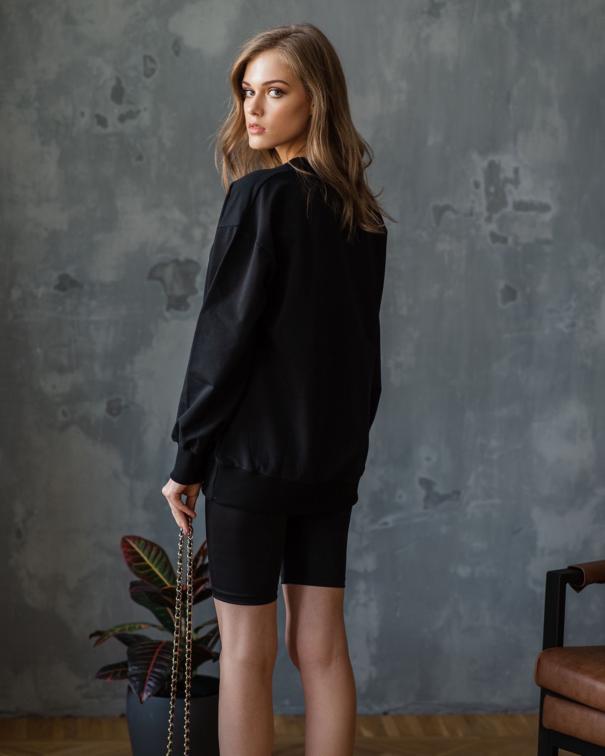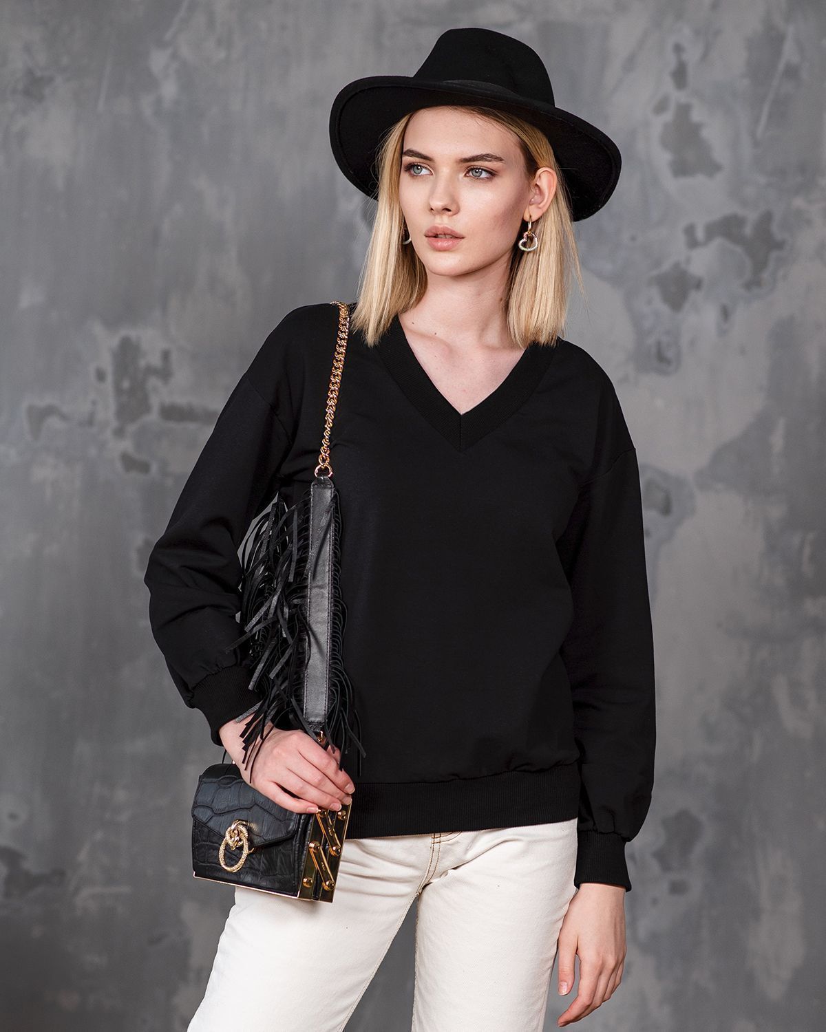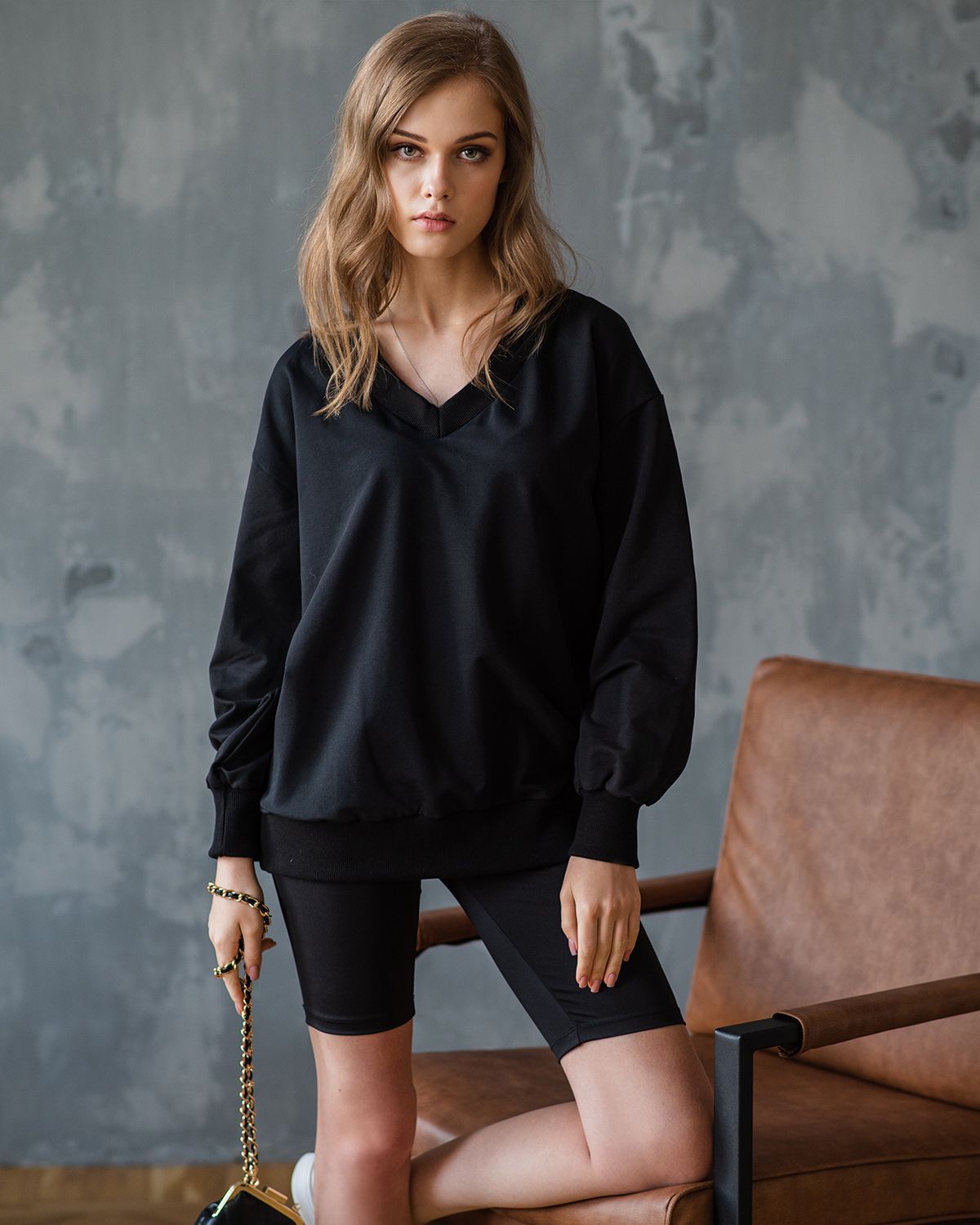 Свитшот оверсайз с v-образным вырезом - не самое традиционное сочетание, но мы любим нестандартные решения. Такая форма воротника красиво открывает шею и подчеркивает её длину.