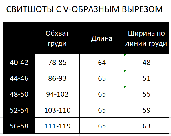 Выбирая подходящий размер, ориентируйтесь на таблицу в карусели.